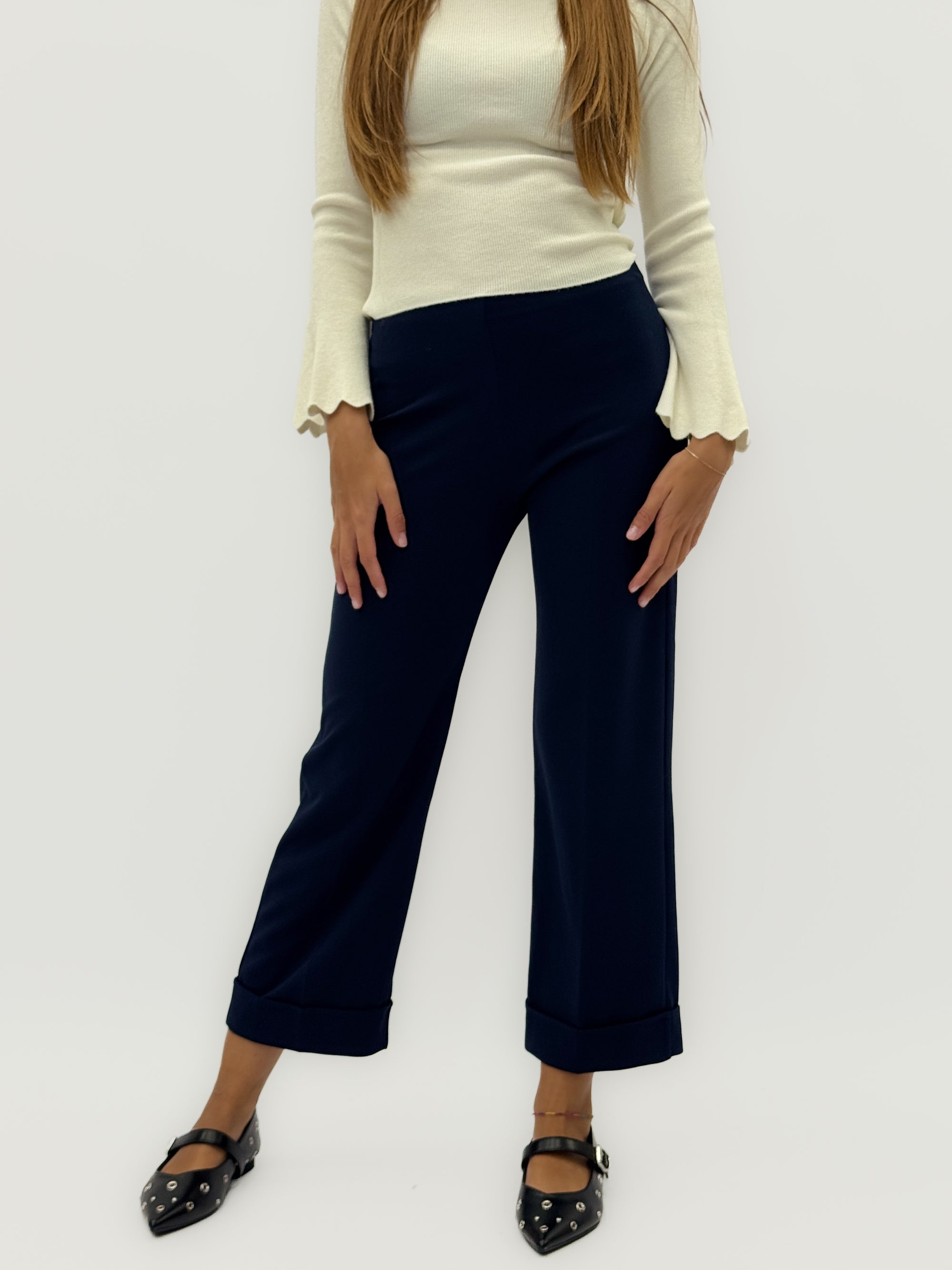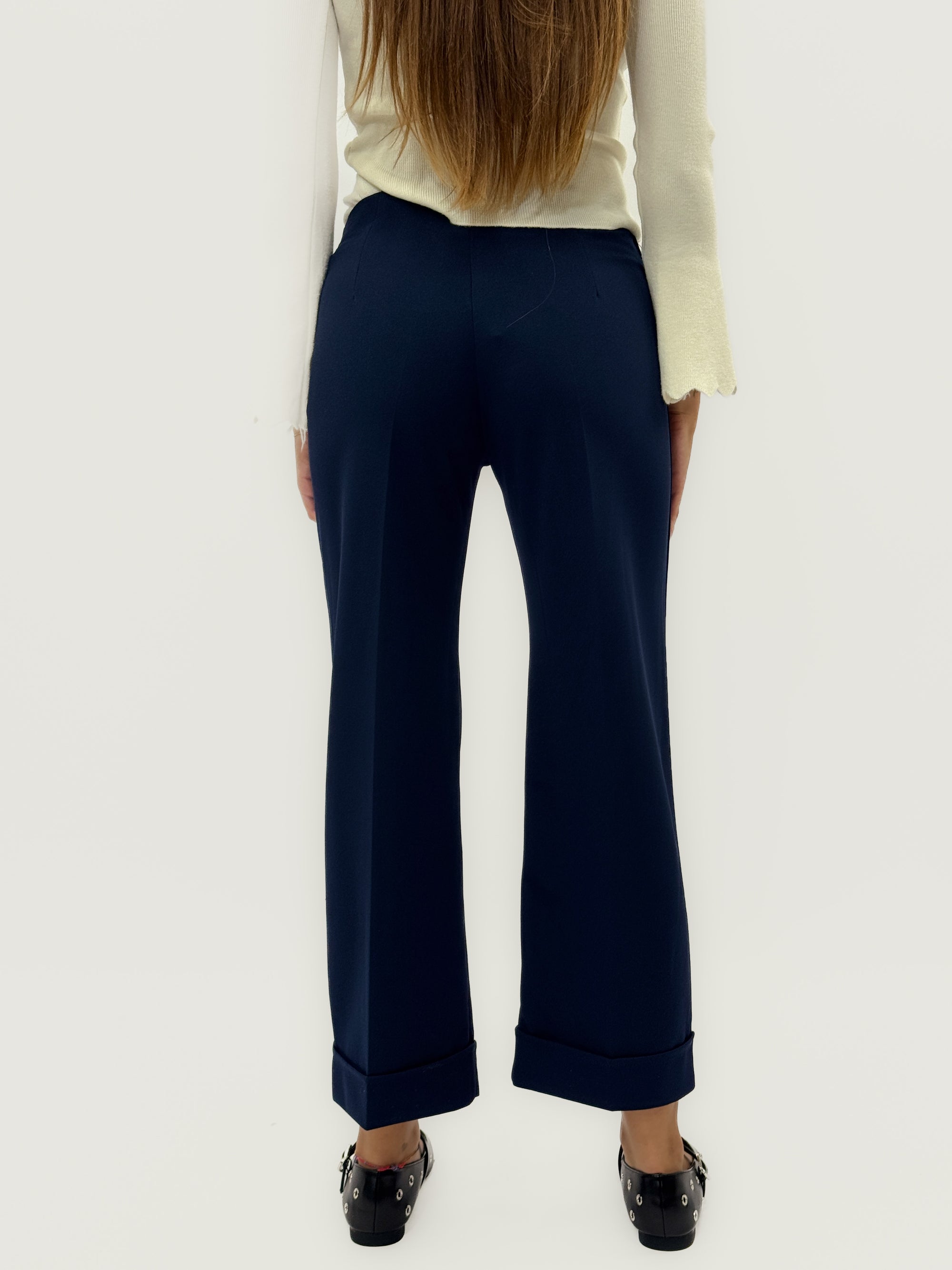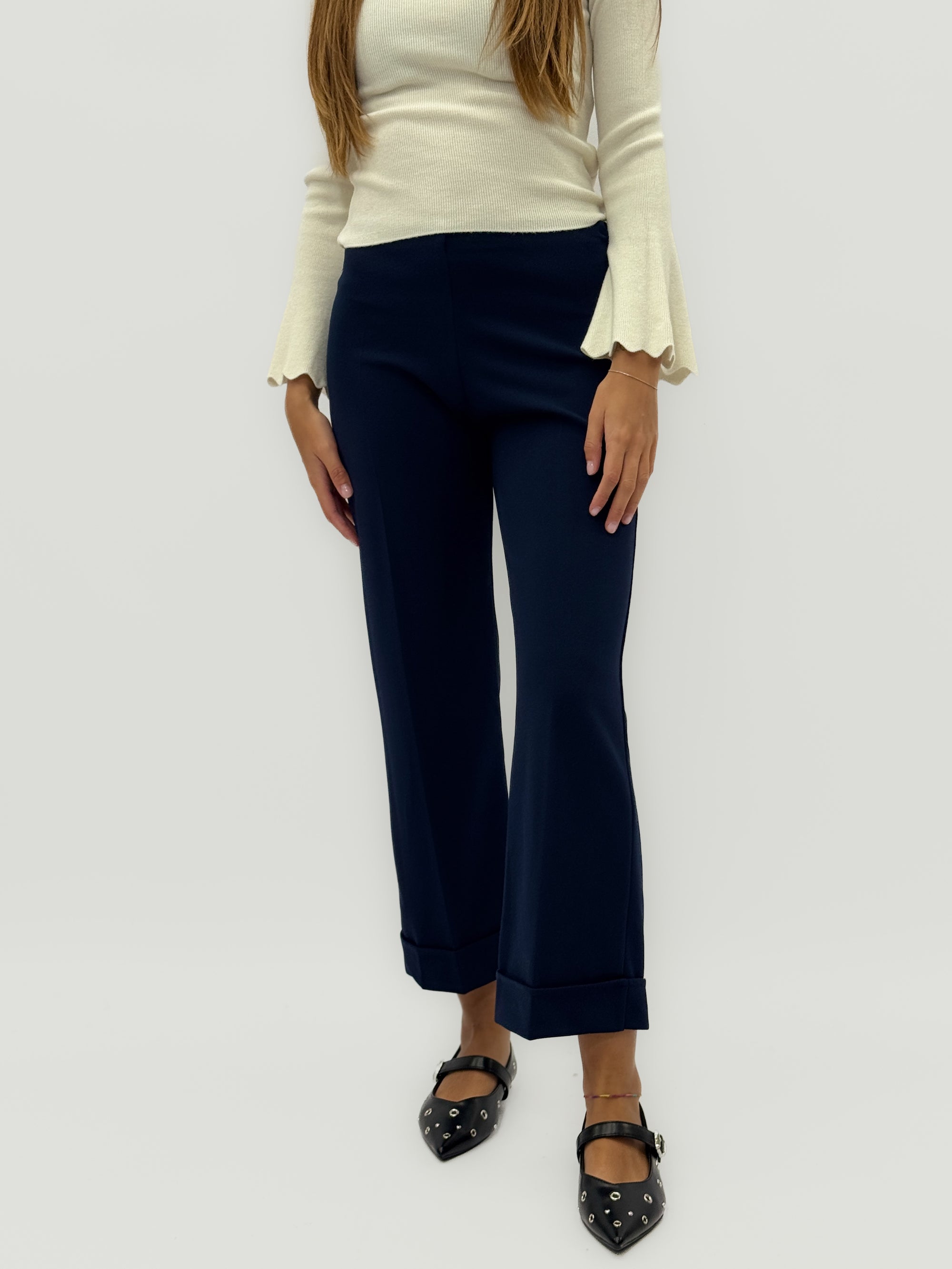 Pantaloni blu eleganti con risvolto – Linea dritta e stile raffinato