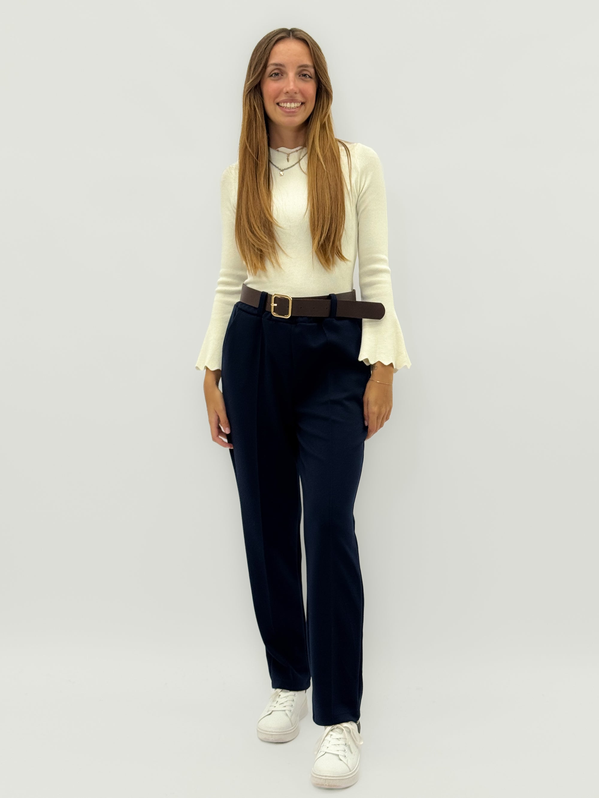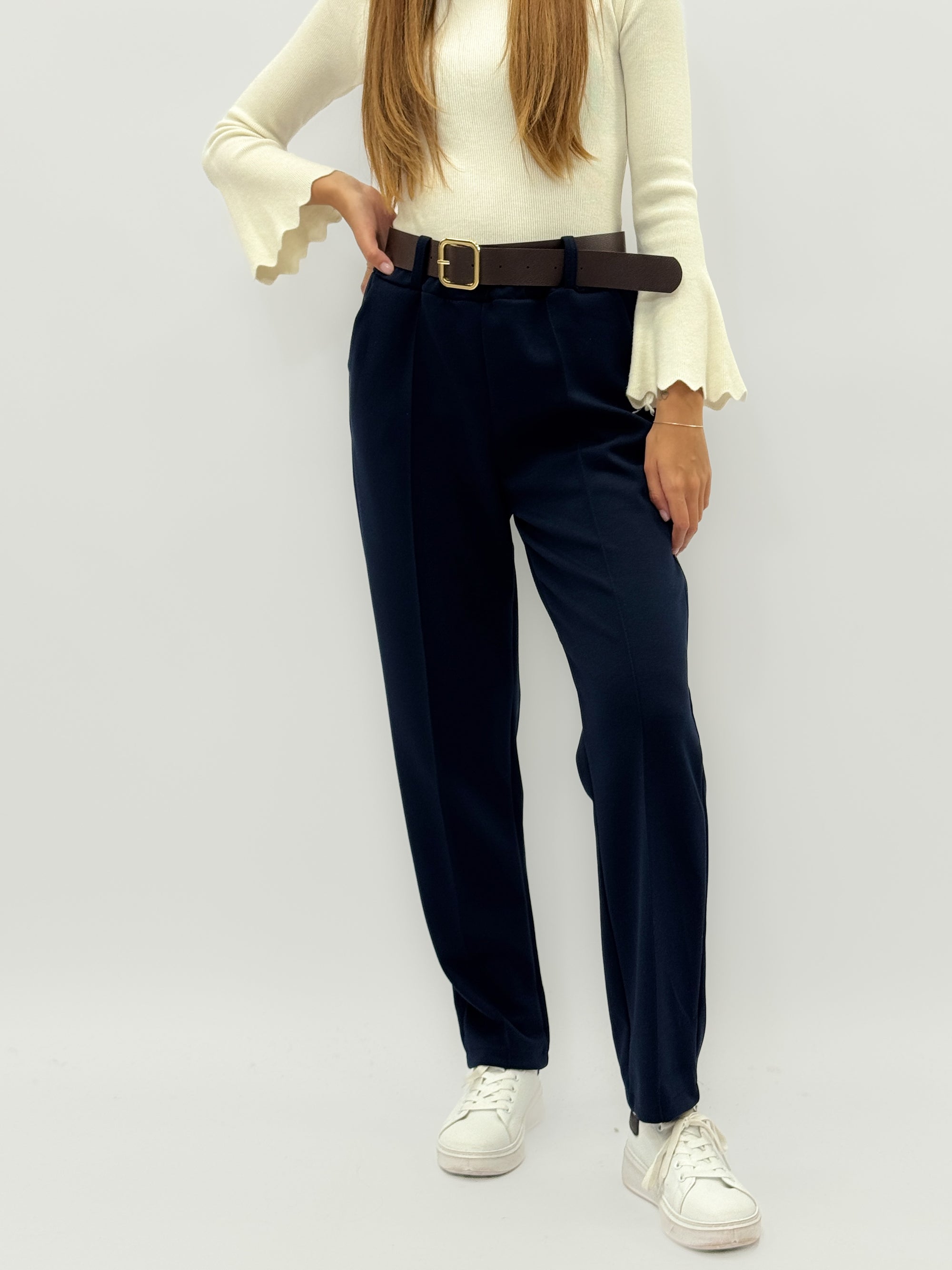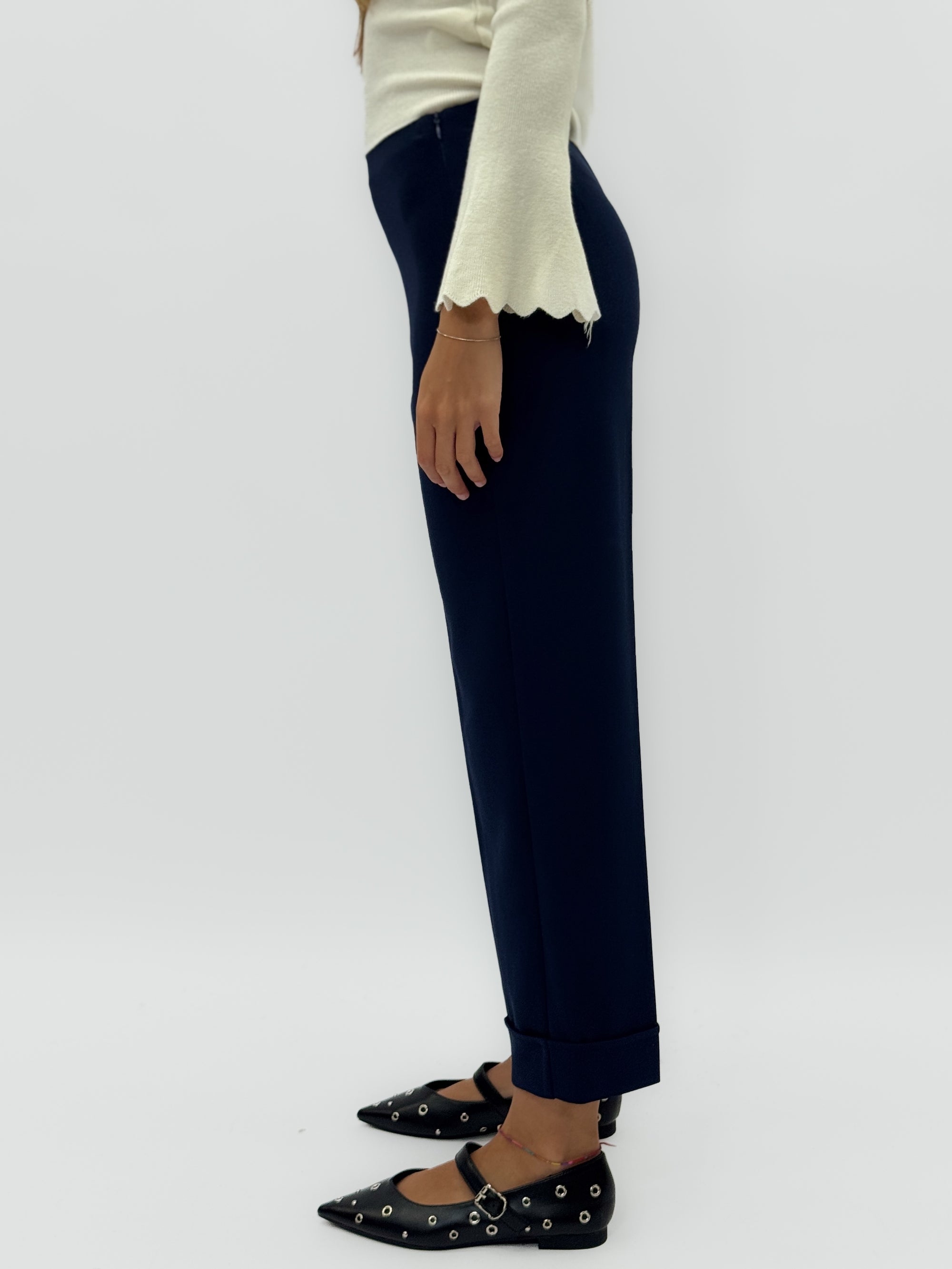 Pantaloni blu eleganti con risvolto – Linea dritta e stile raffinato