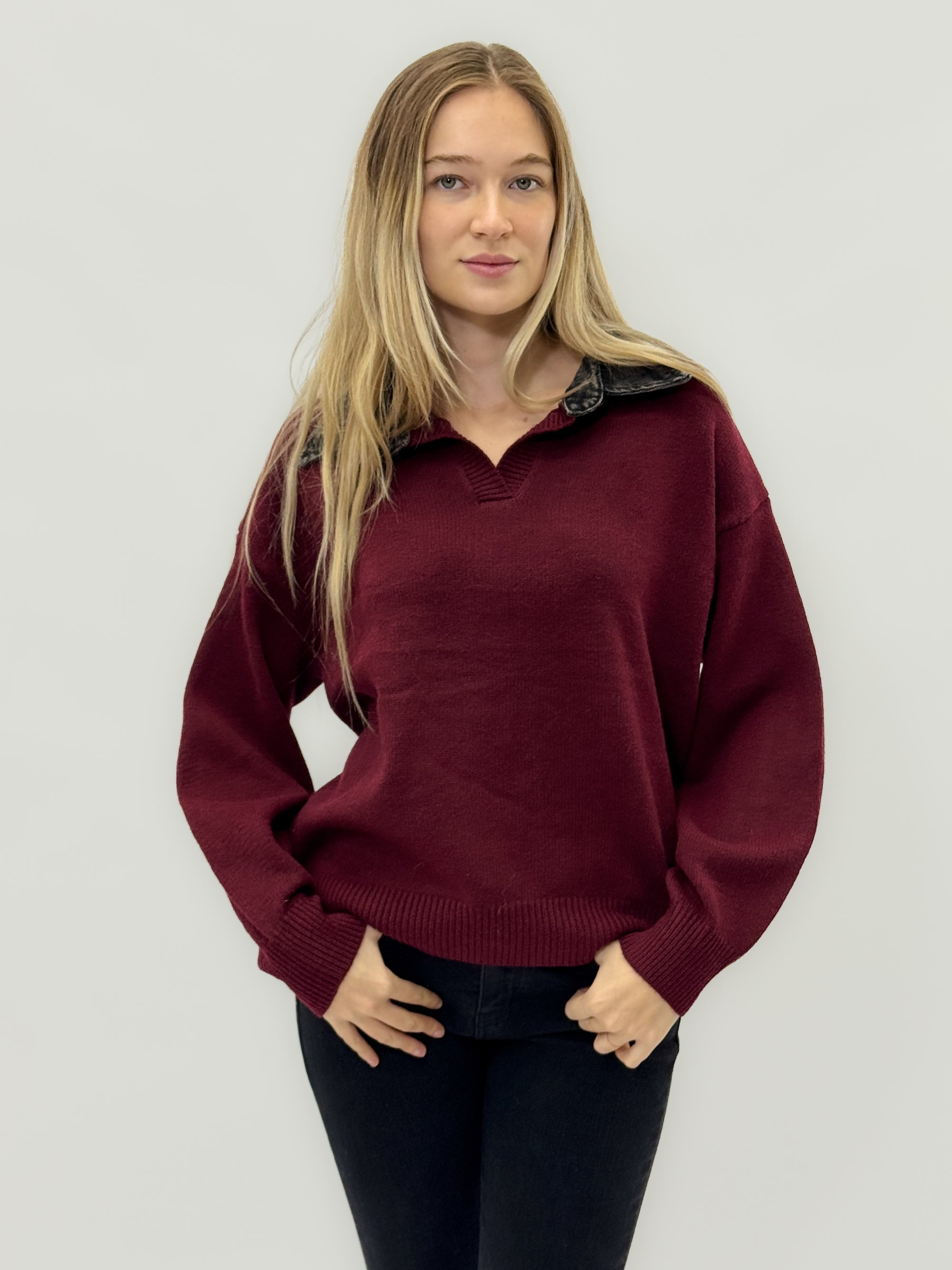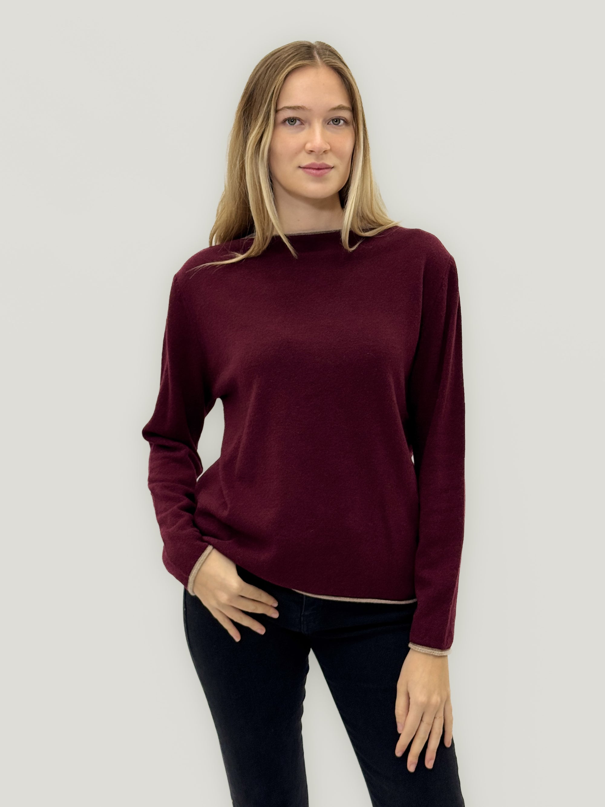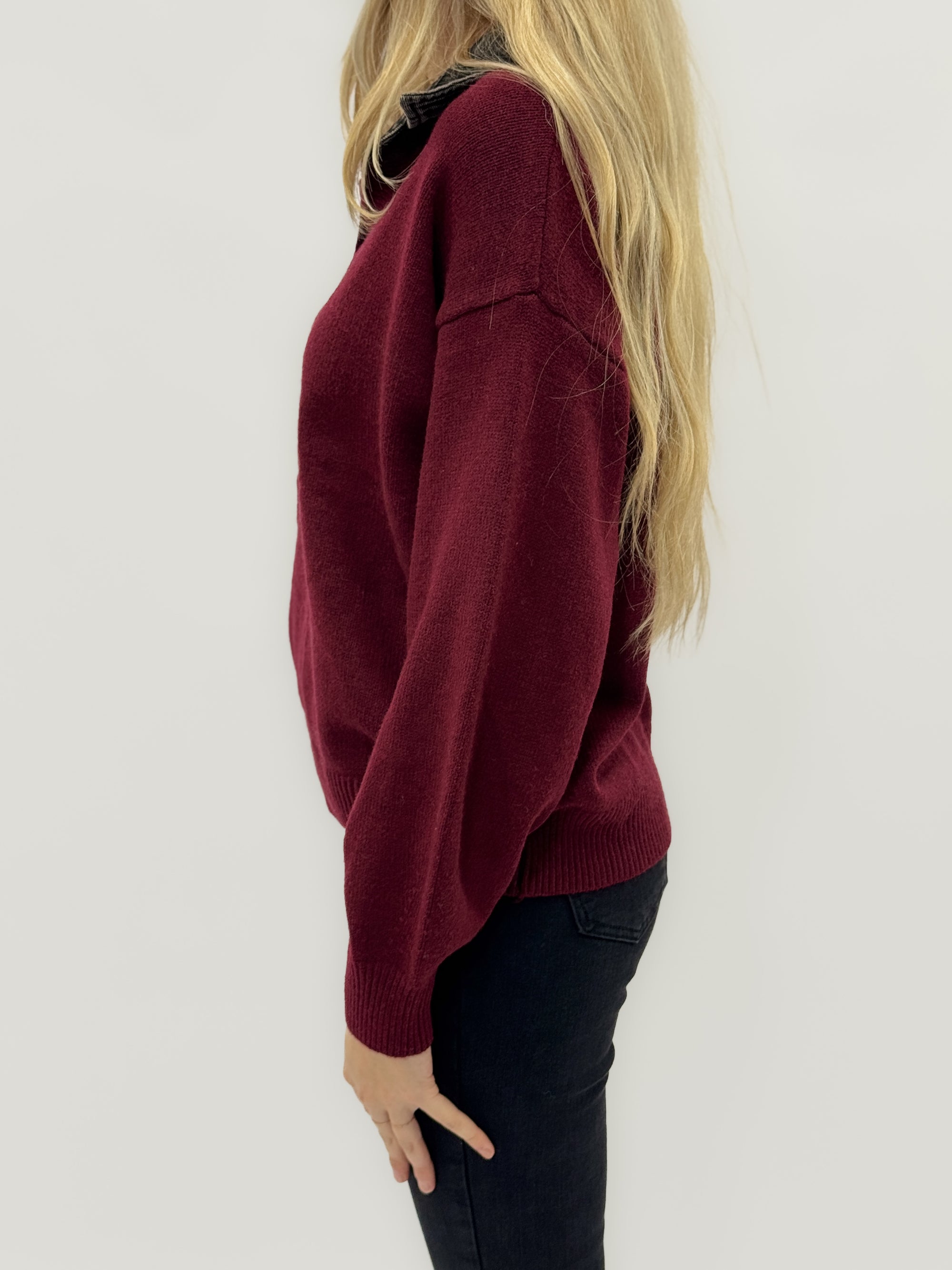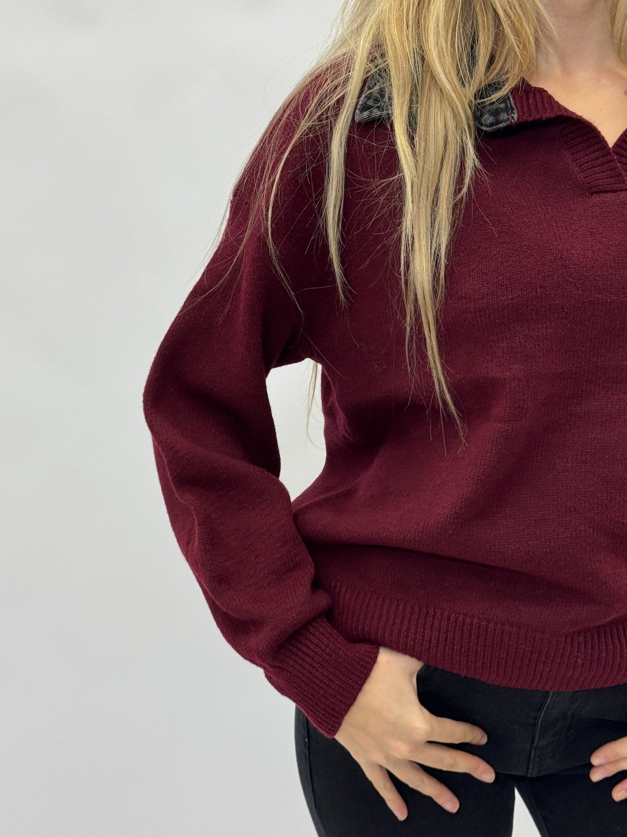 Maglione bordeaux con colletto a contrasto – Morbido e casual chic