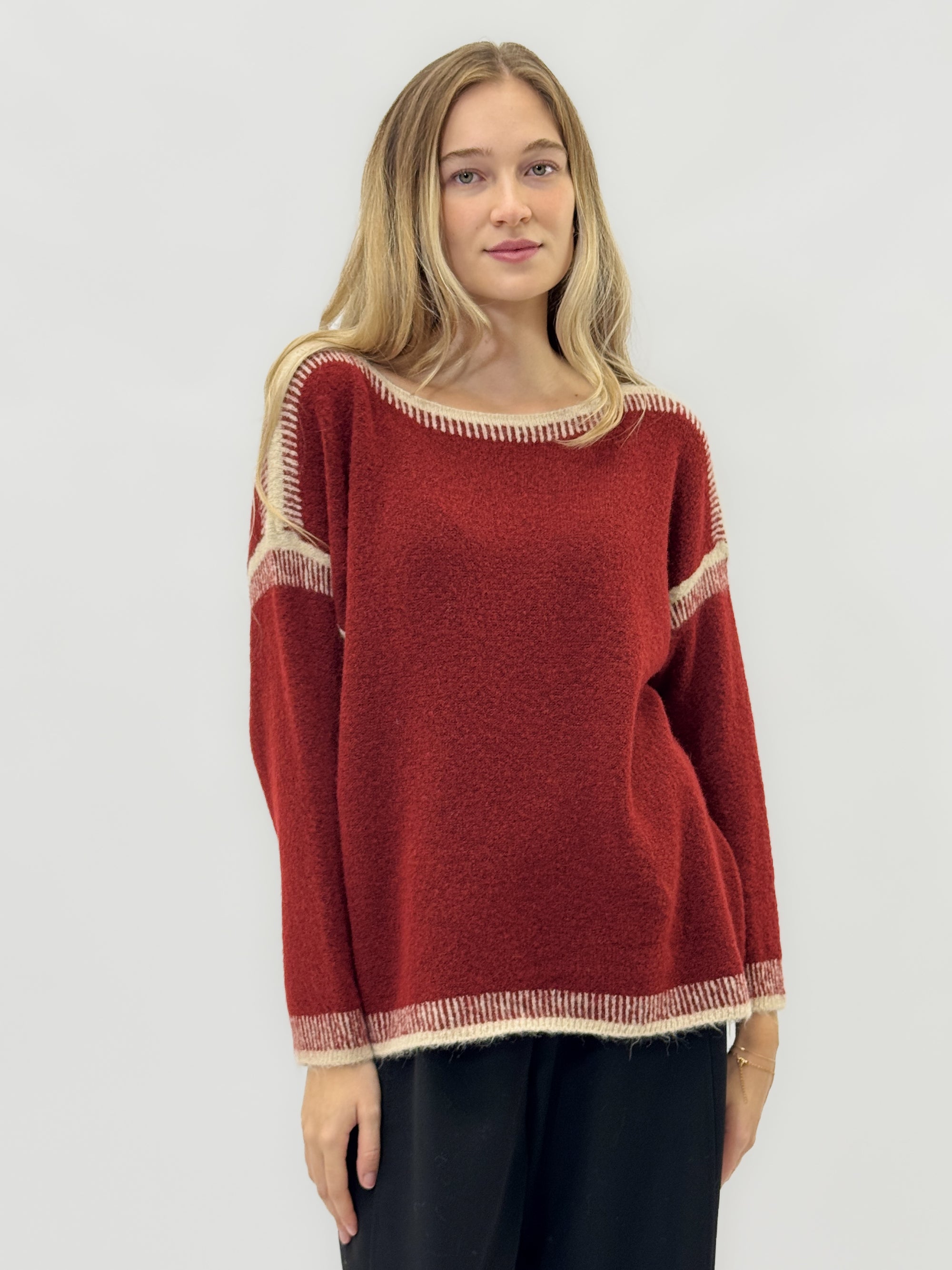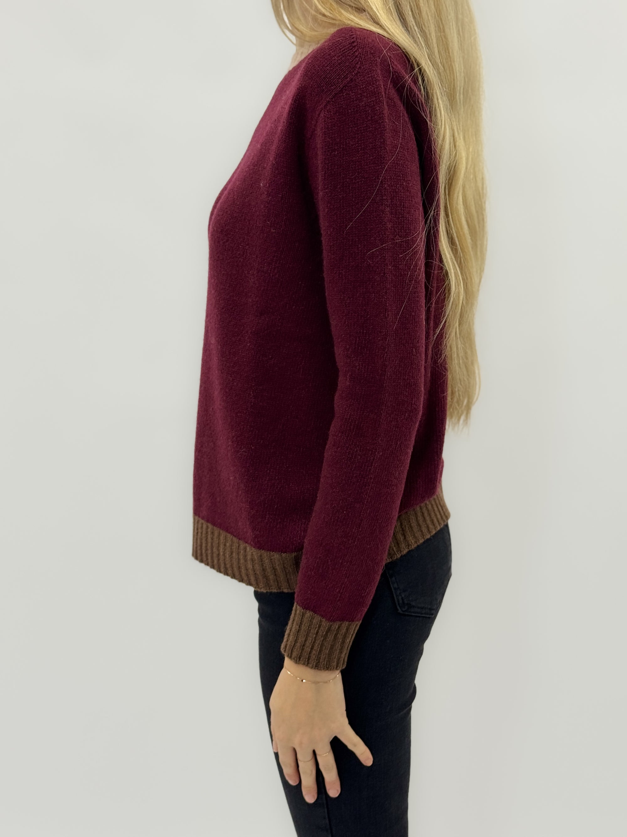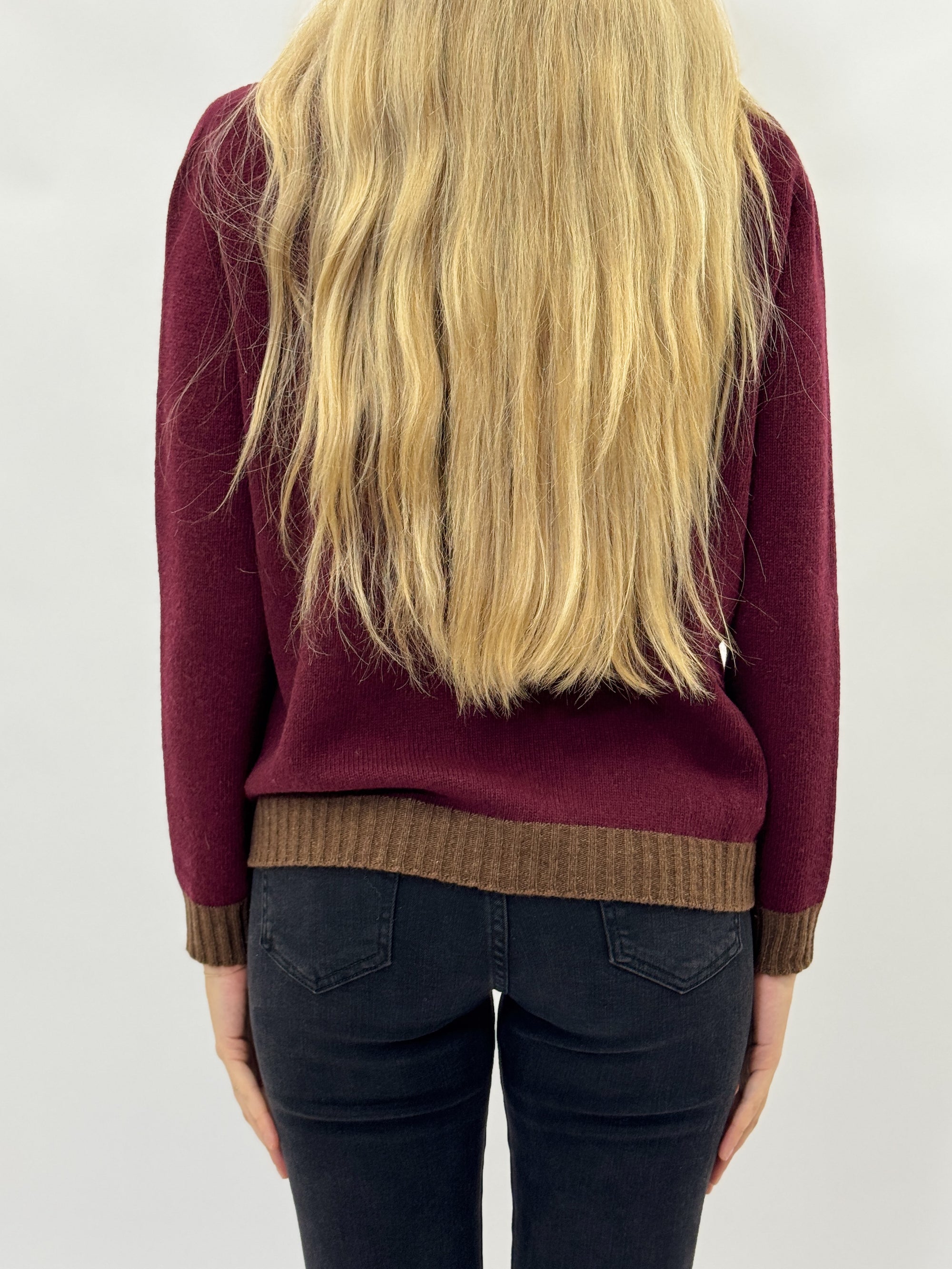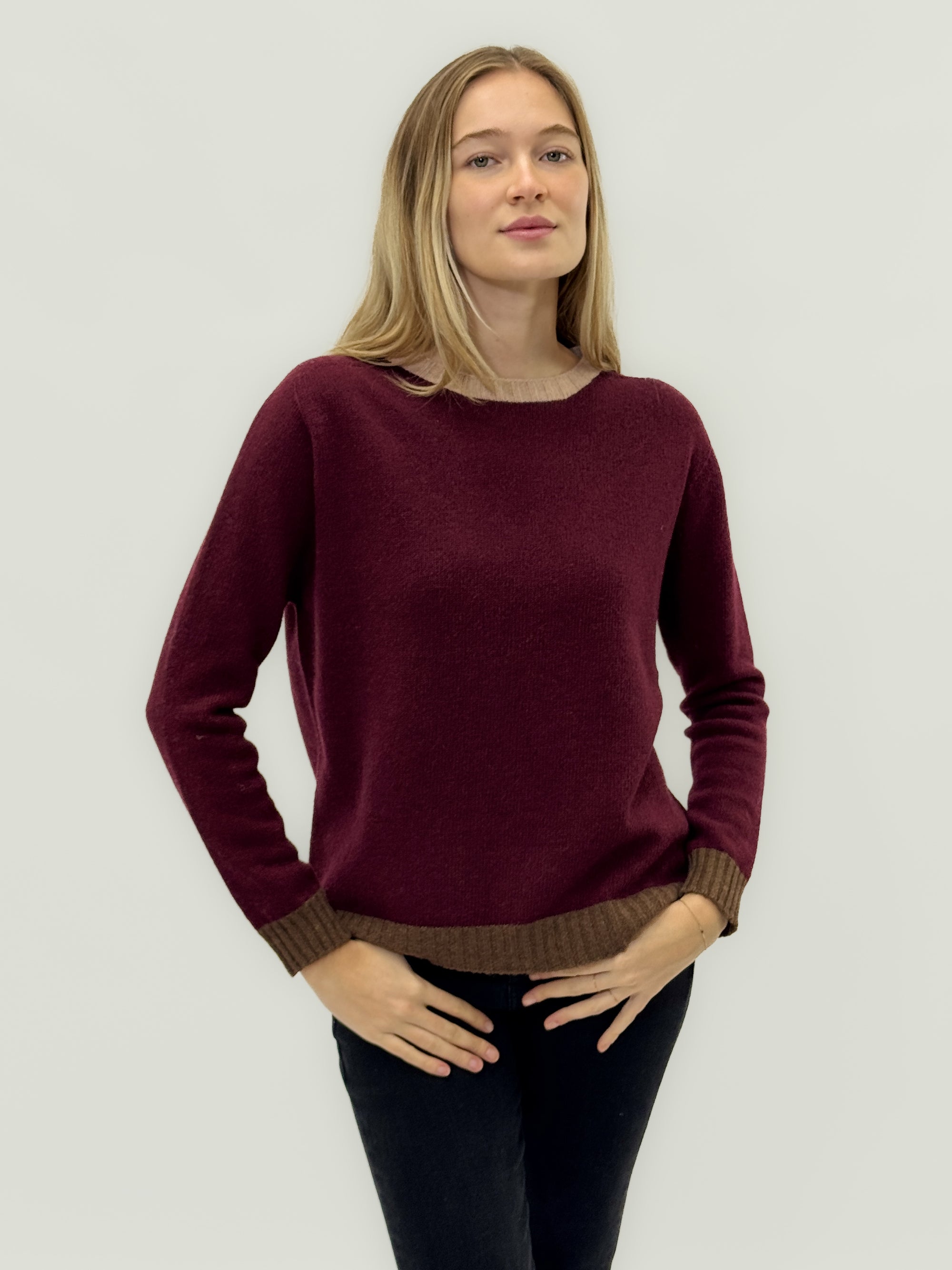 Maglione bordeaux con colletto a contrasto – Morbido e casual chic