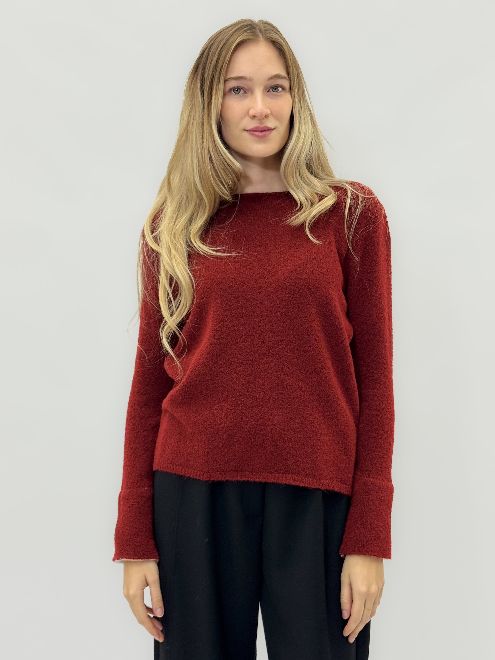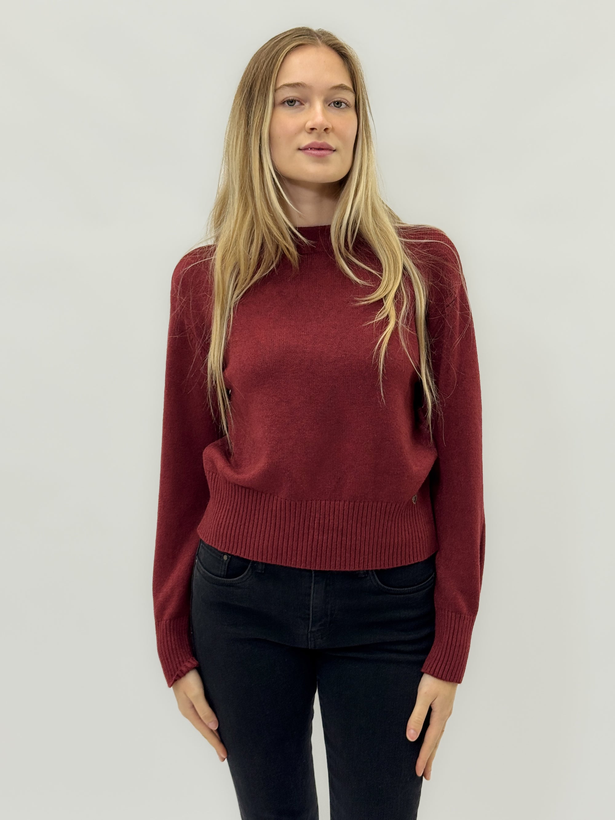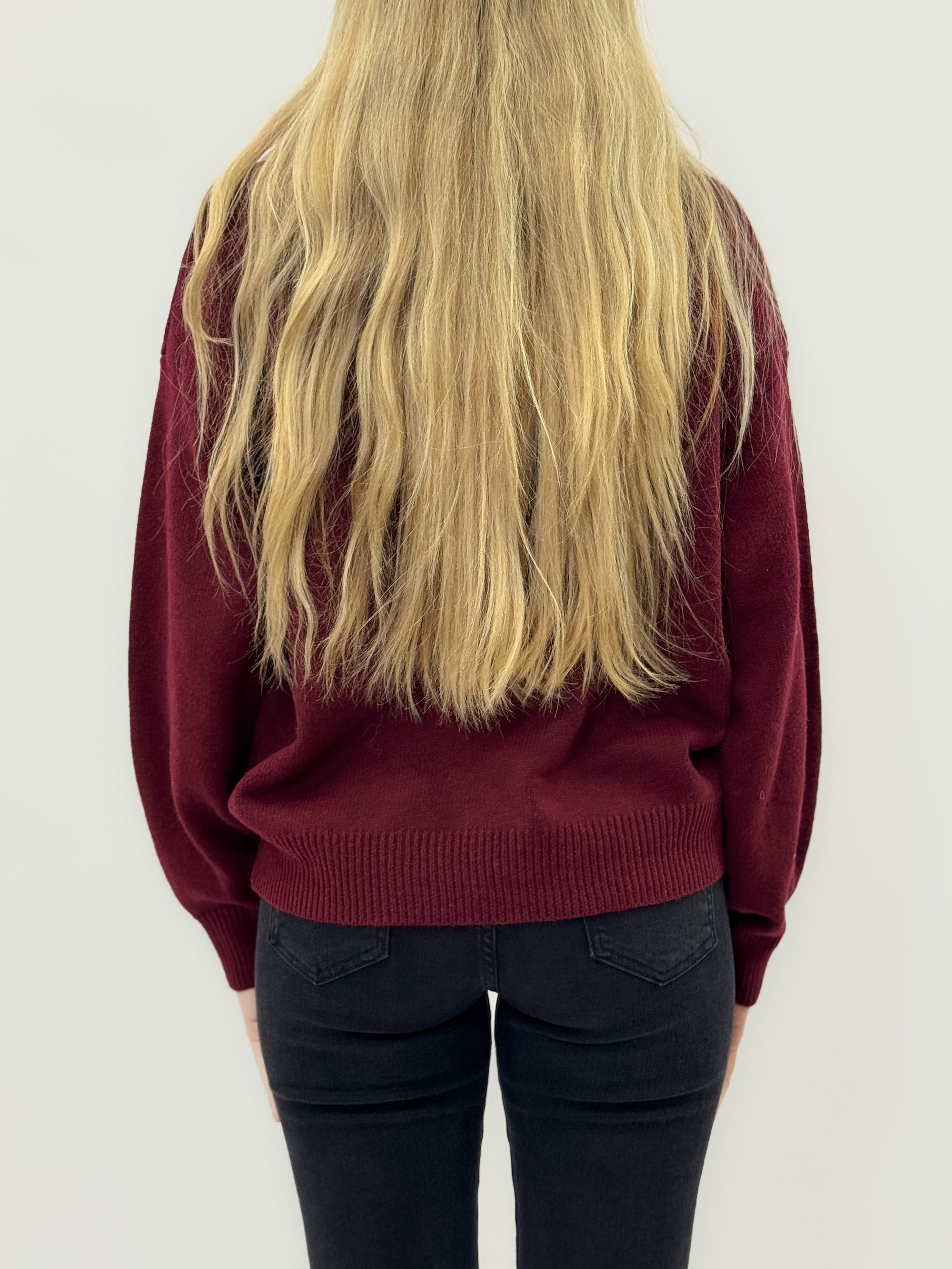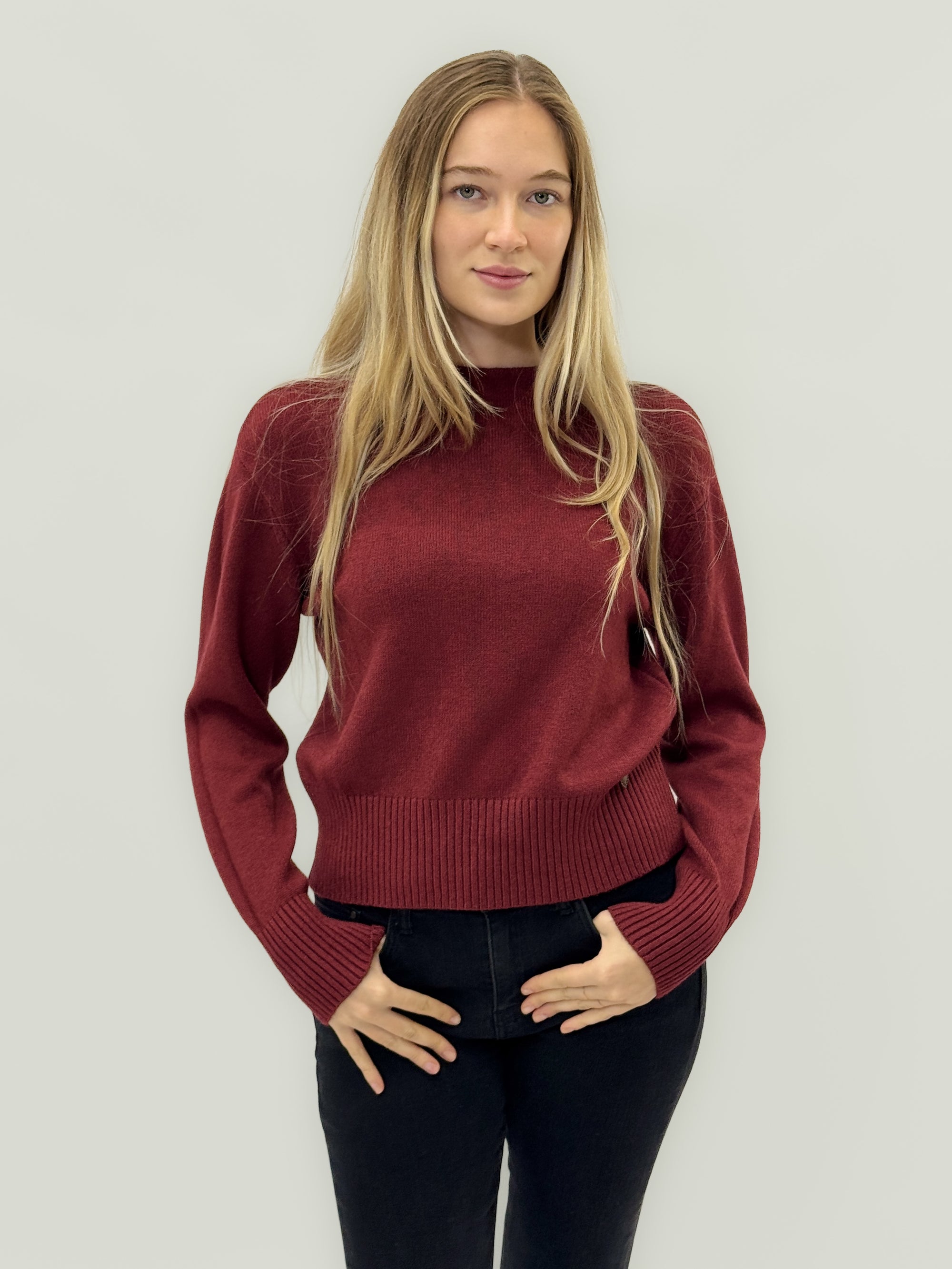 Maglione bordeaux con colletto a contrasto – Morbido e casual chic