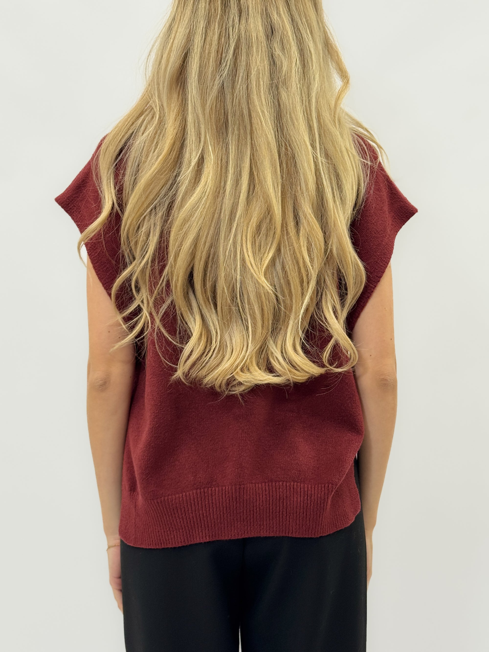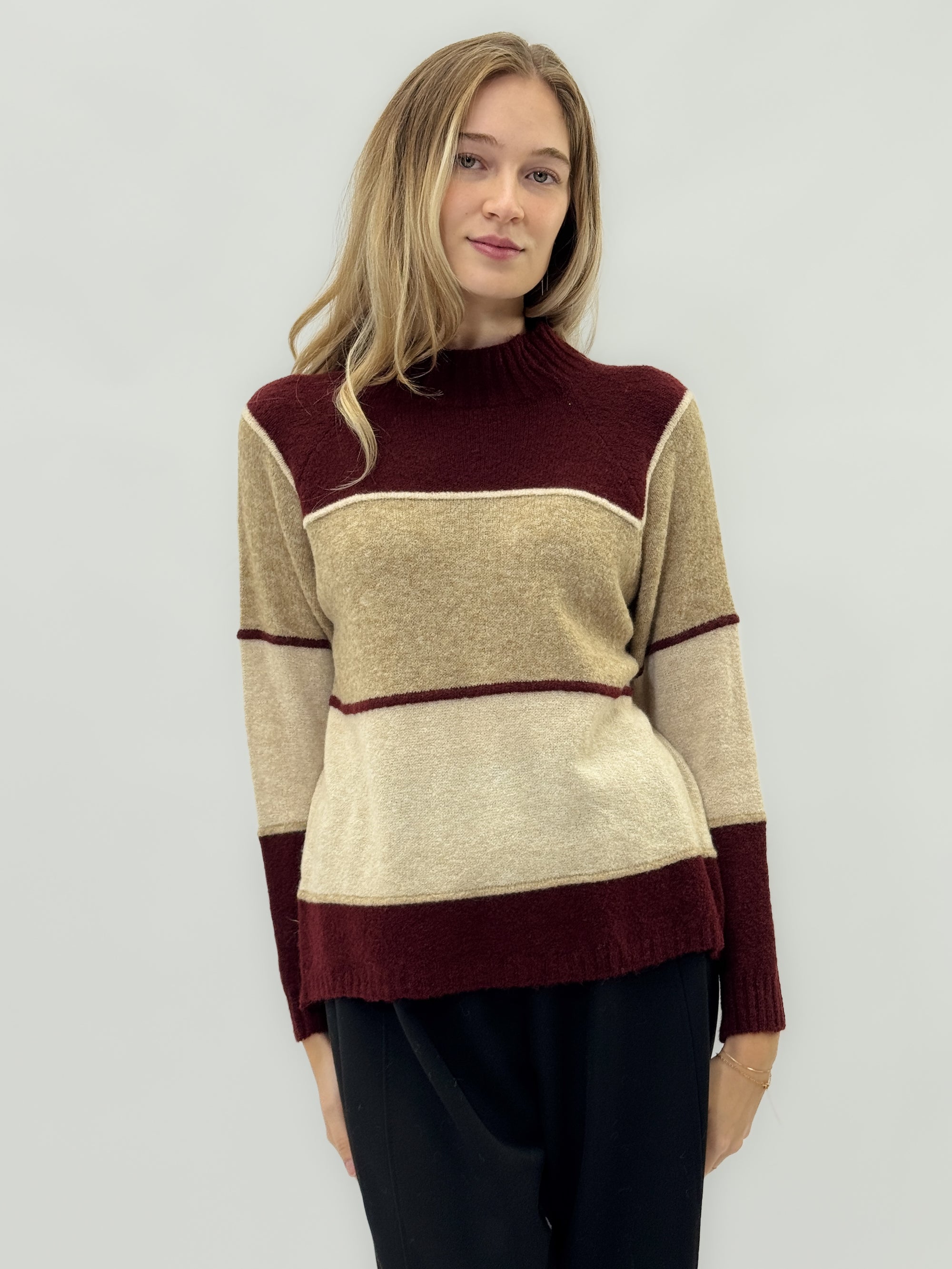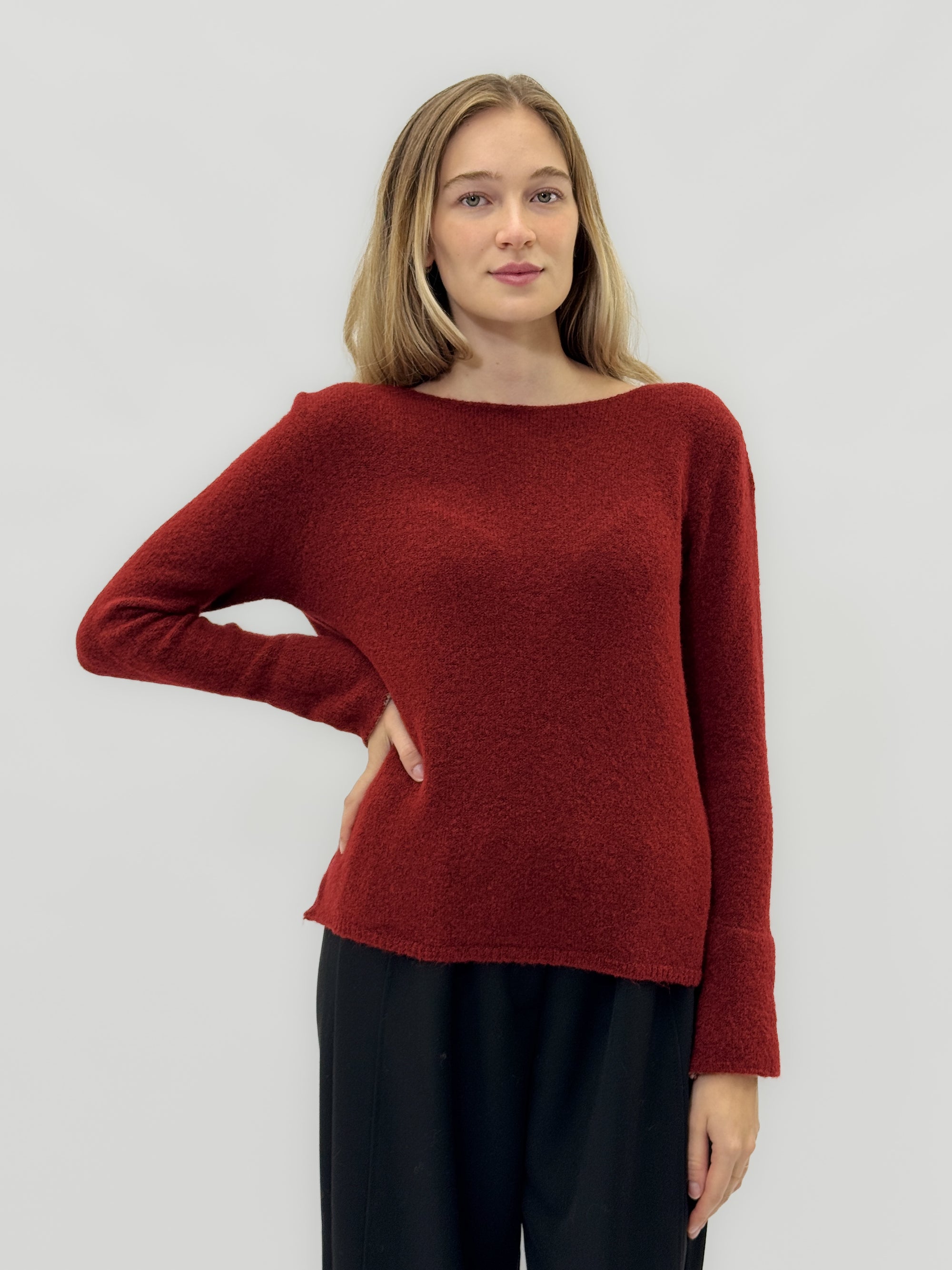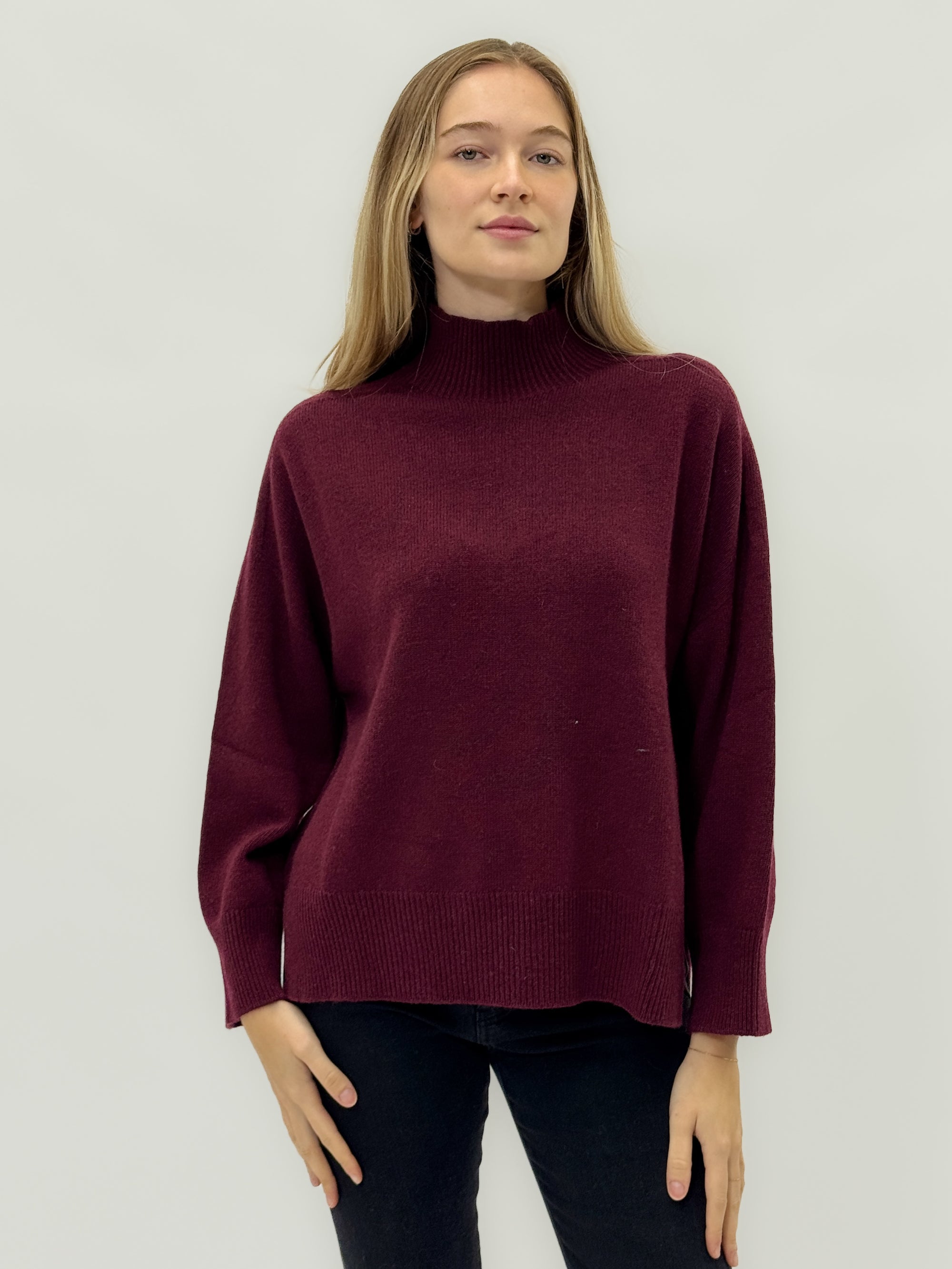 Maglione bordeaux con colletto a contrasto – Morbido e casual chic