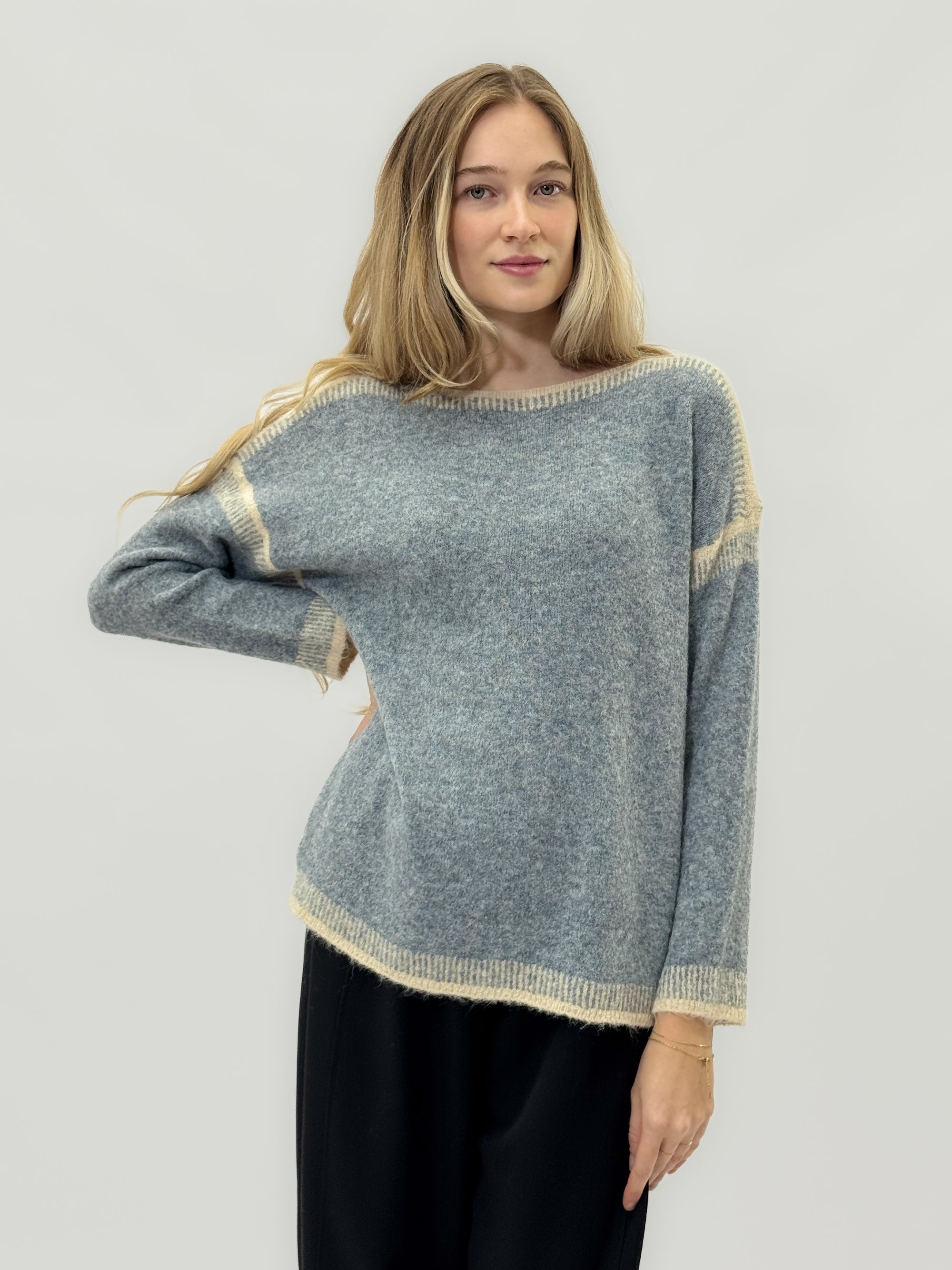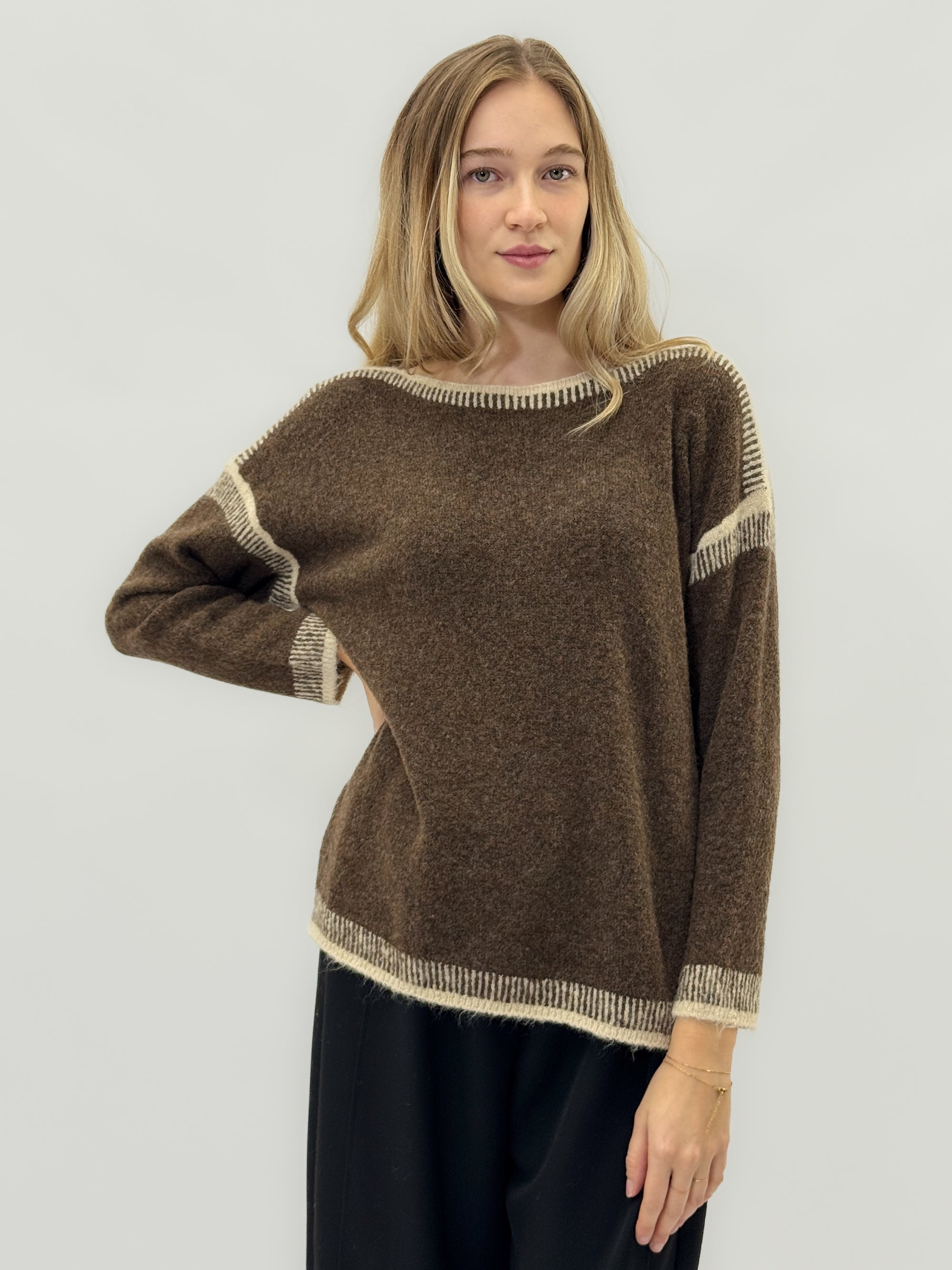 Maglia con bordi a contrasto – Lana e cashmere per un comfort raffinato