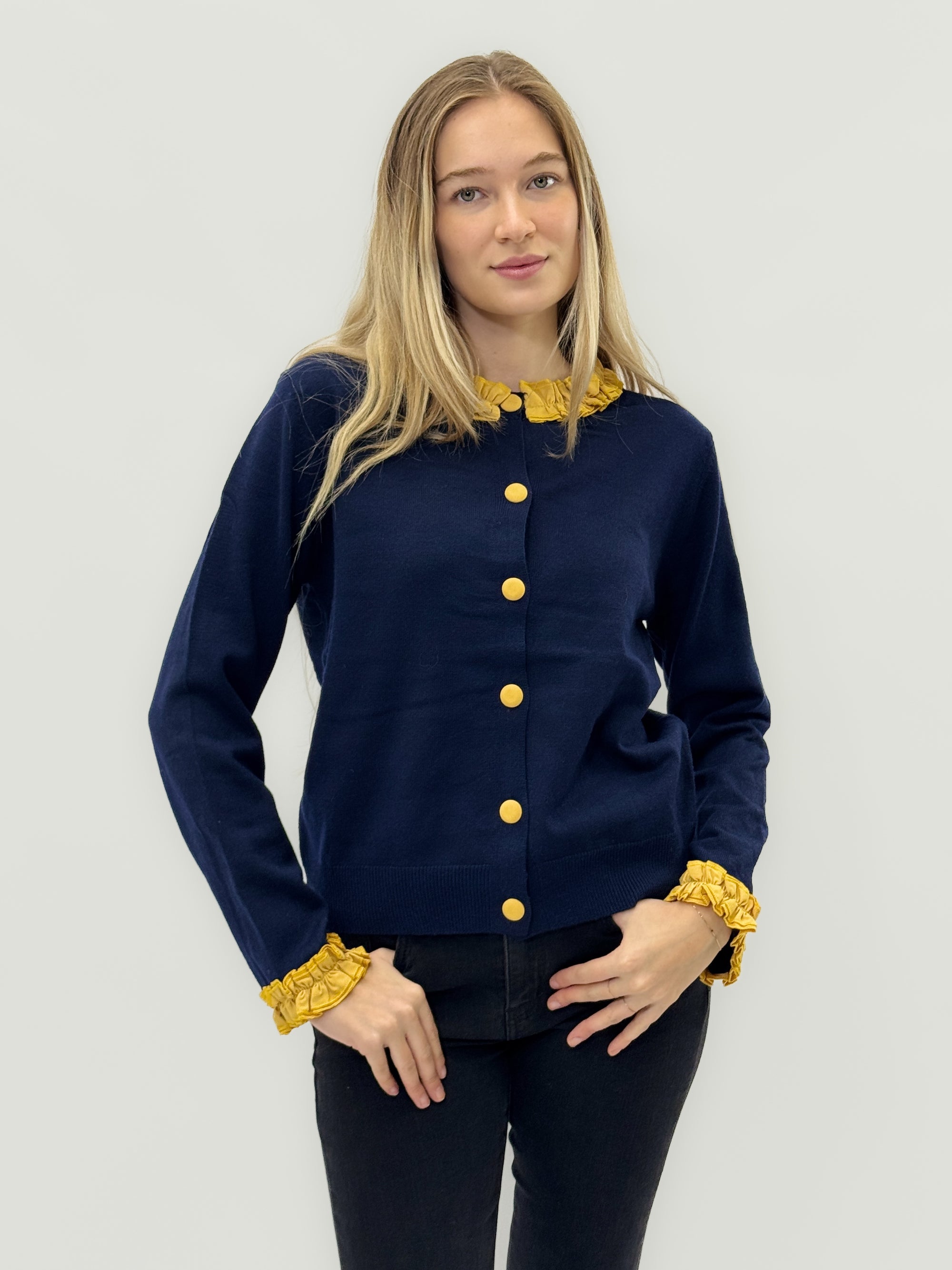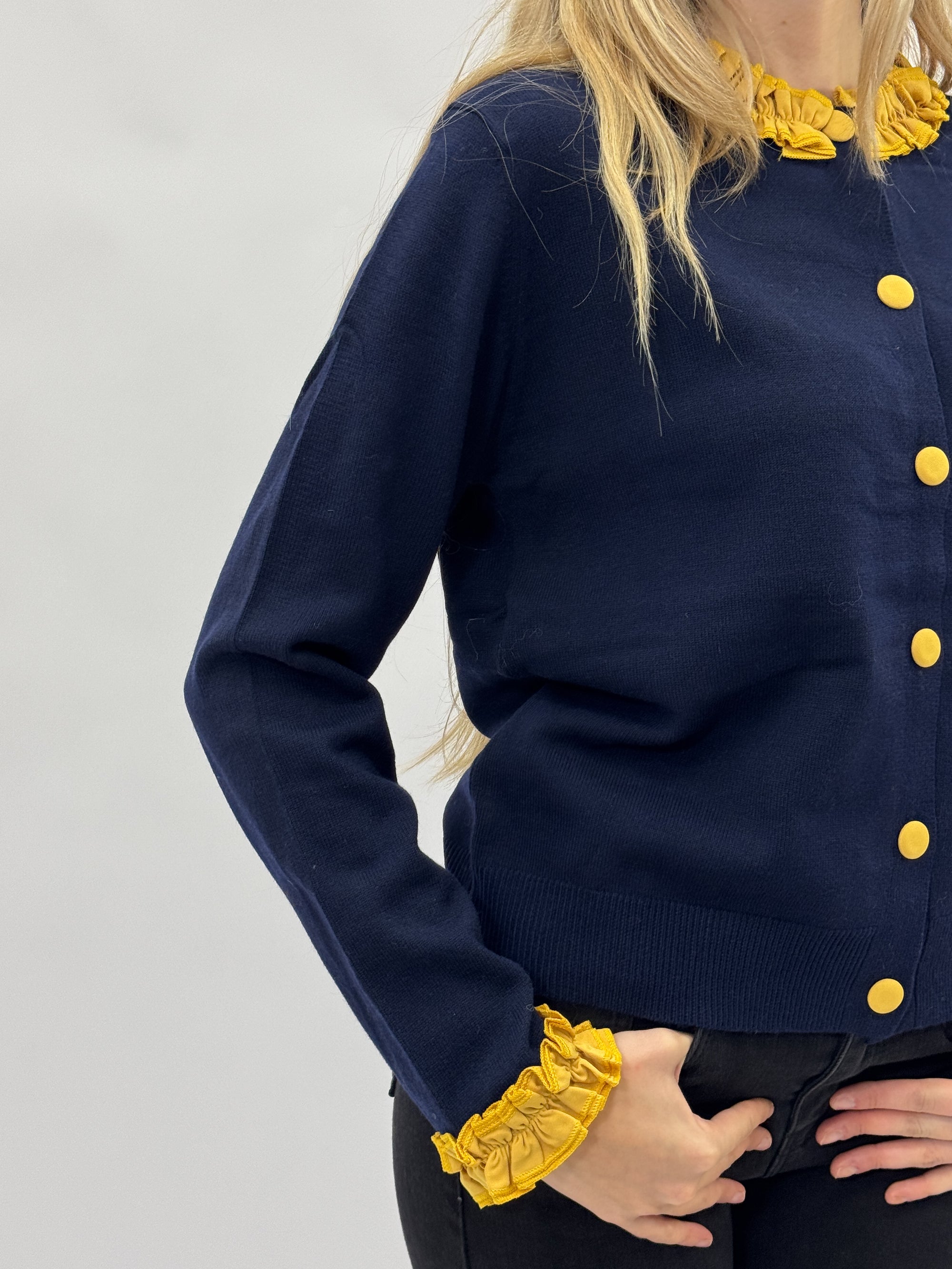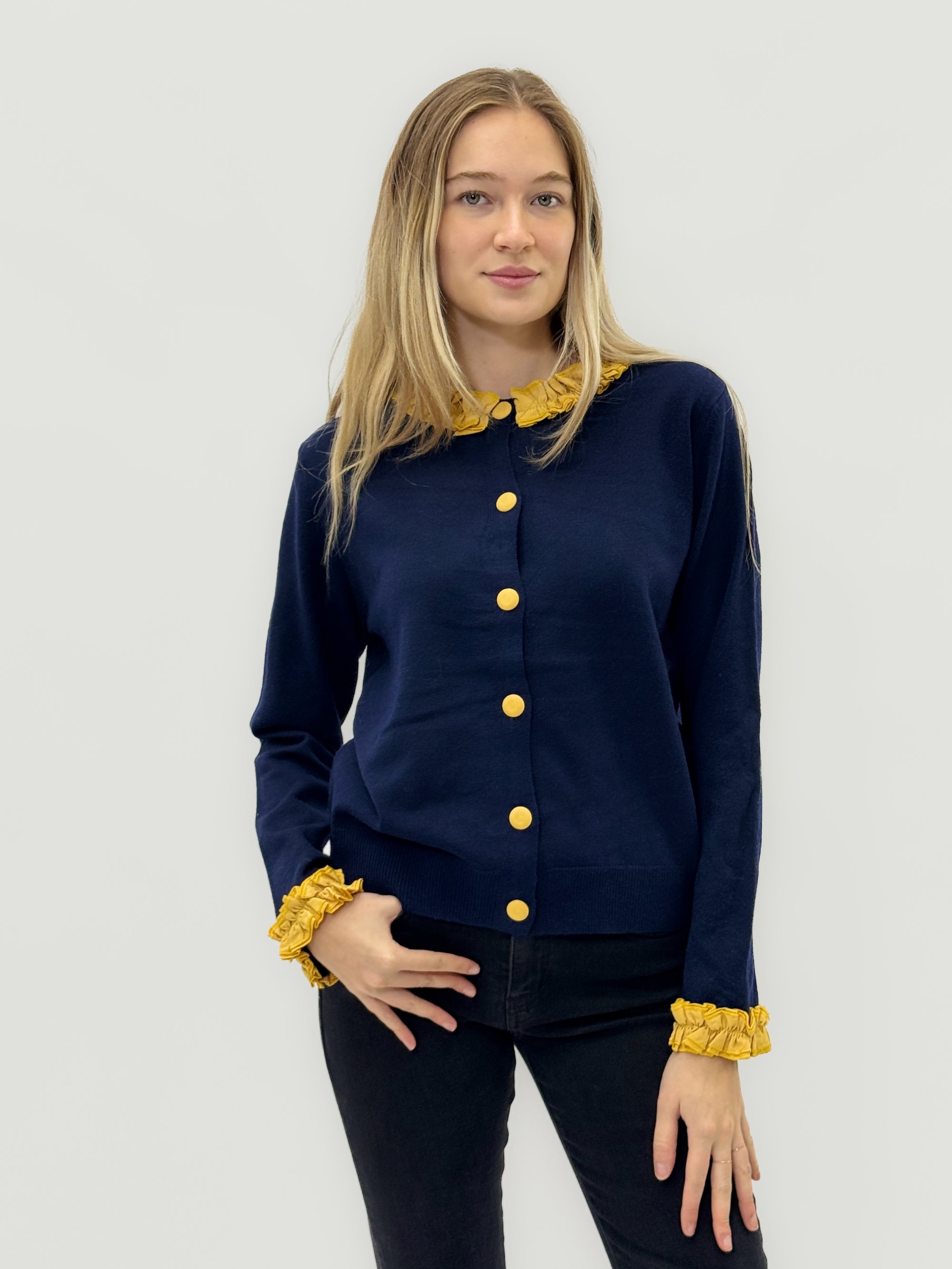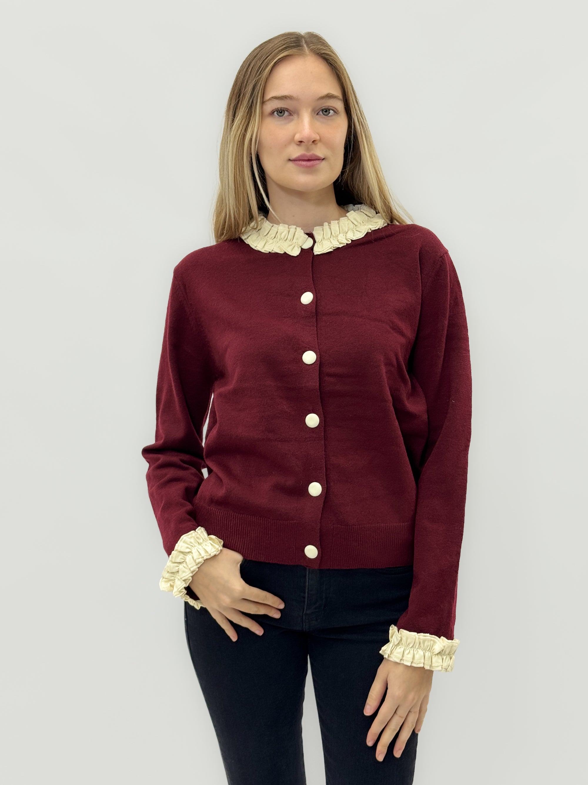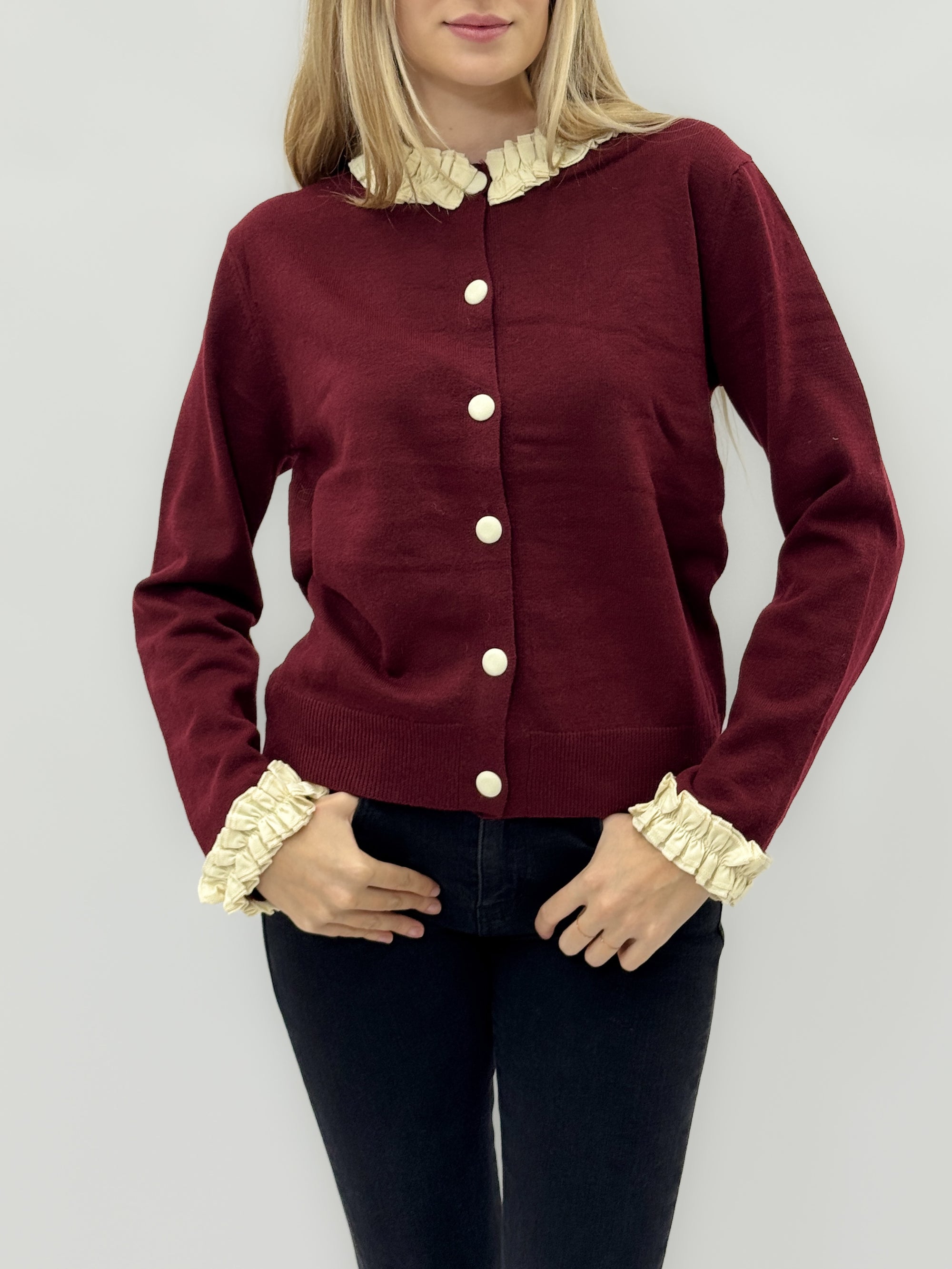 Cardigan con colletto e polsini volant – Dettagli raffinati per un tocco bon ton