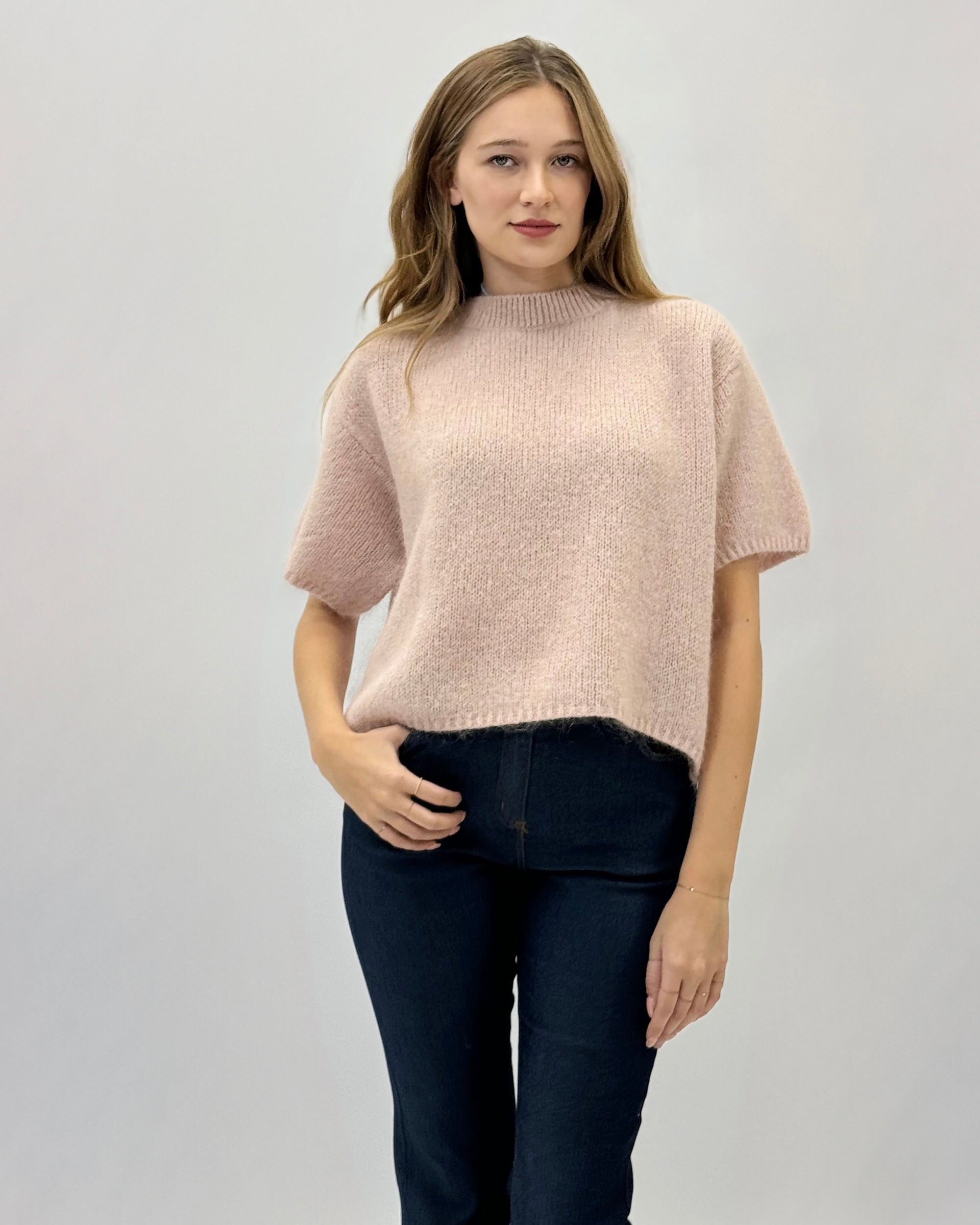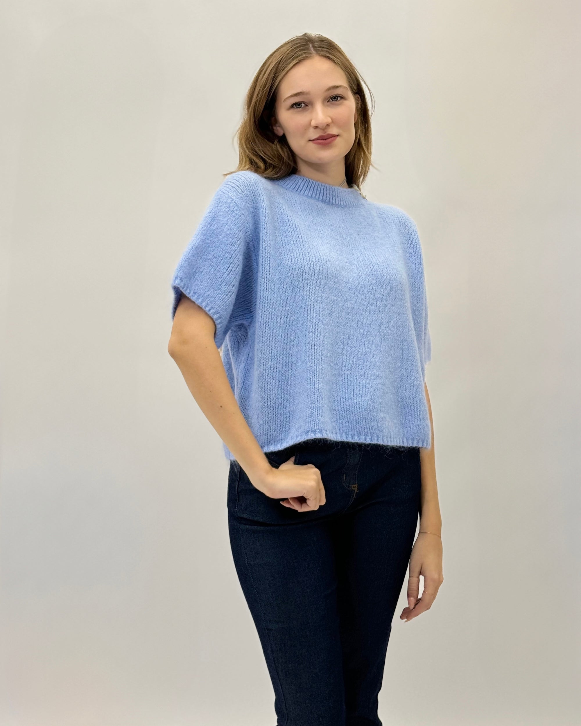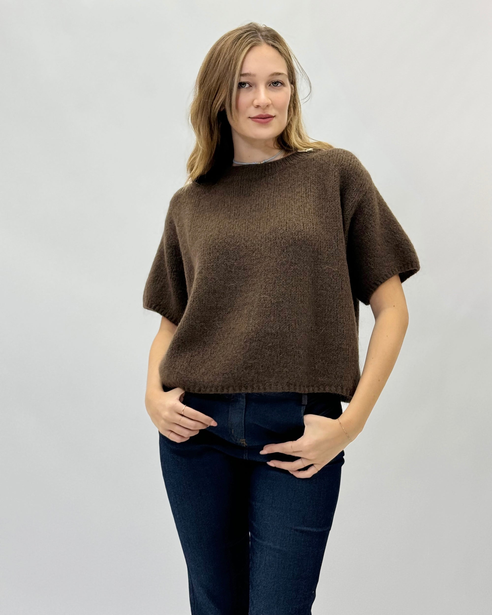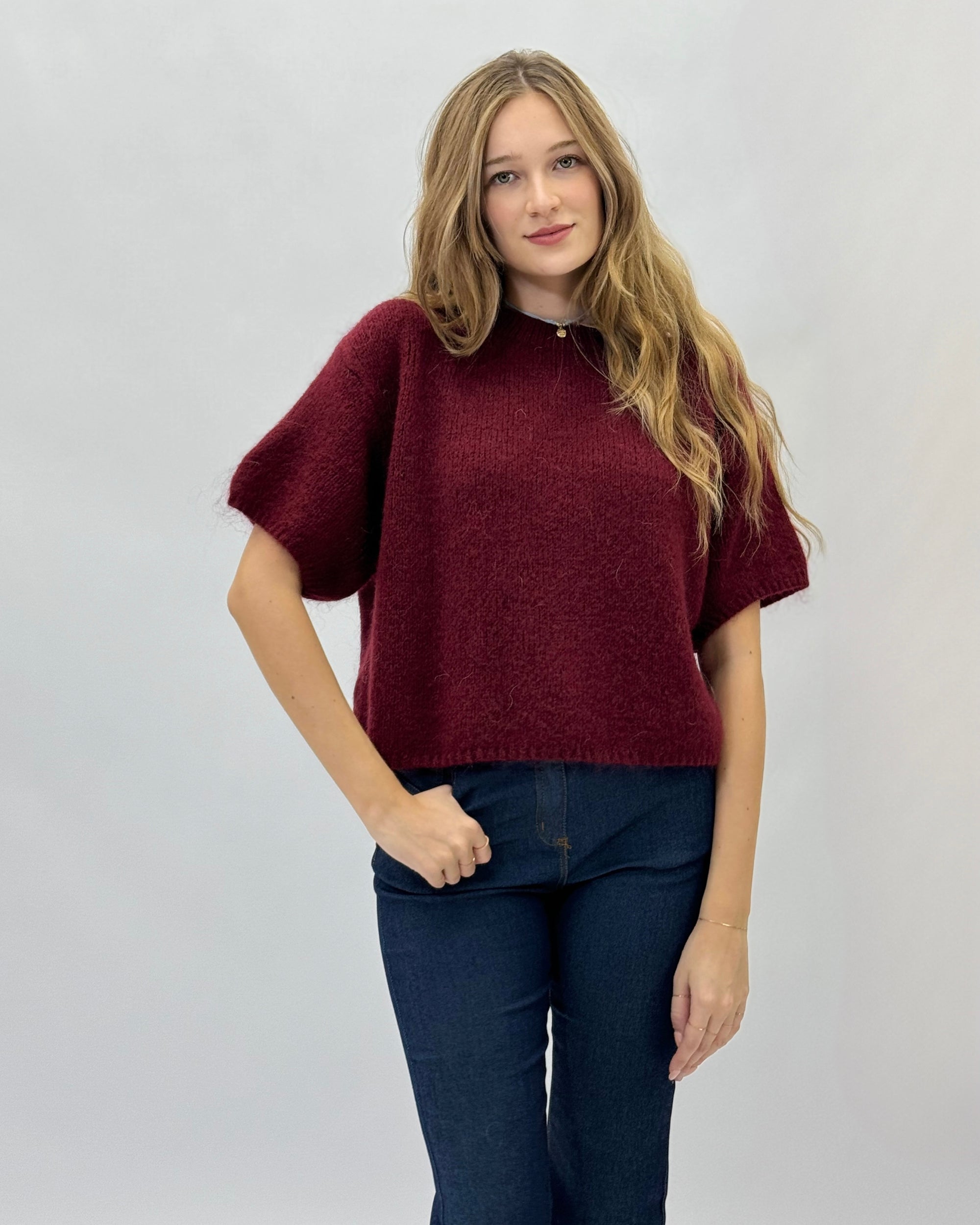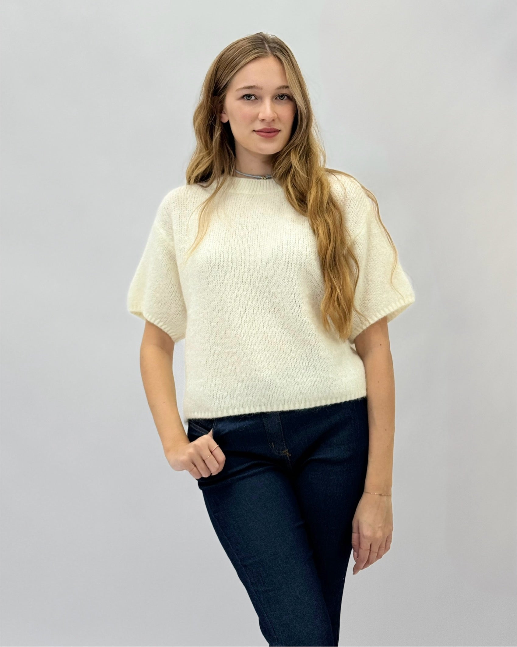 Maglia in maglia fine con maniche corte
