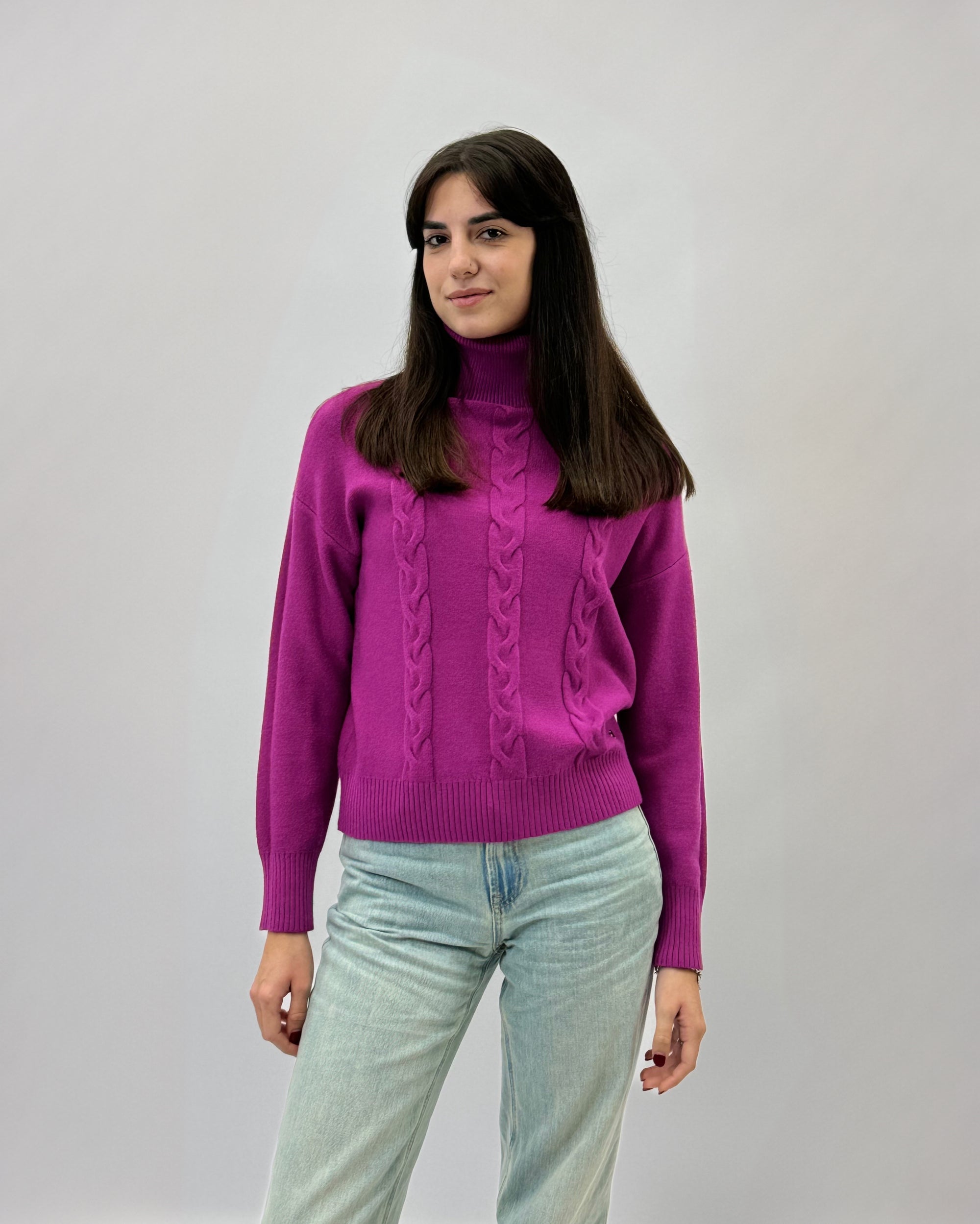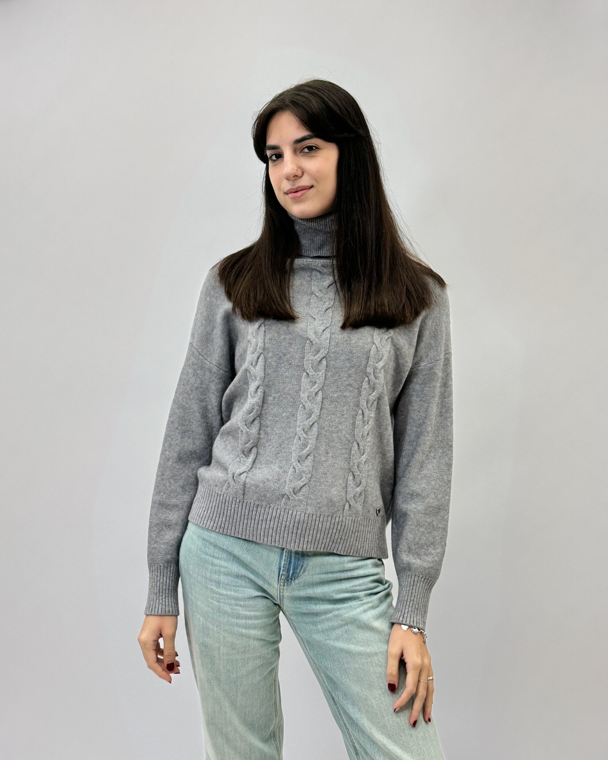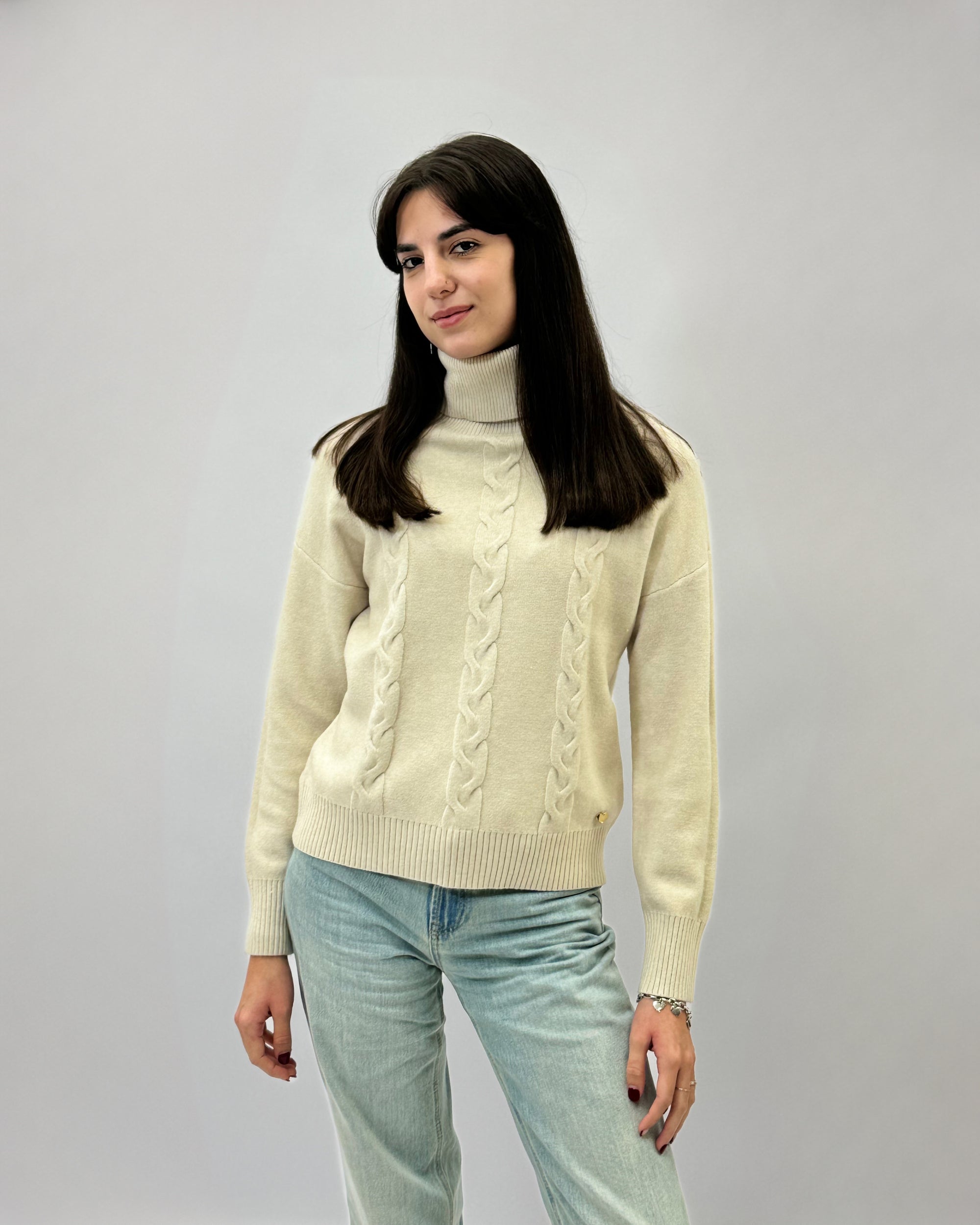 Maglione dolcevita con tre intrecci