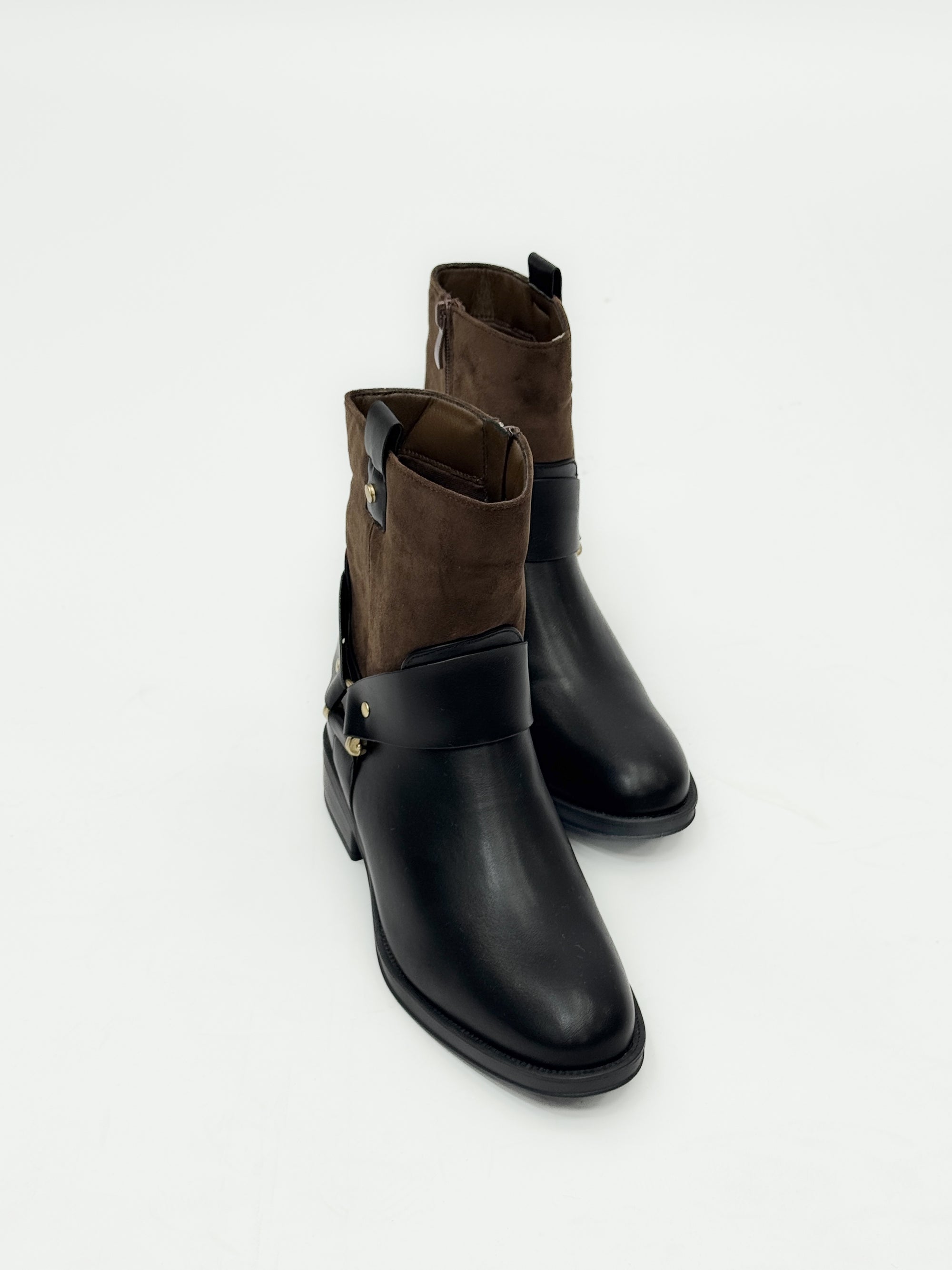 Stivaletti biker bicolor con dettagli