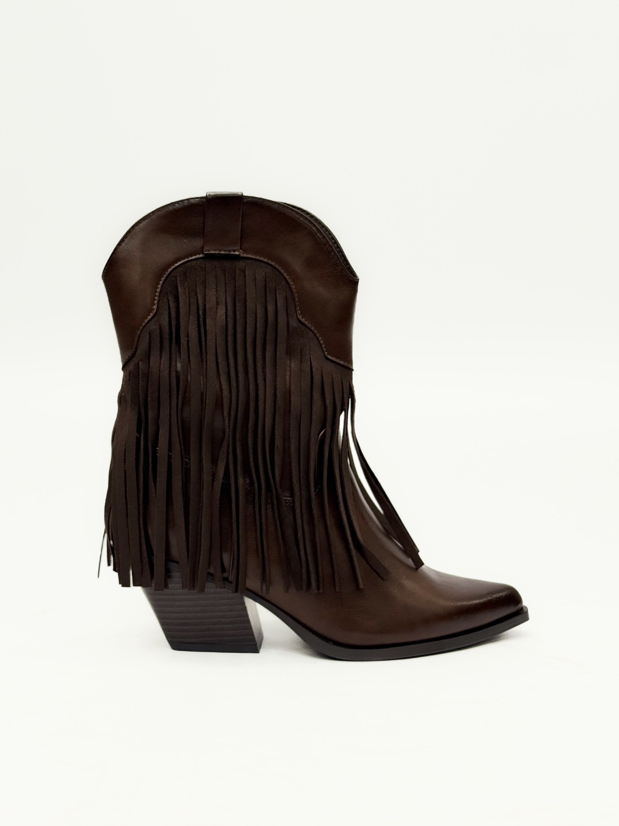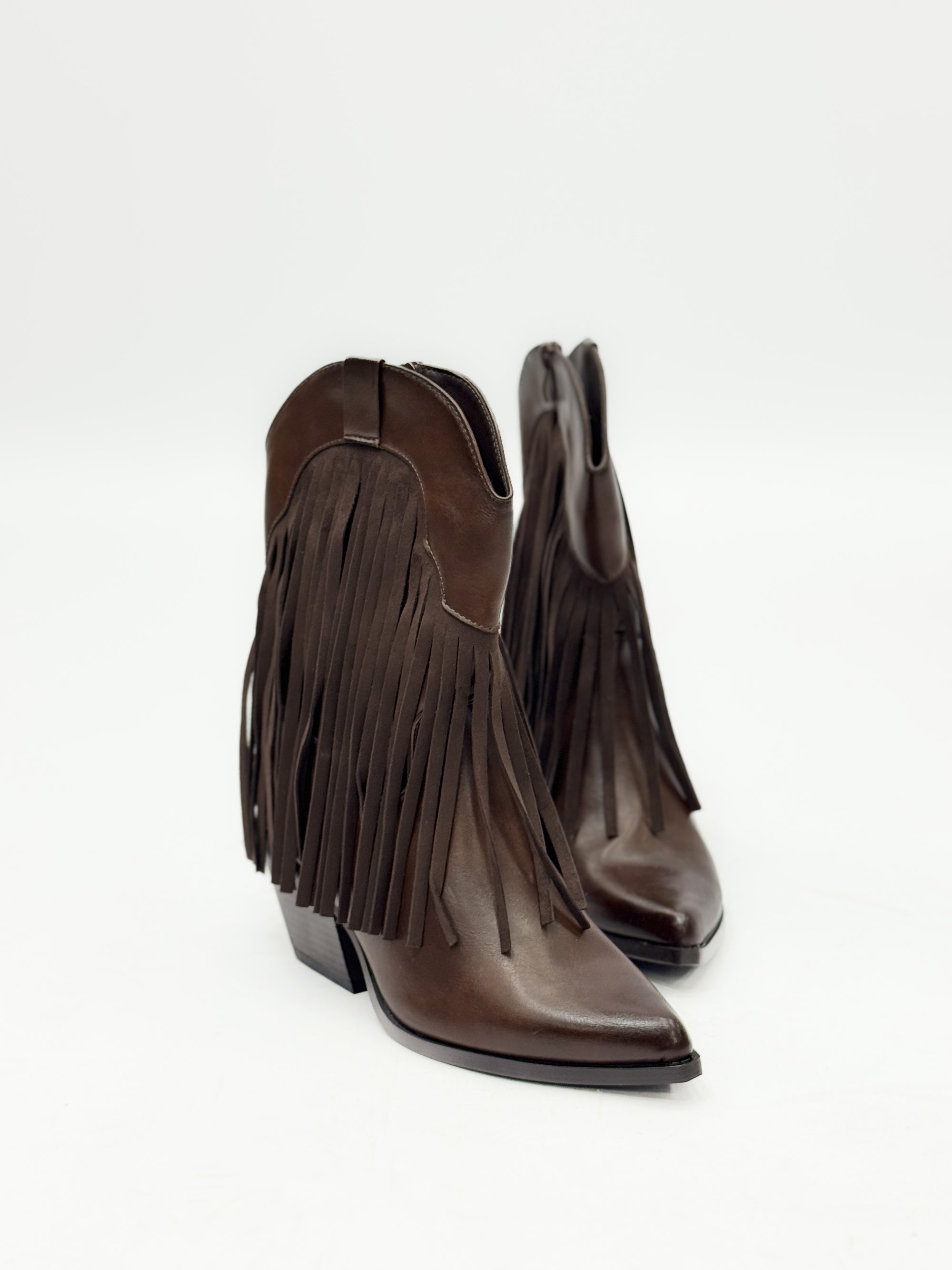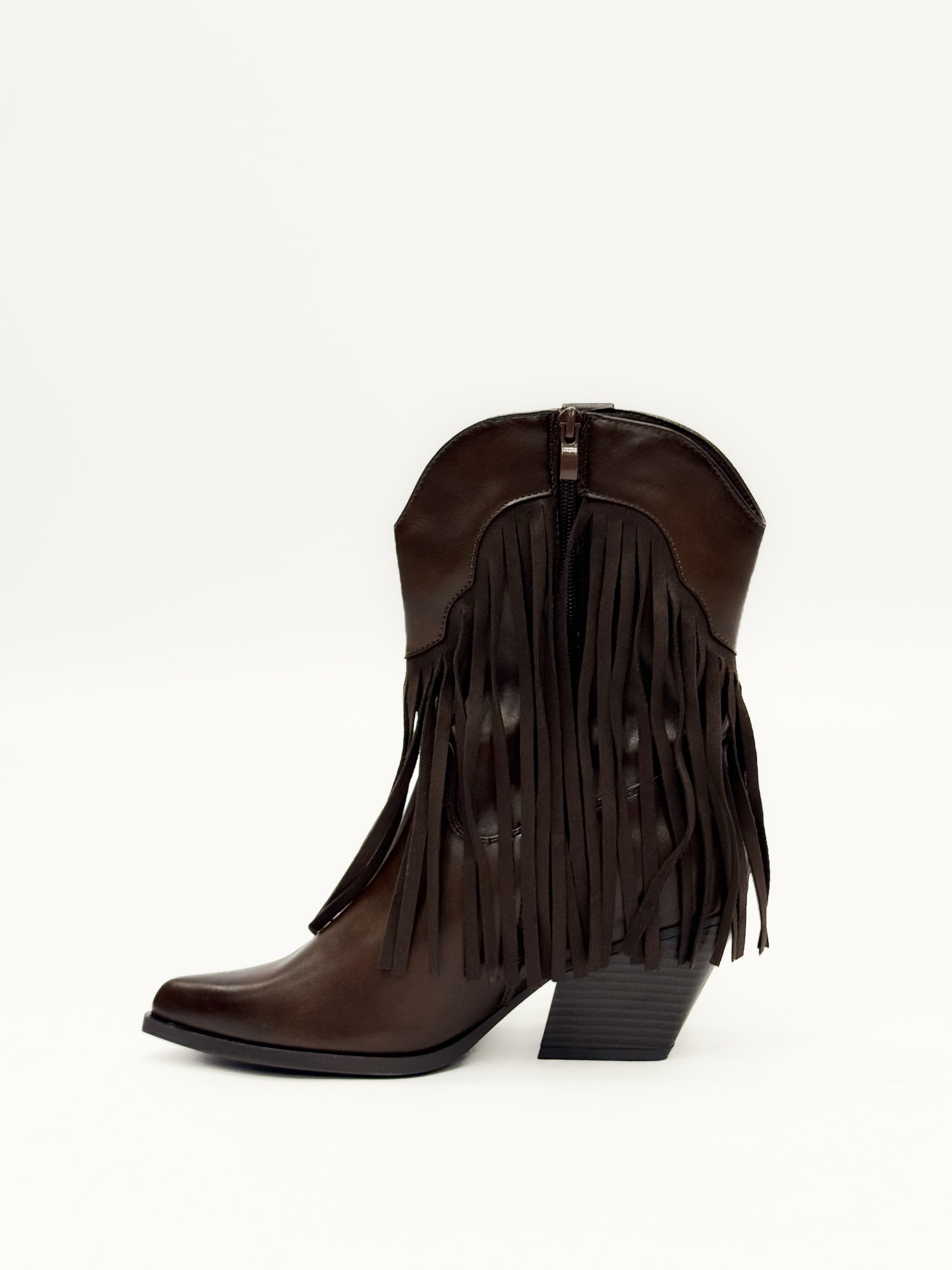 Stivaletti texani con frange e zip laterale