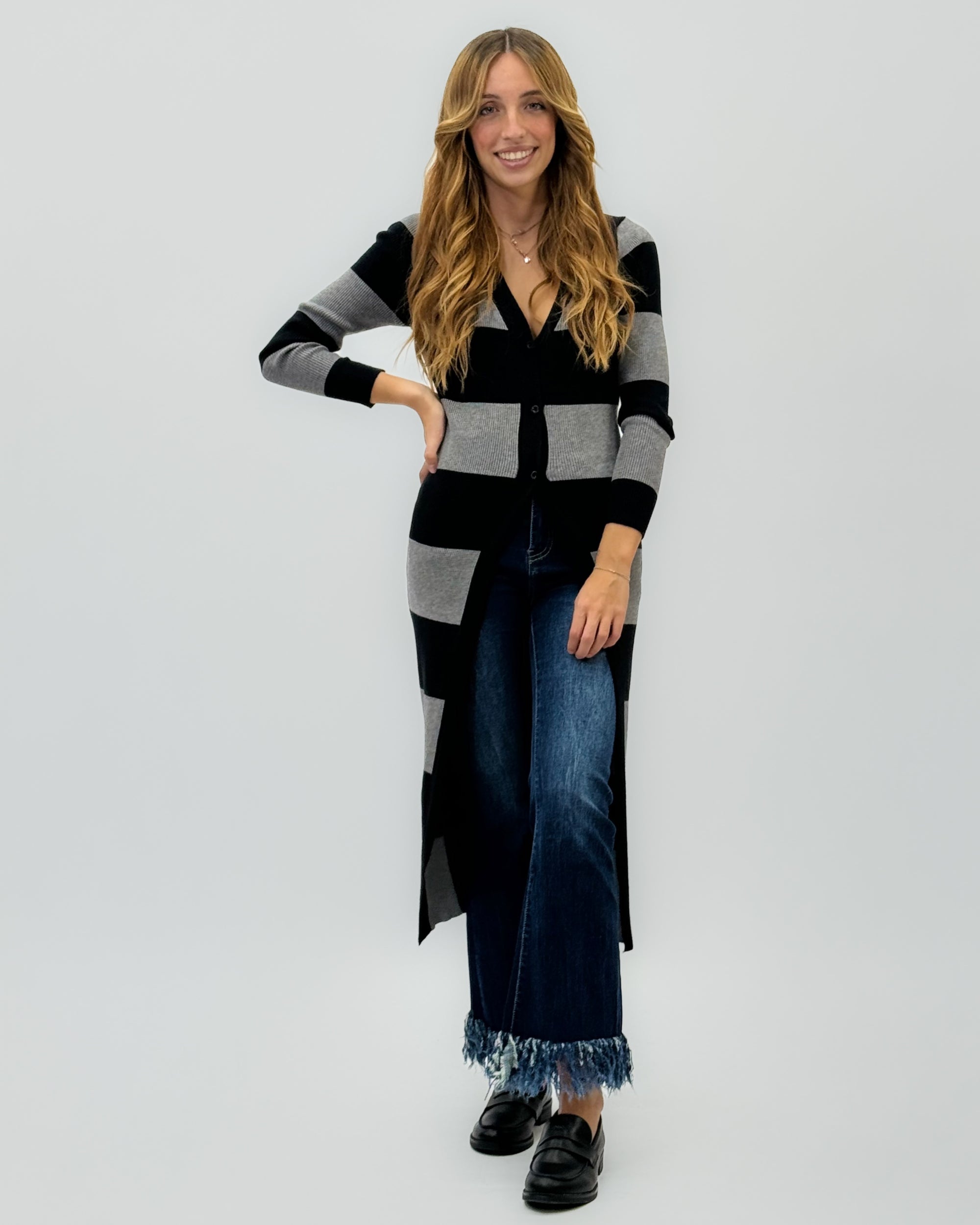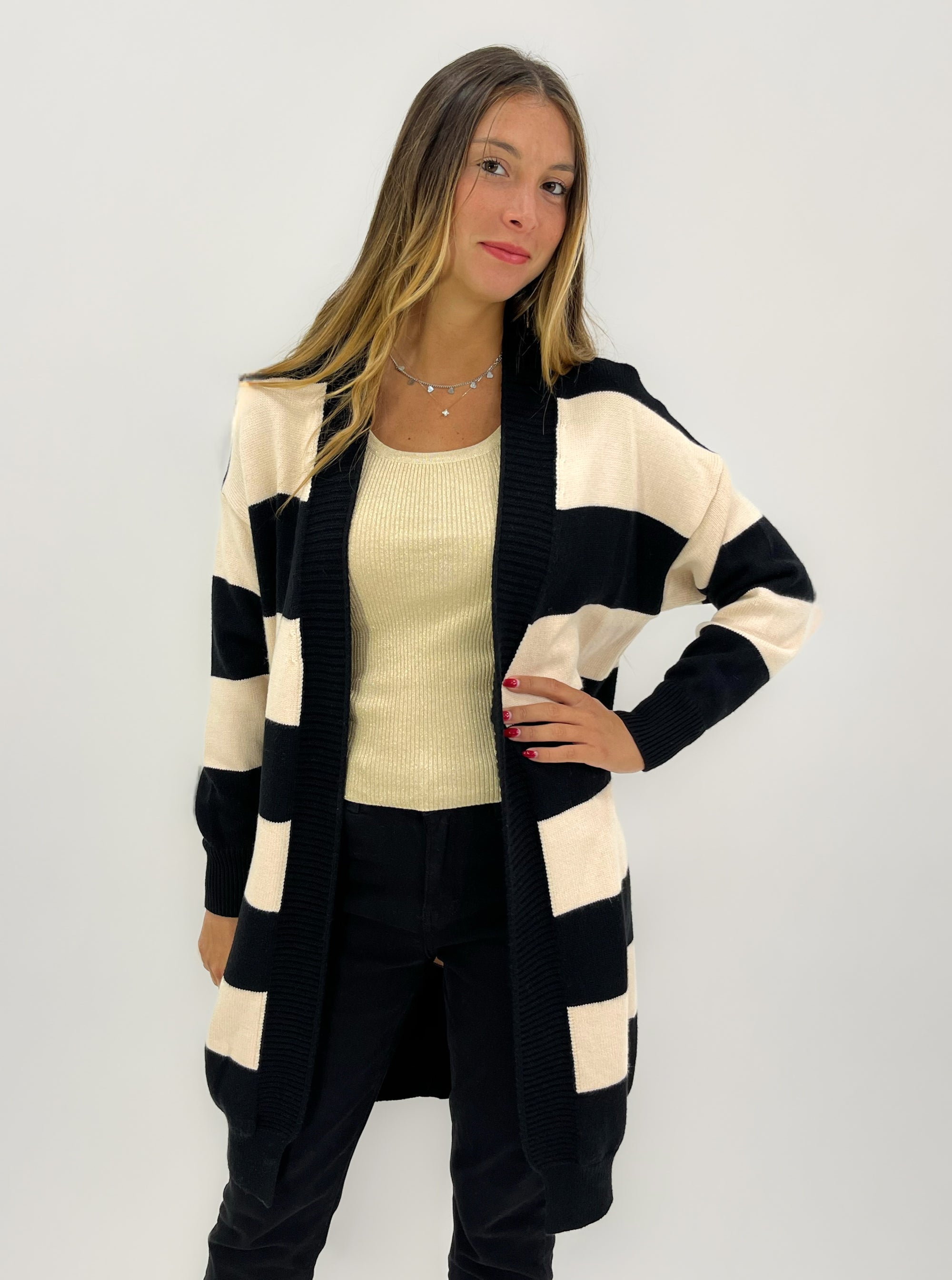 Cardigan lungo a righe larghe – Stile moderno e avvolgente
