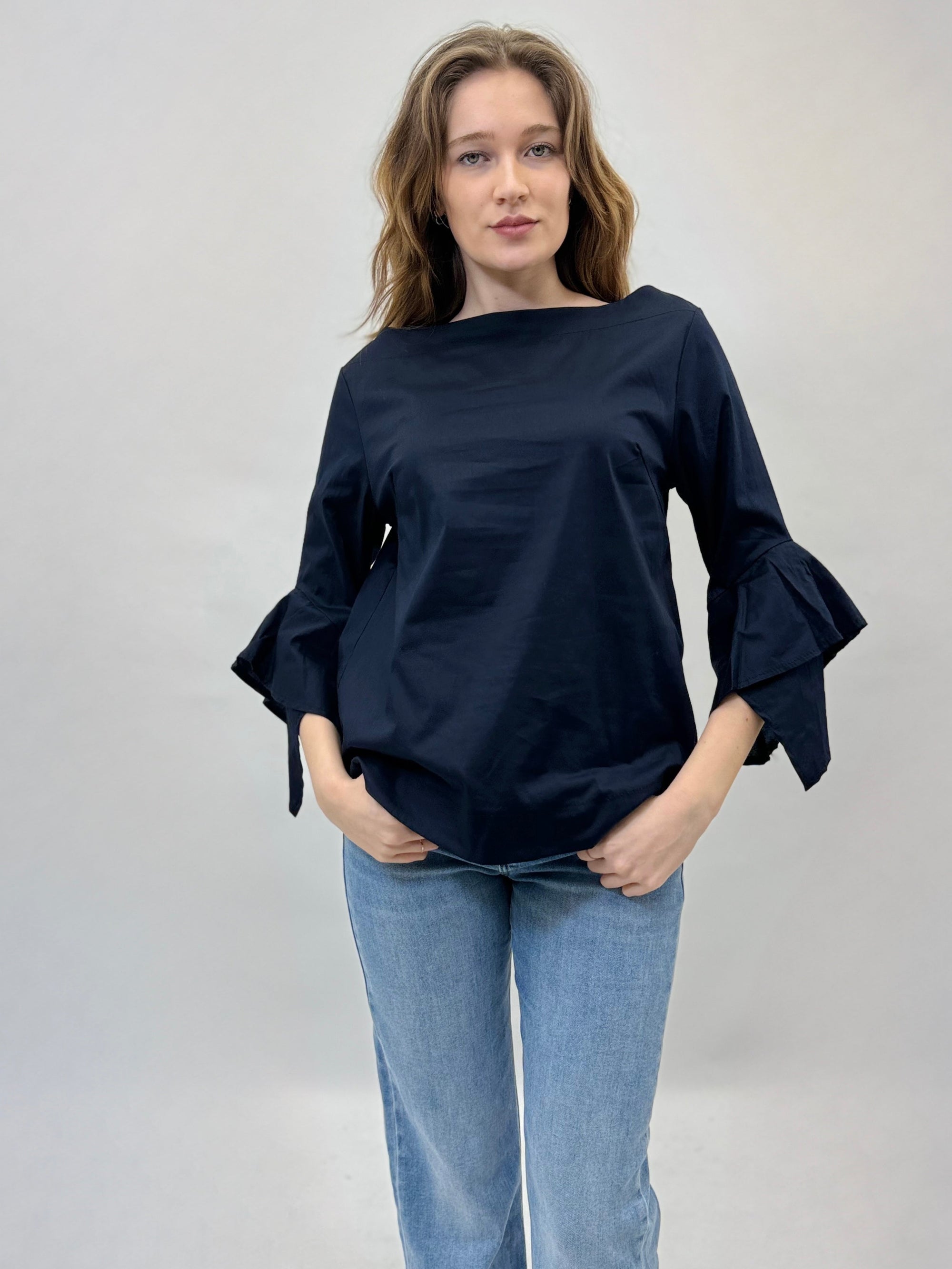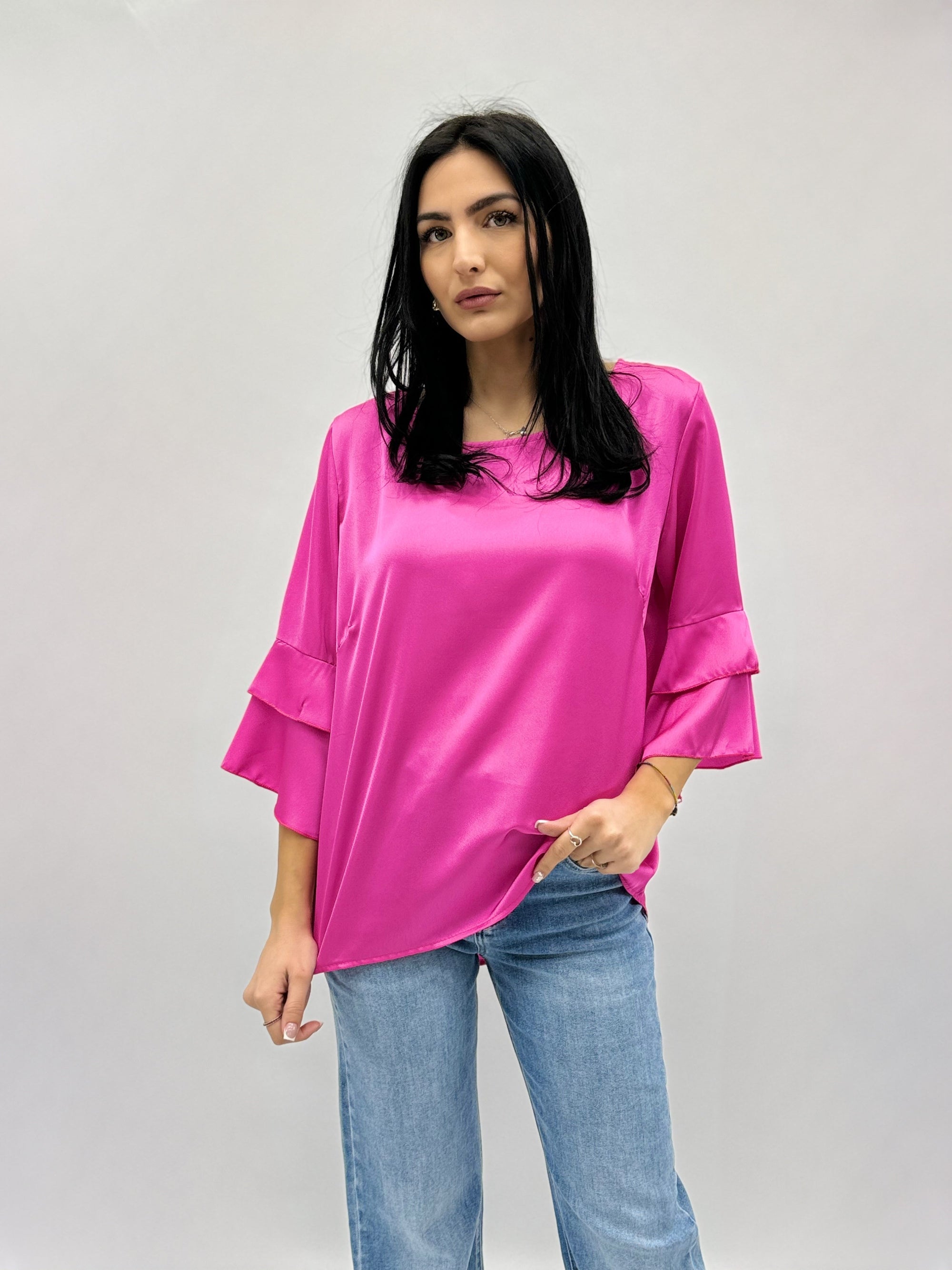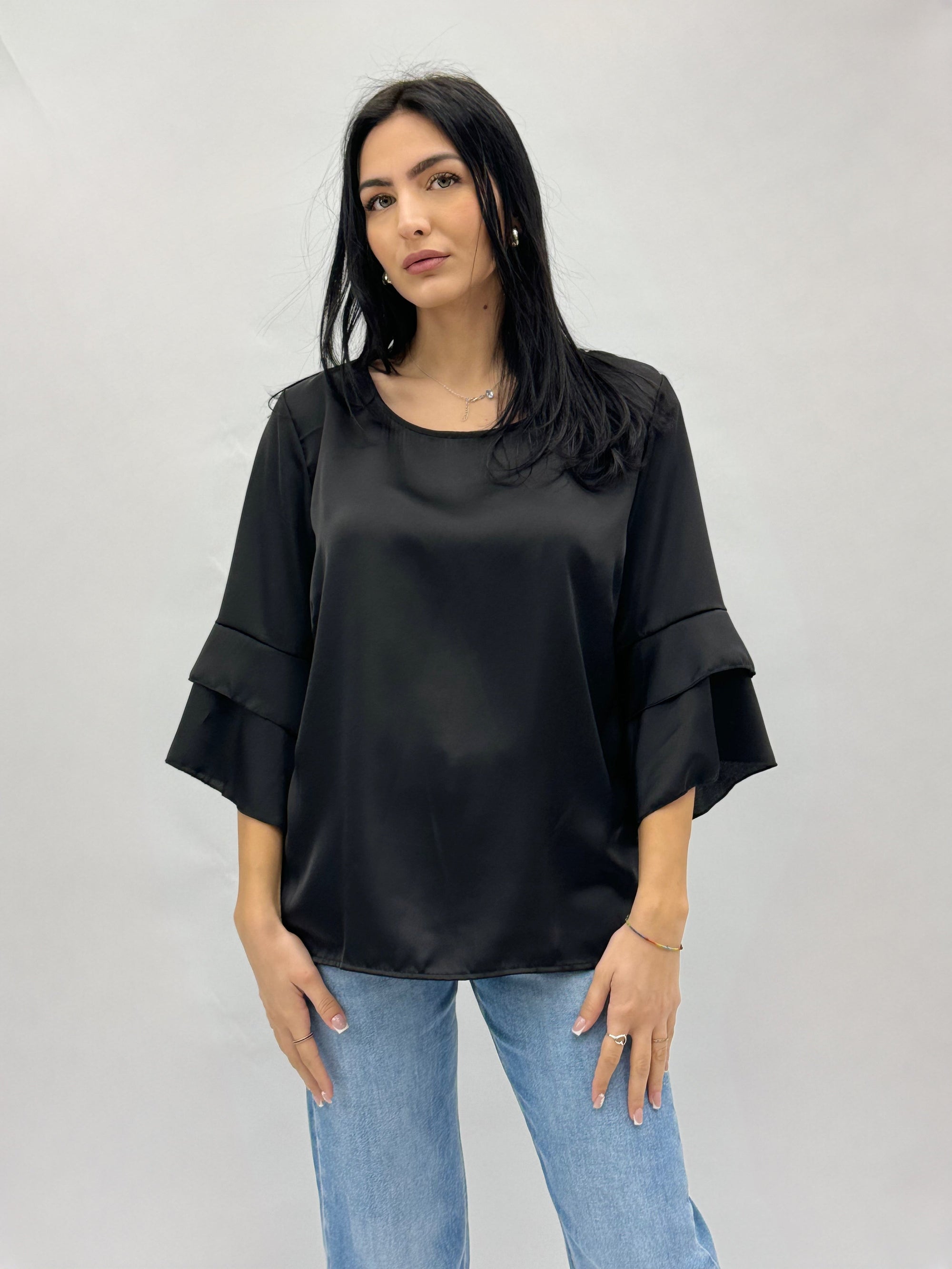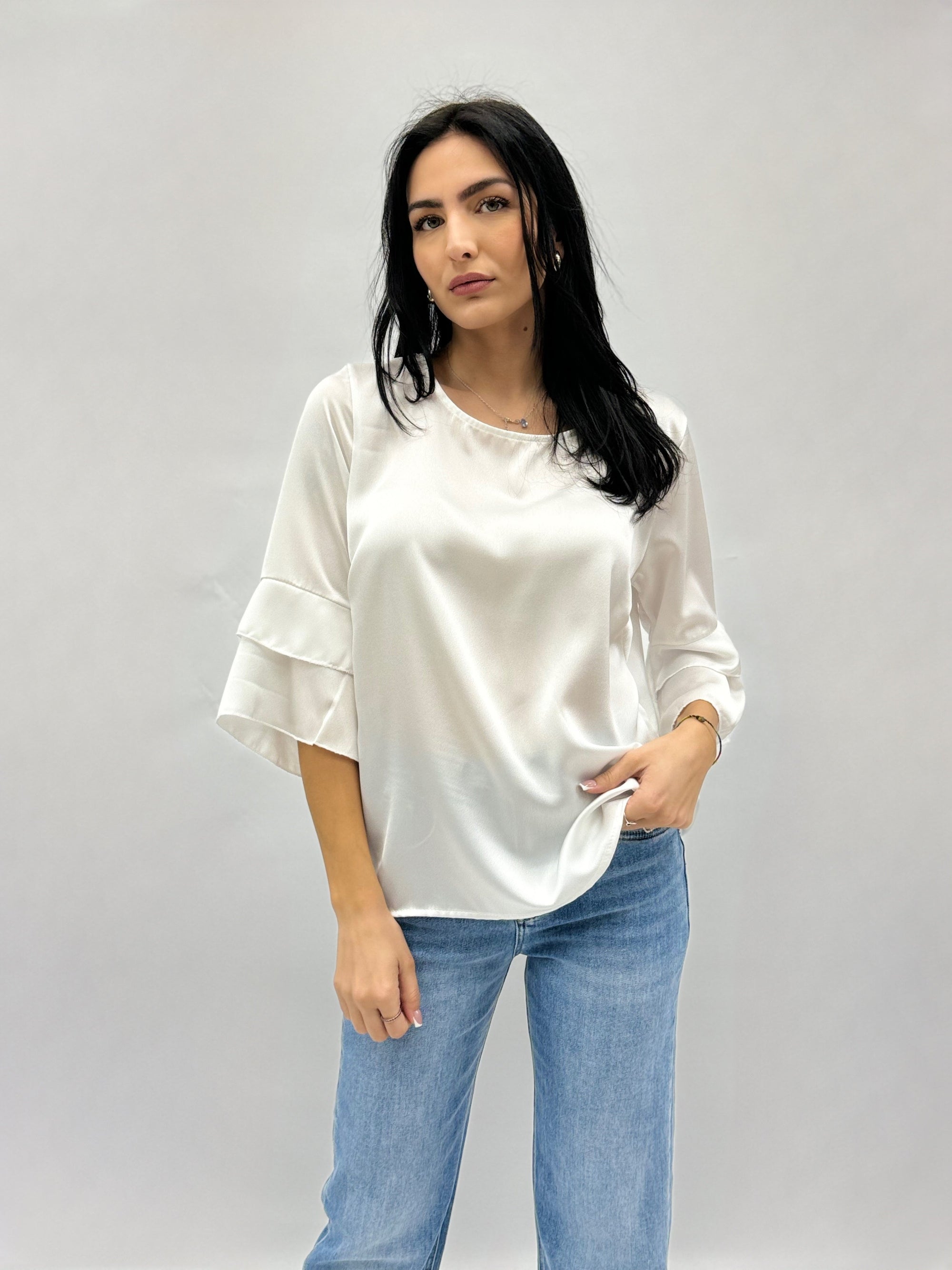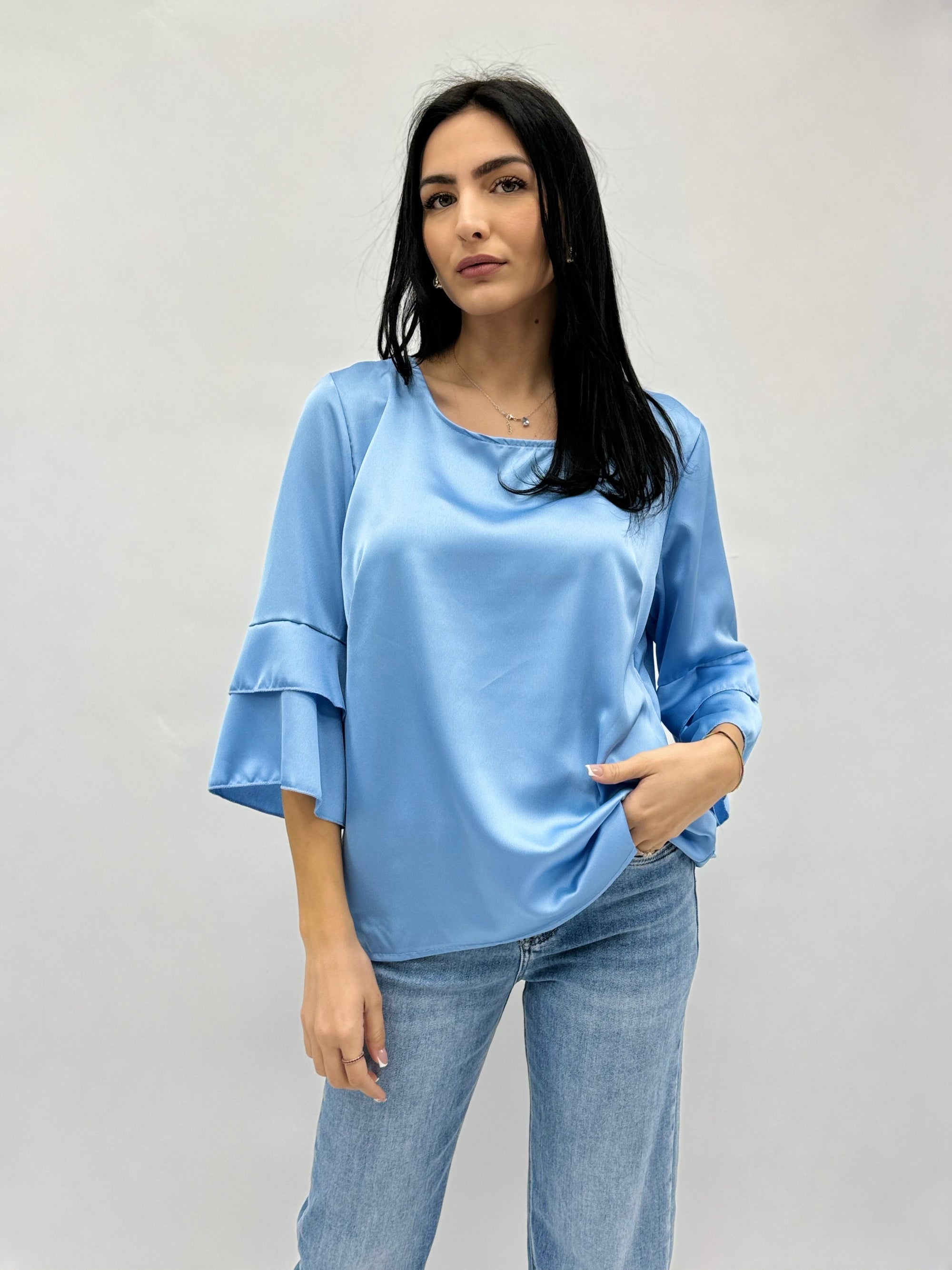 Maglia in raso con maniche campana