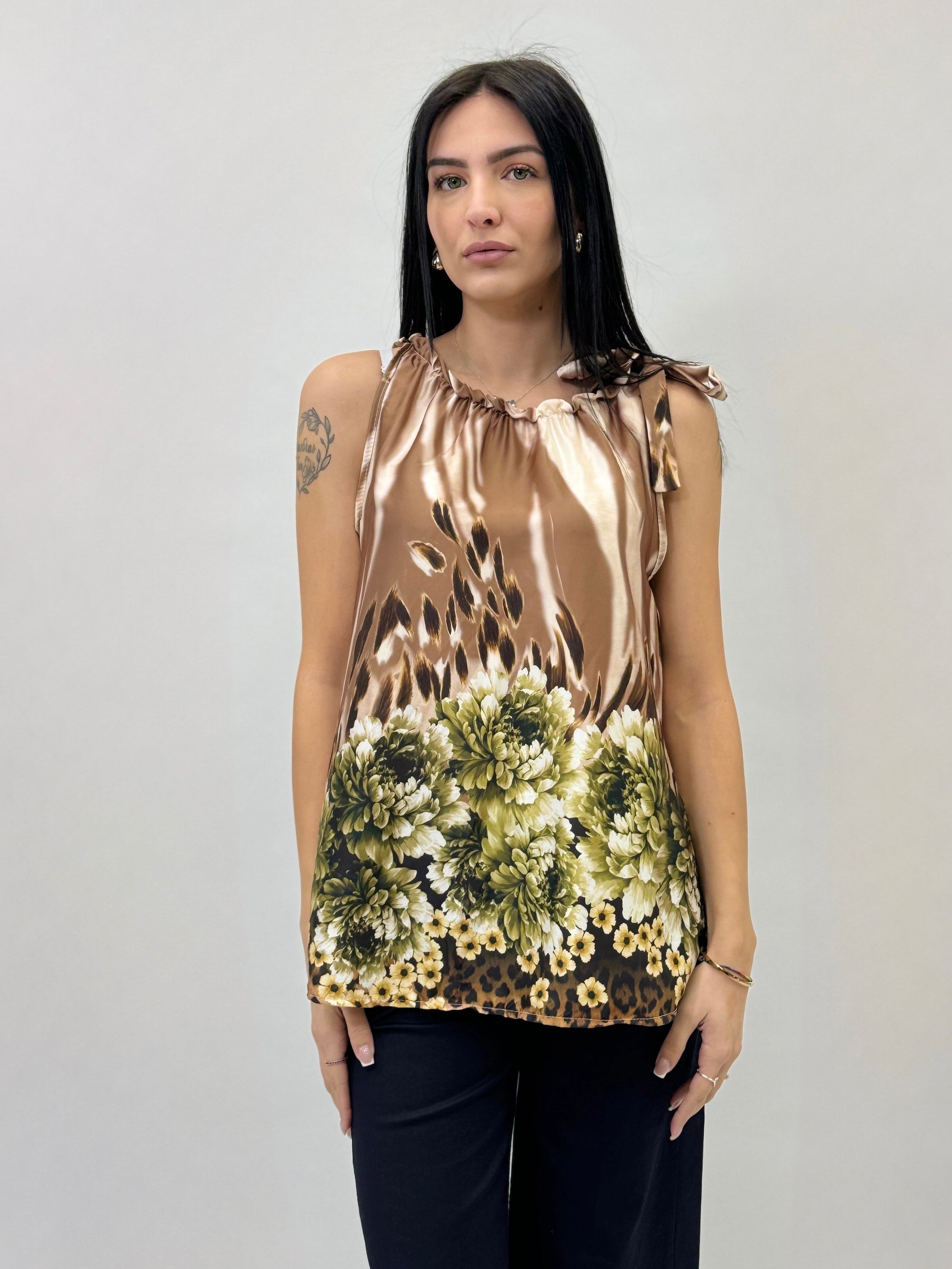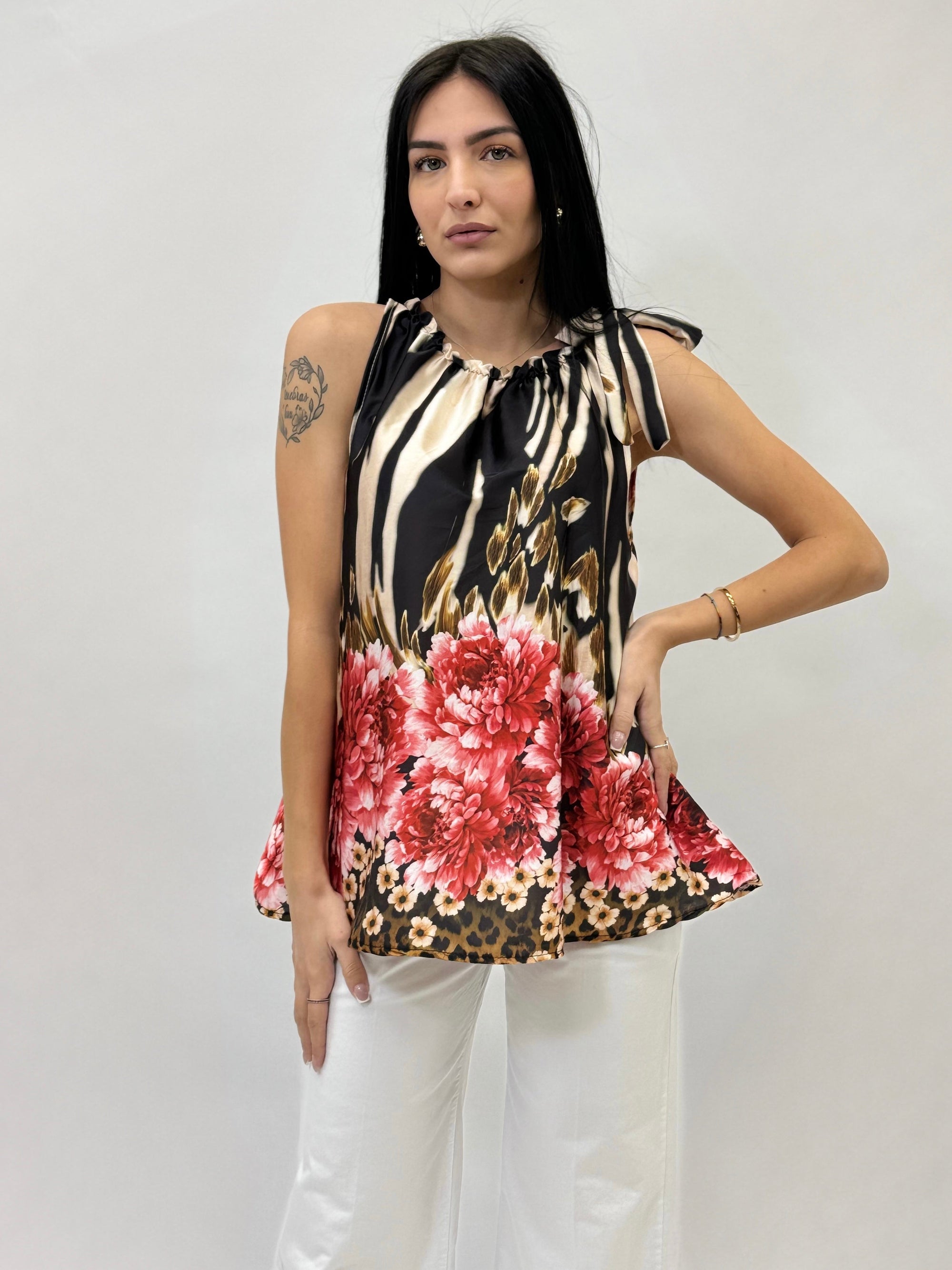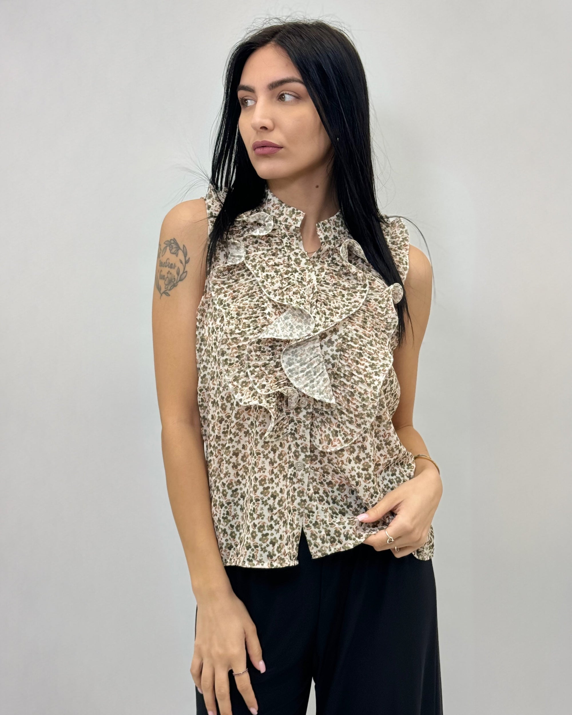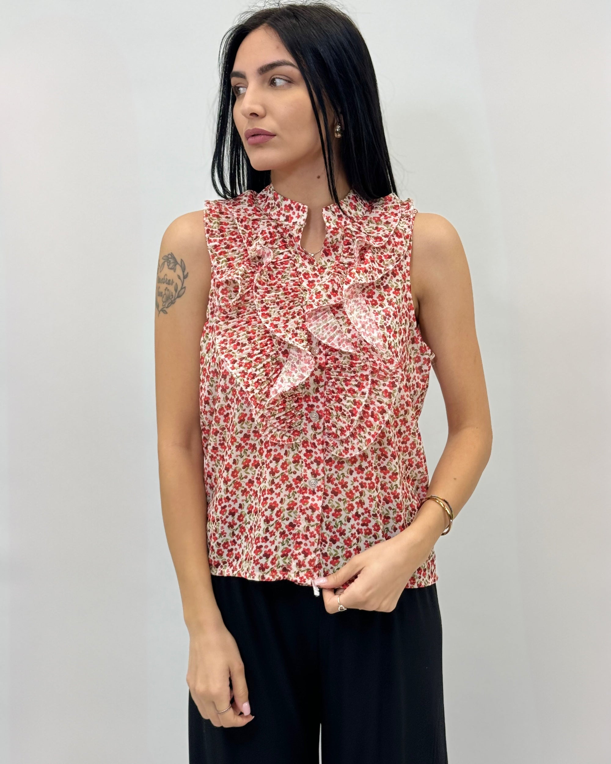 Blusa smanicata con rouches
