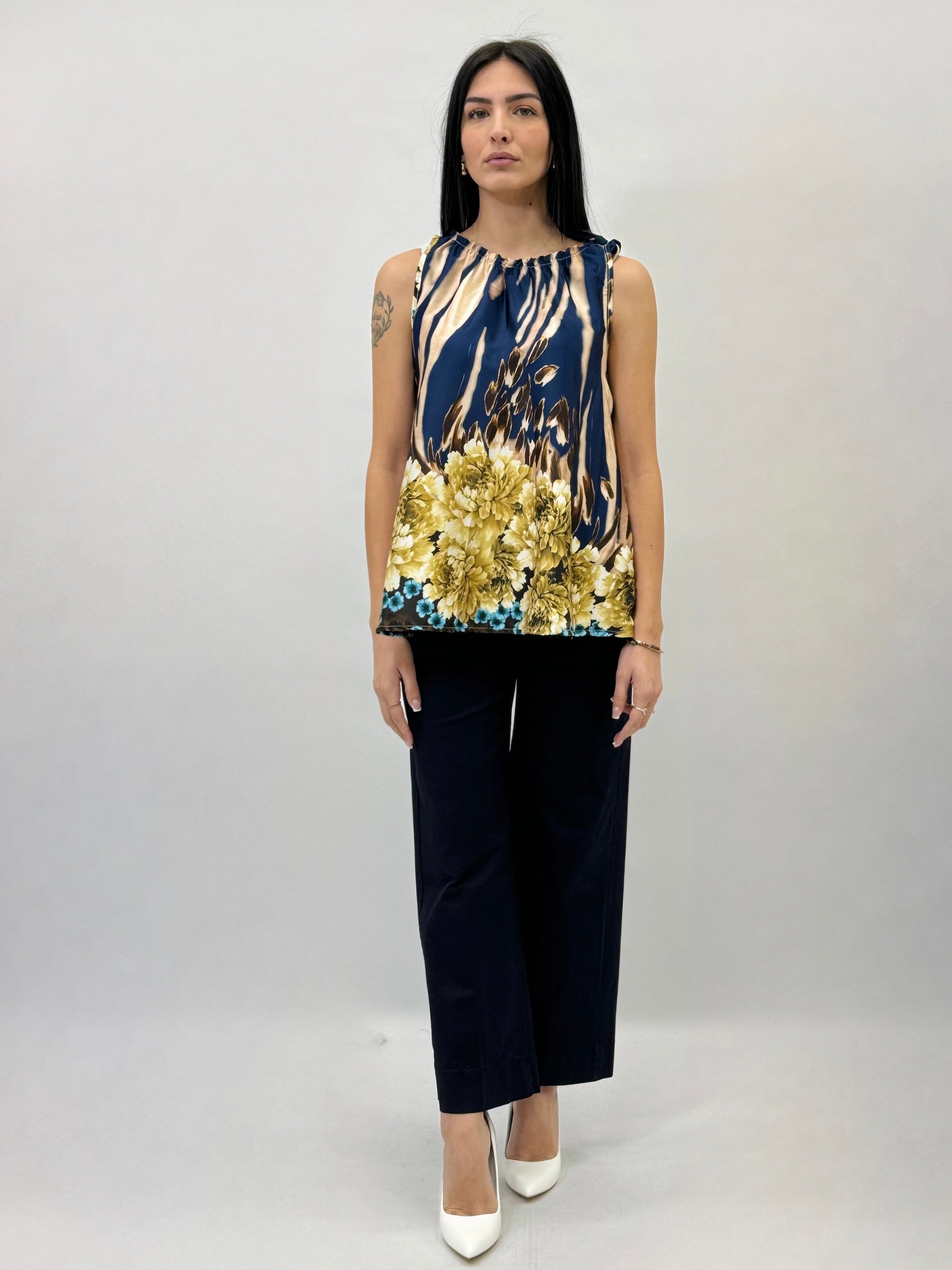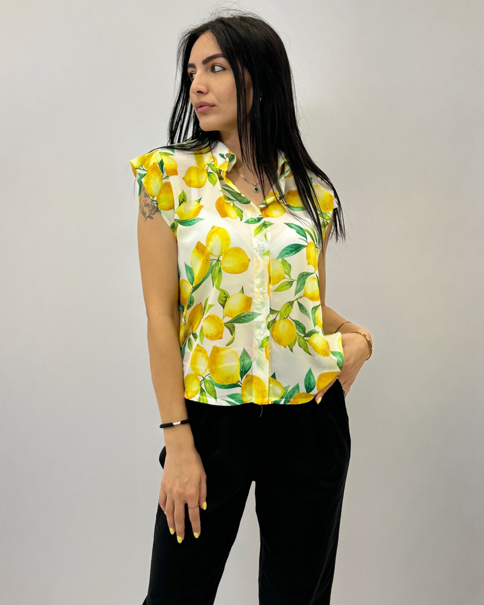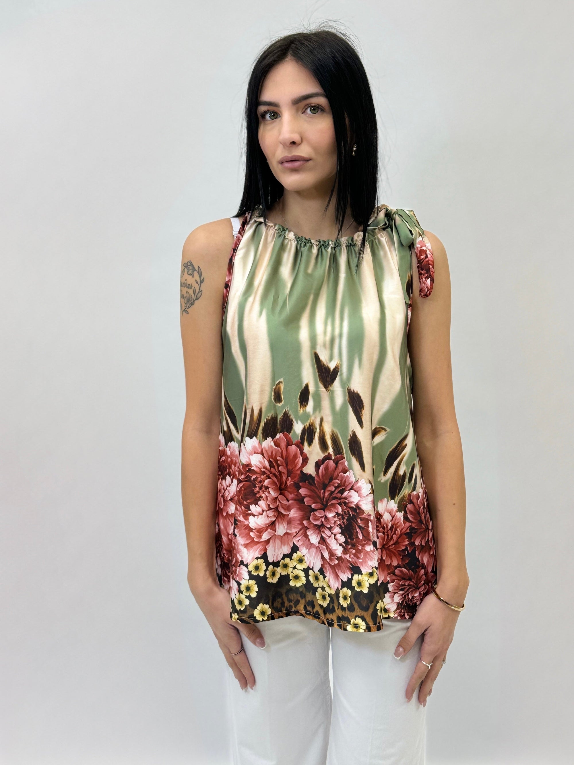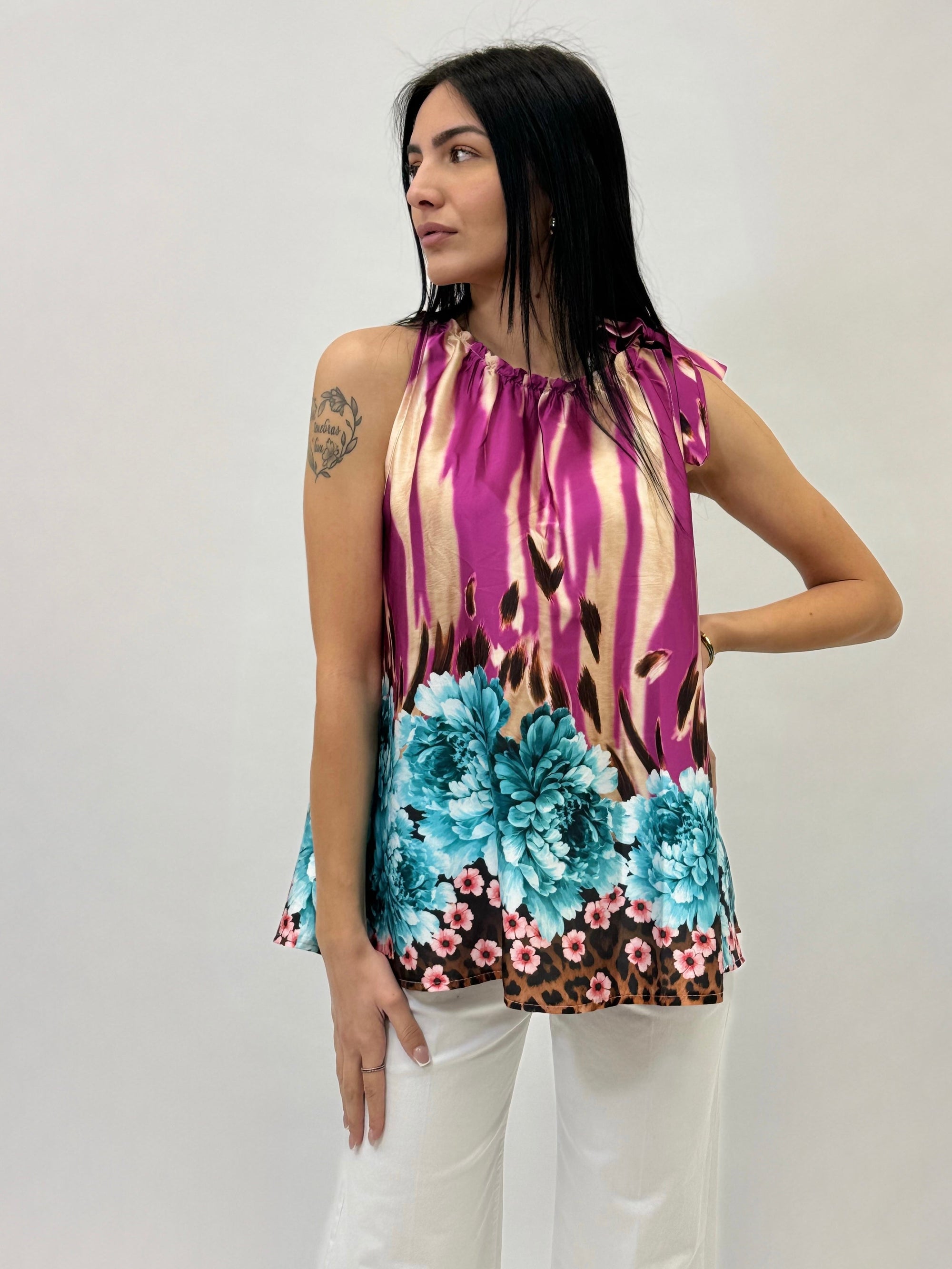 Blusa smanicata con rouches