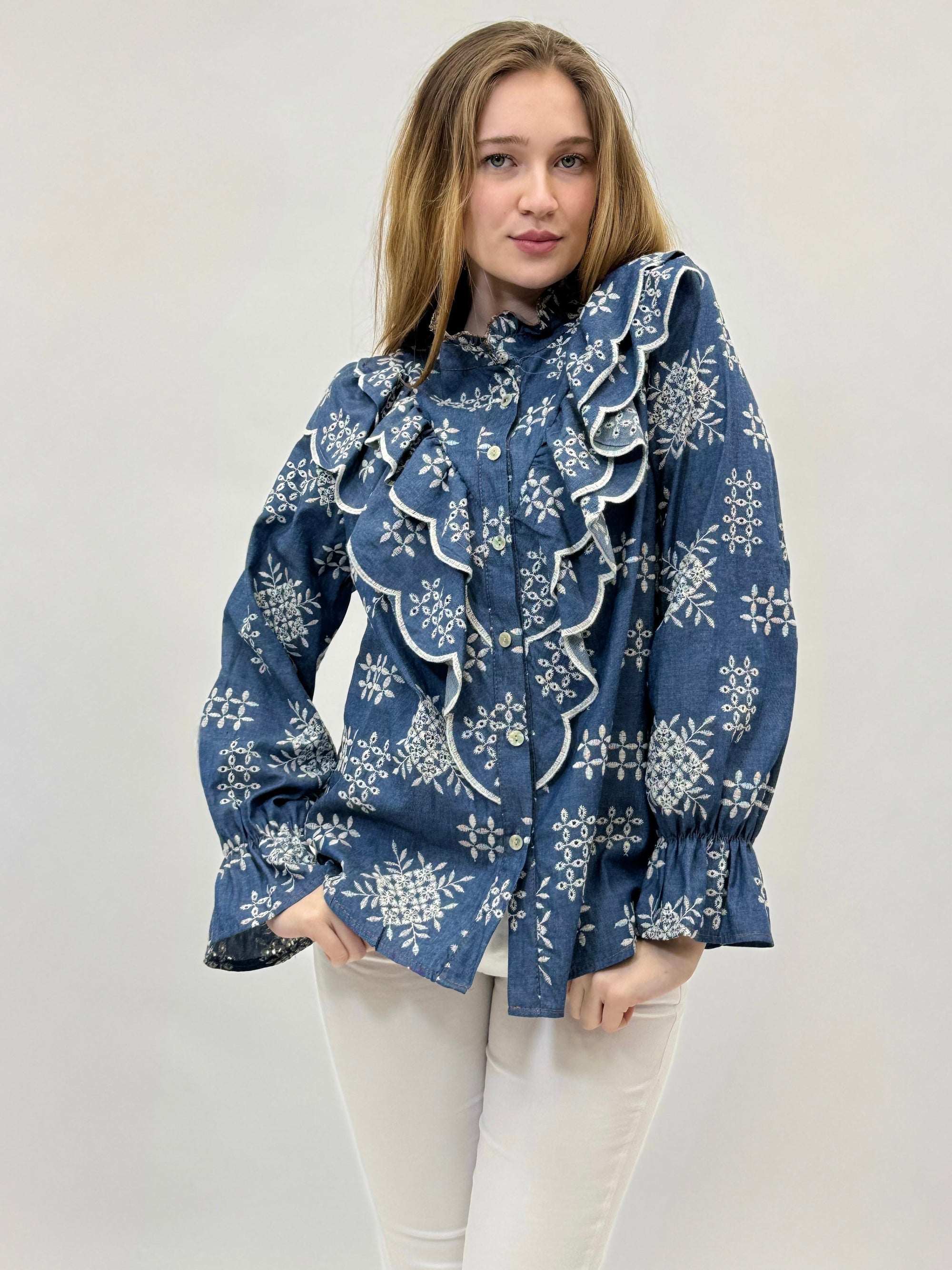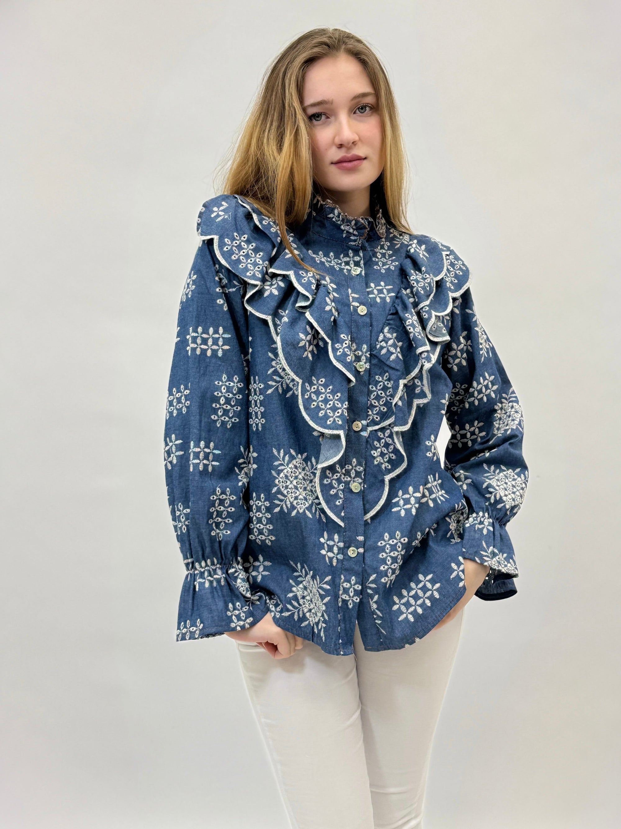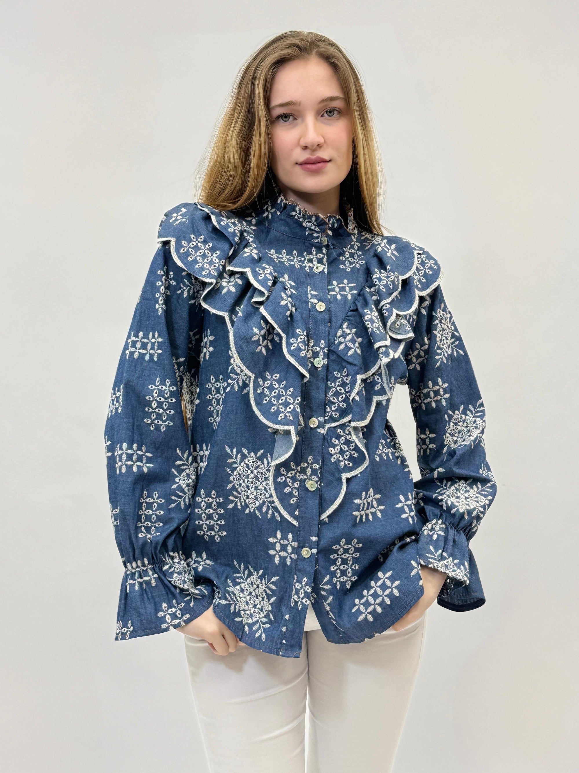 Camicia premium ricamata con balze