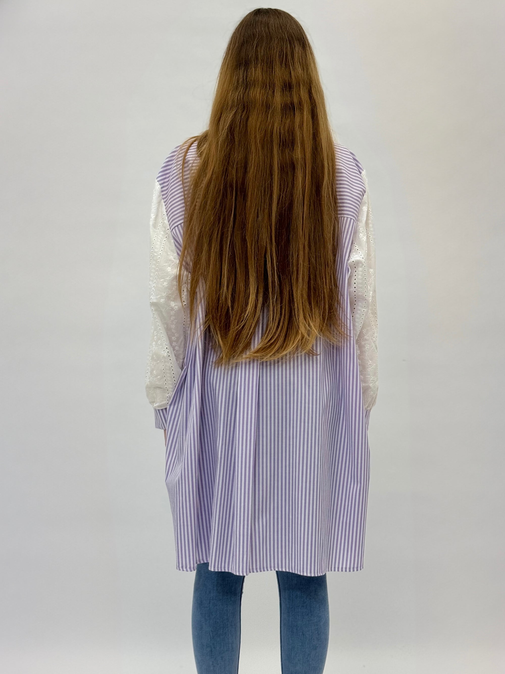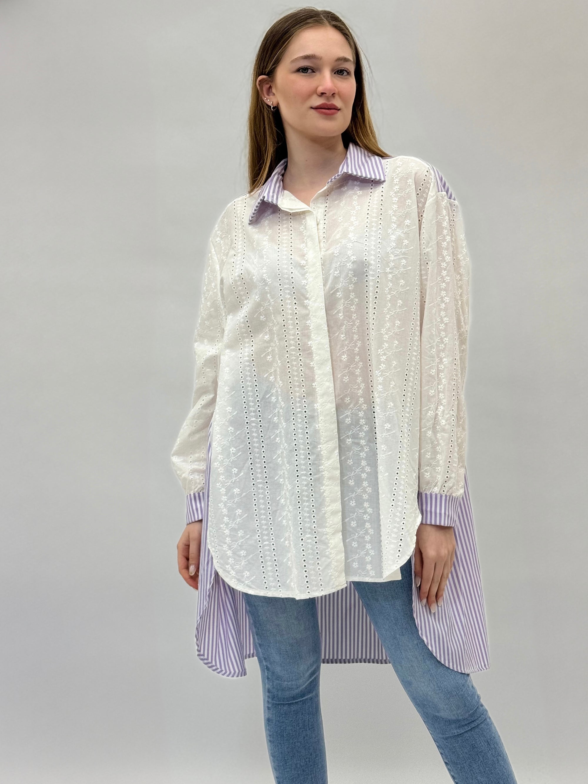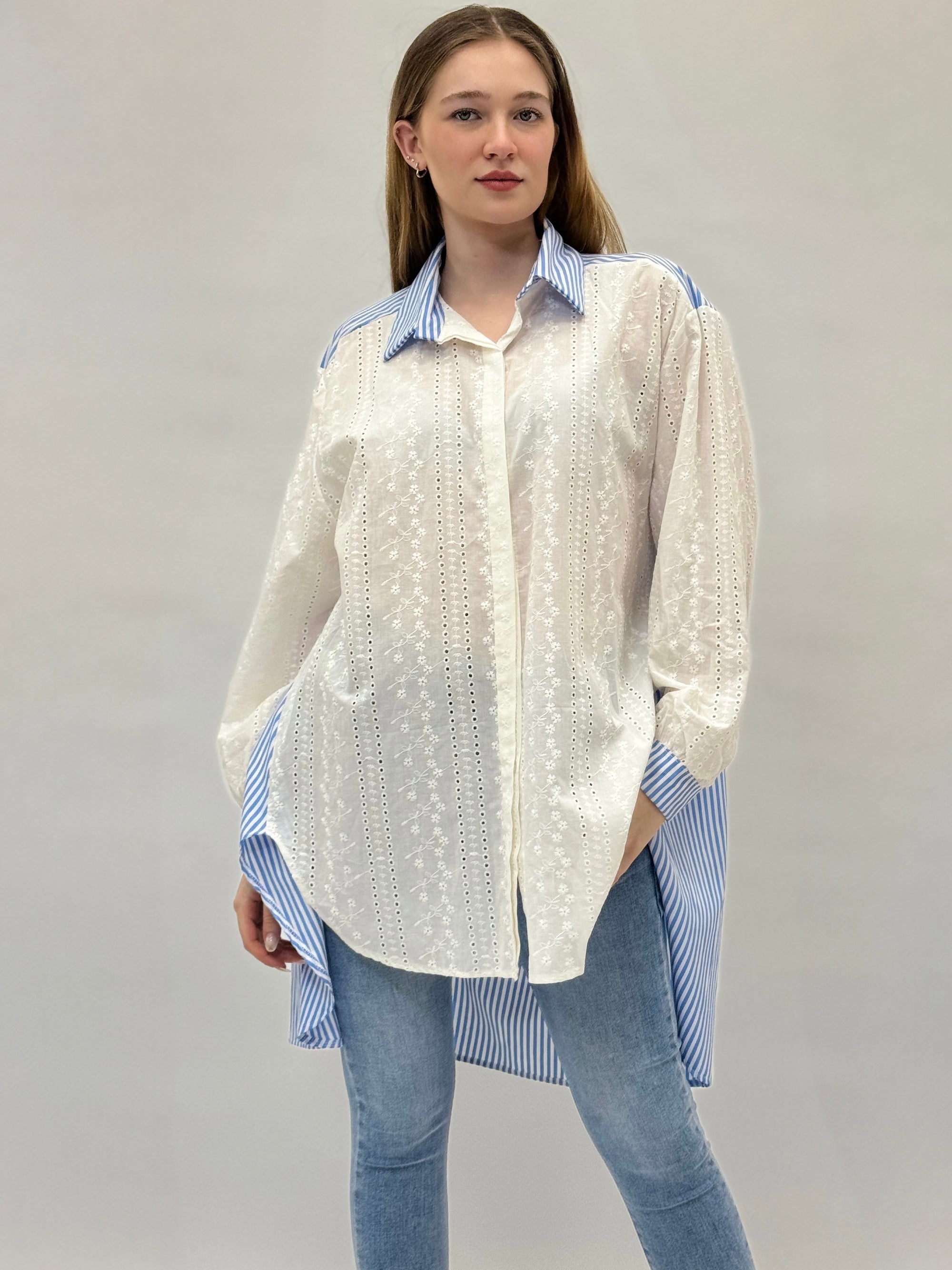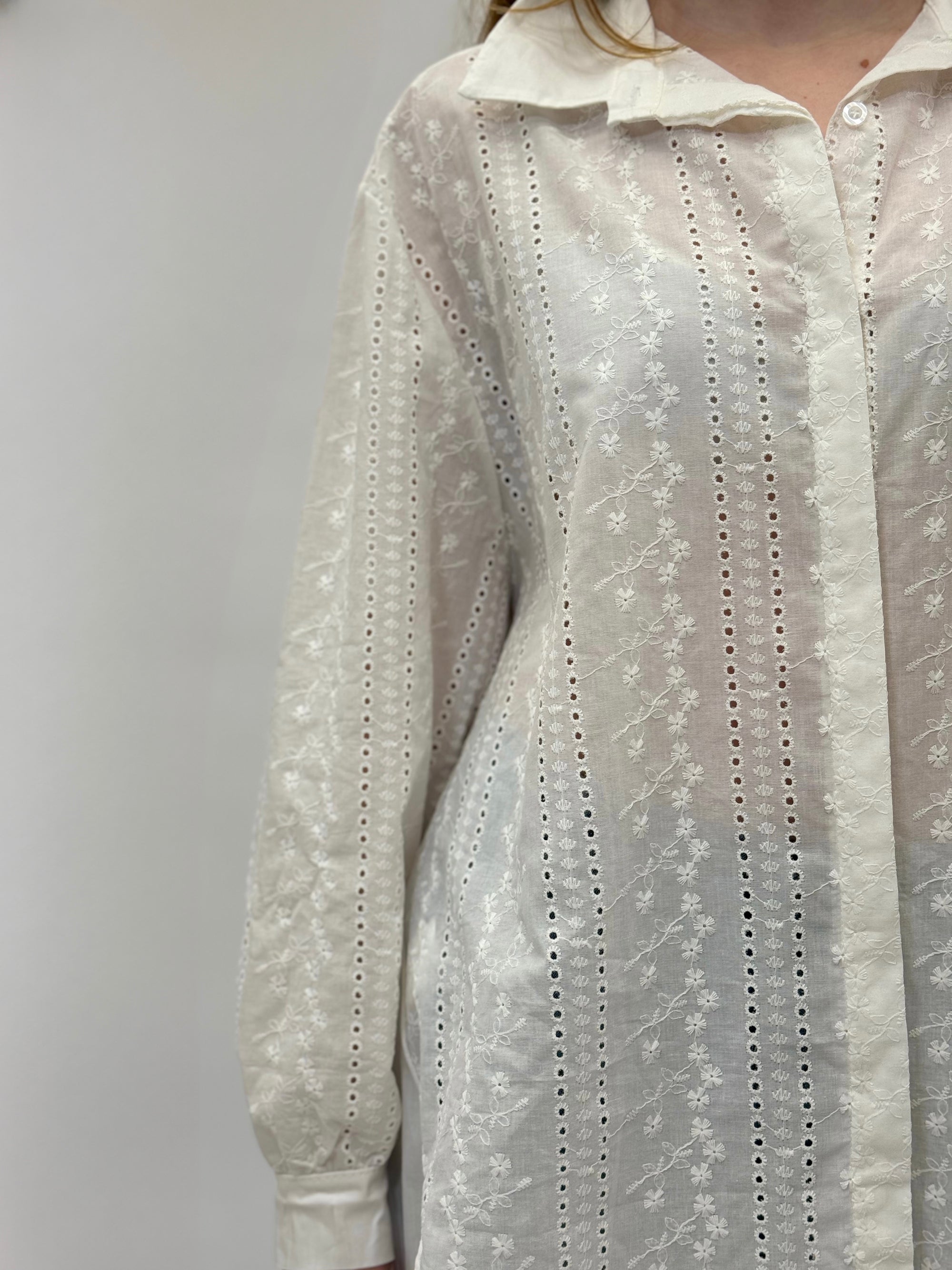 Camicia comoda in pizzo sangallo dettaglio righe