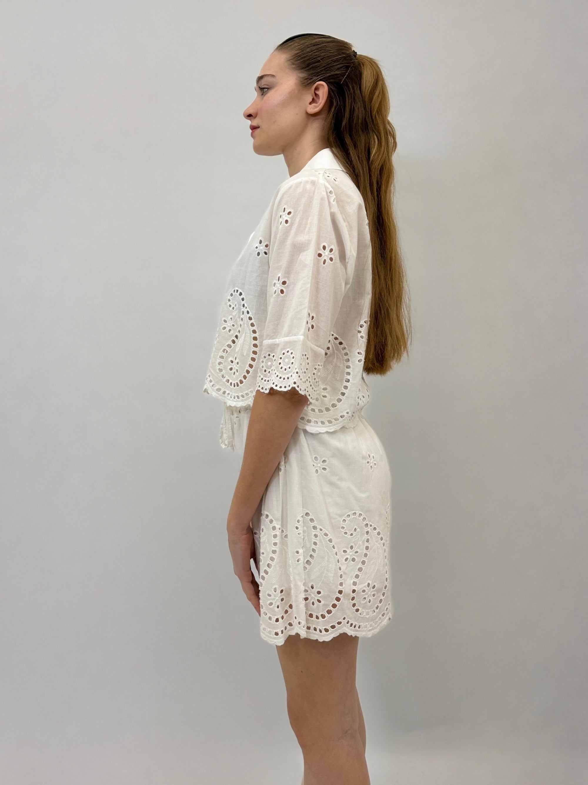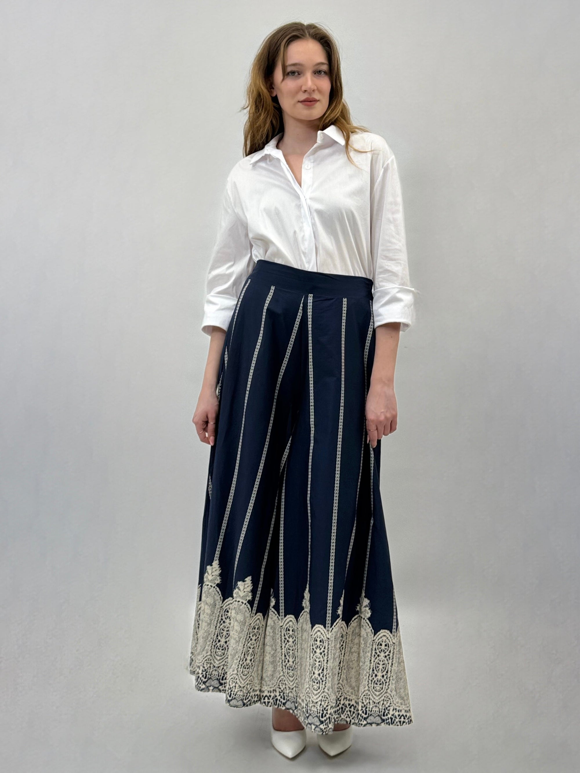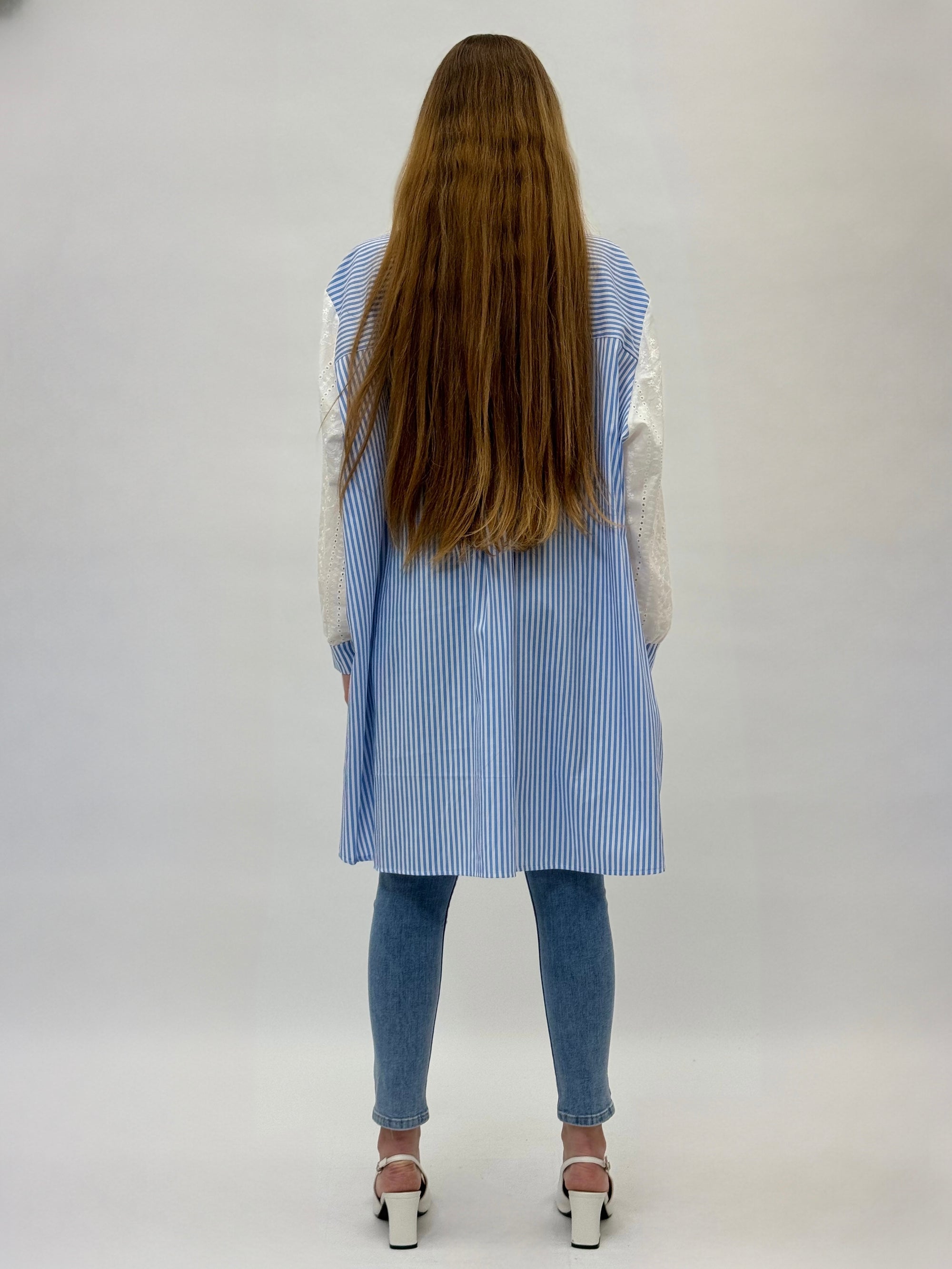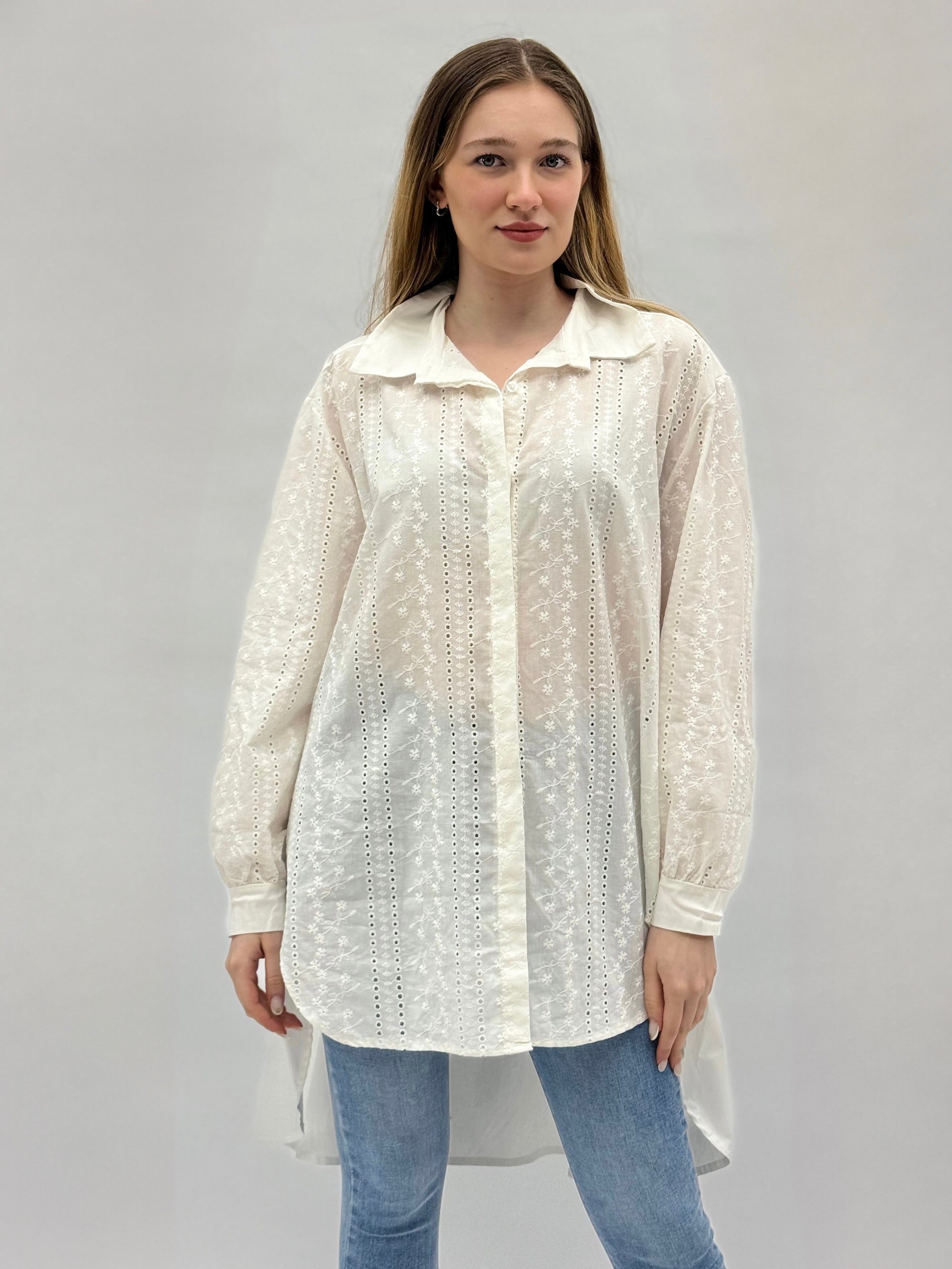 Camicia comoda in pizzo sangallo dettaglio righe