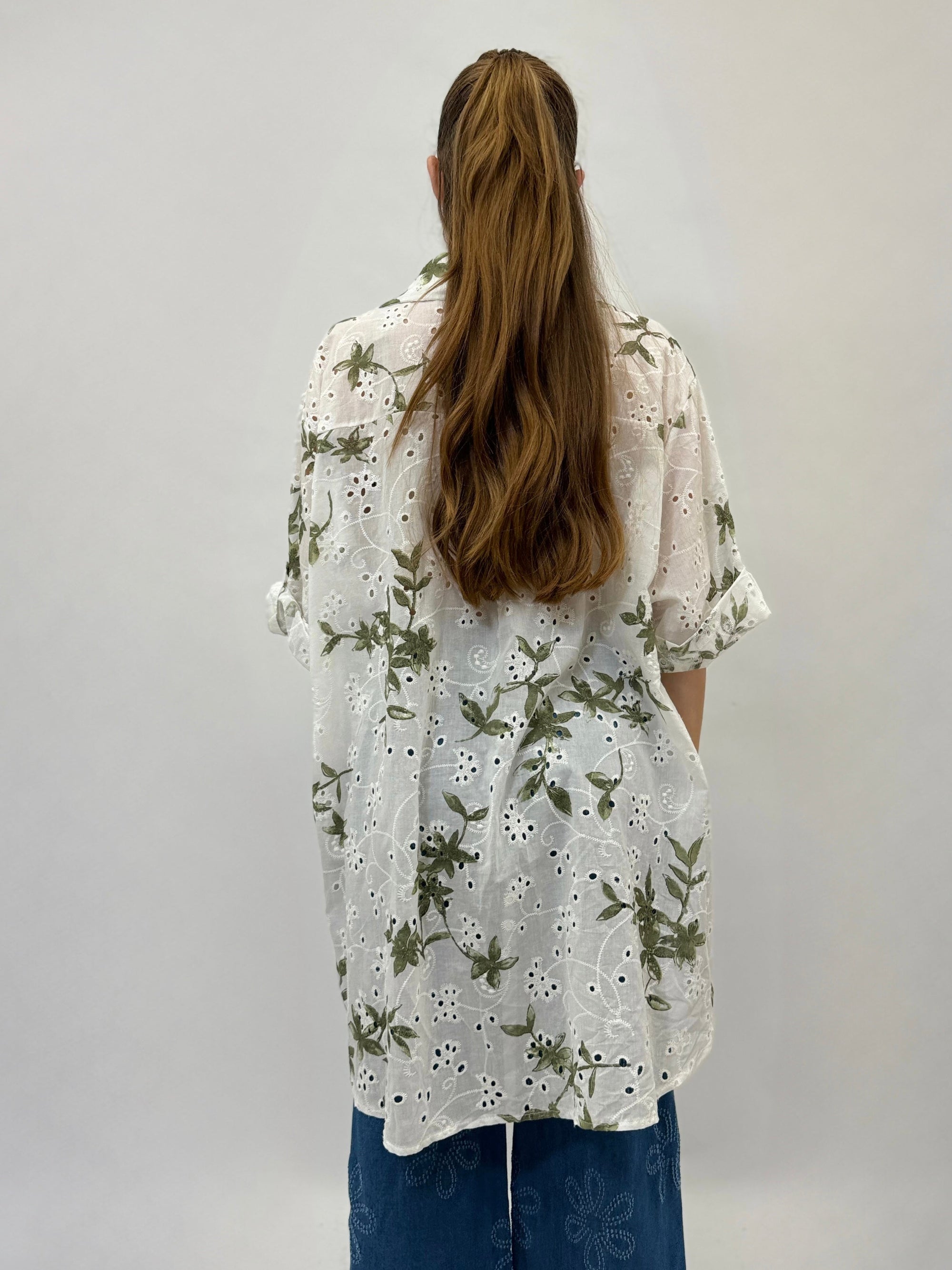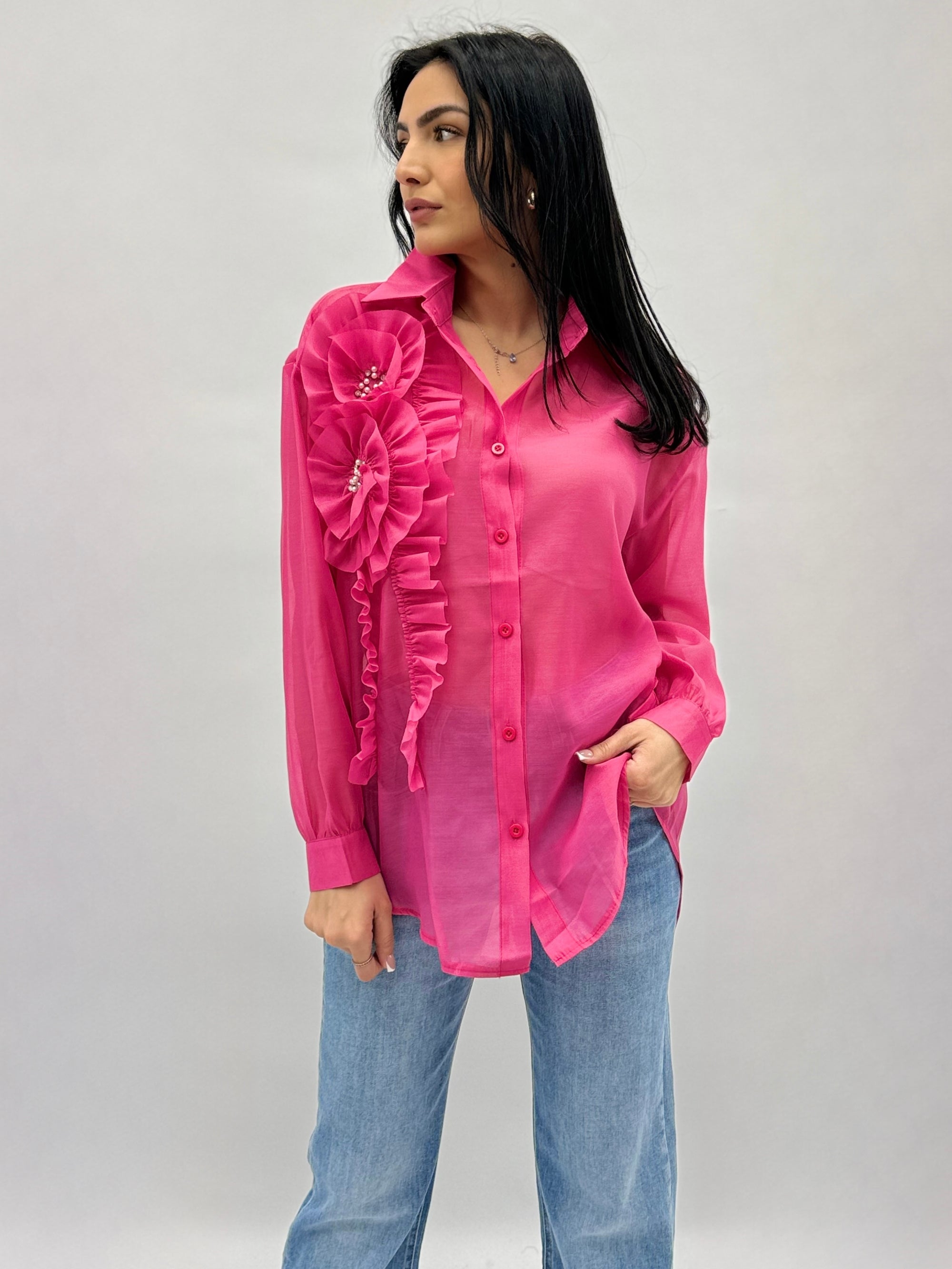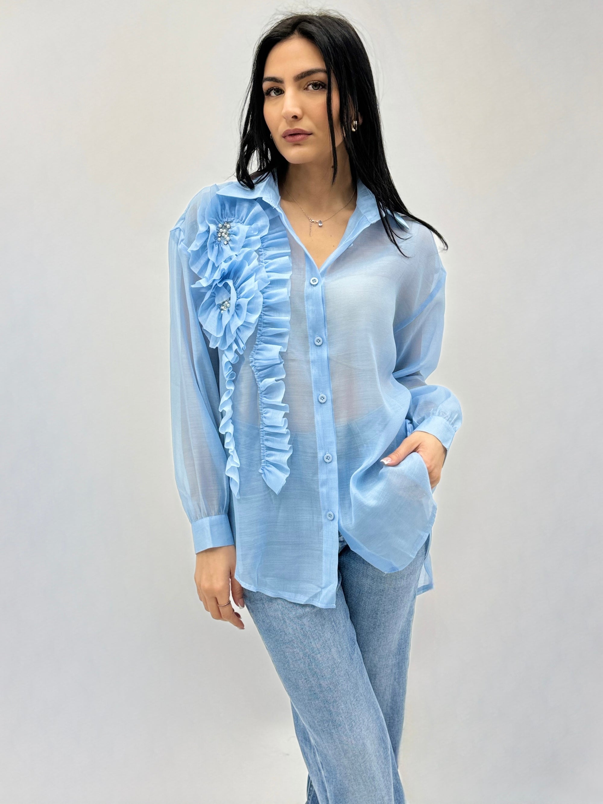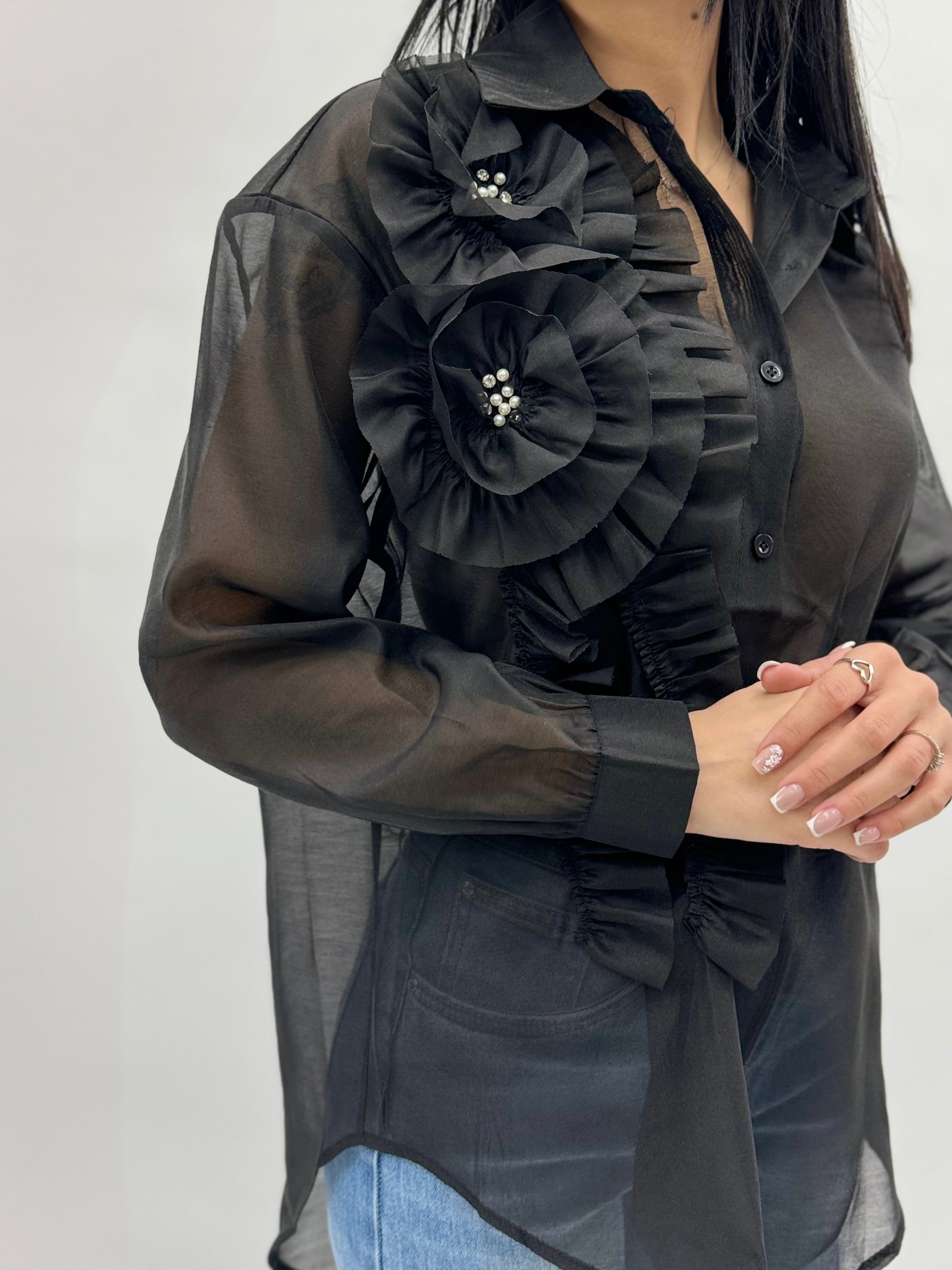Camicia in pizzo con dettaglio fiori