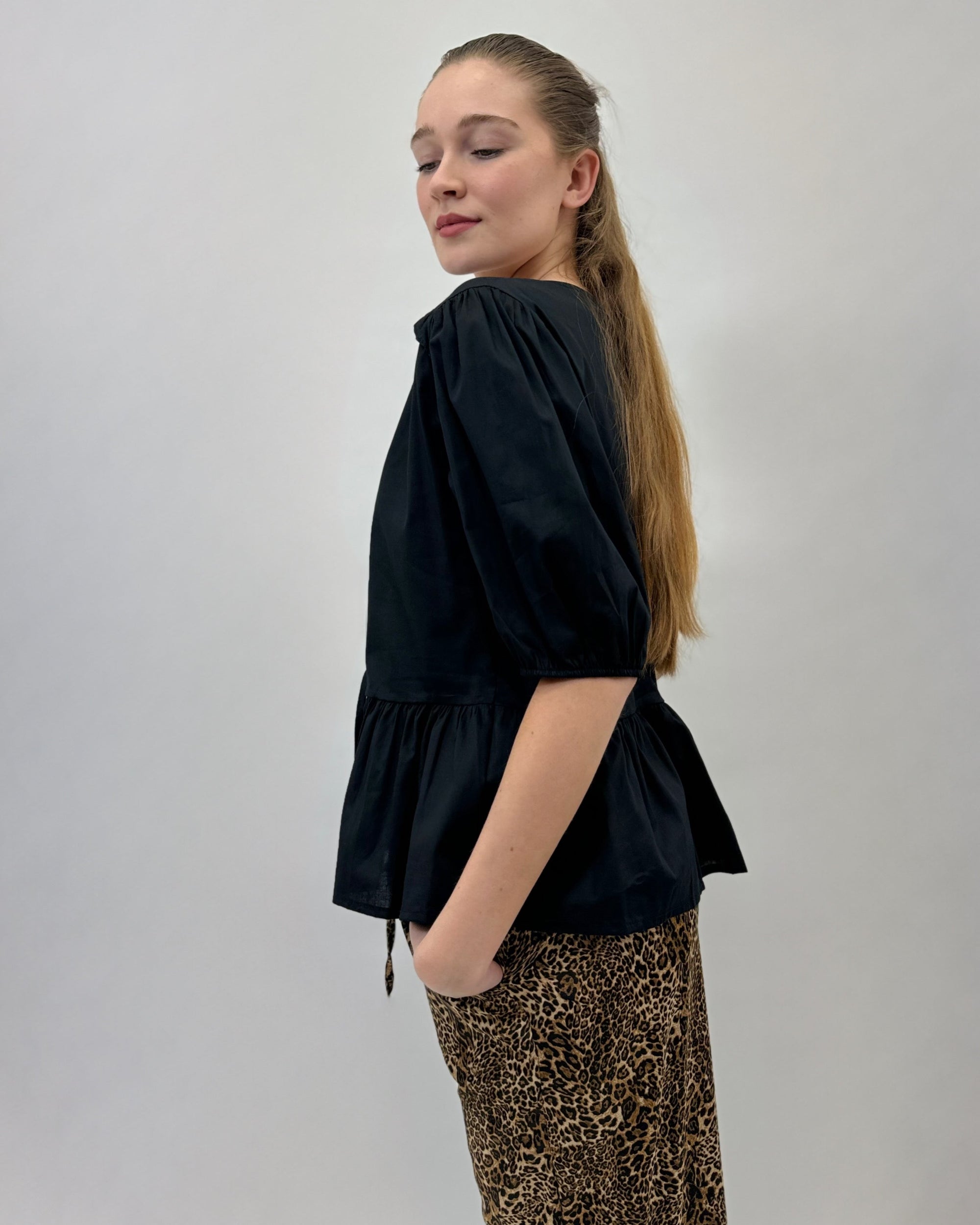 Maglia tinta unita maniche a palloncino