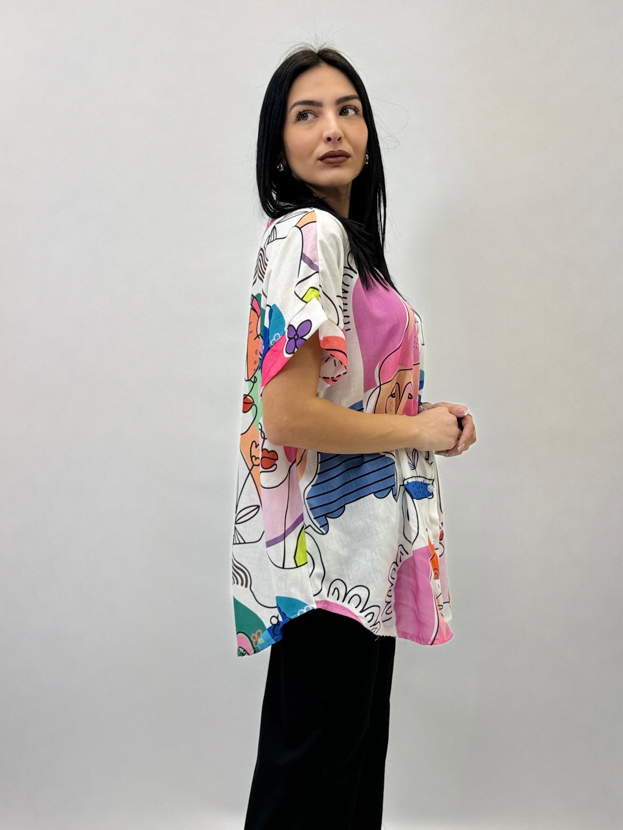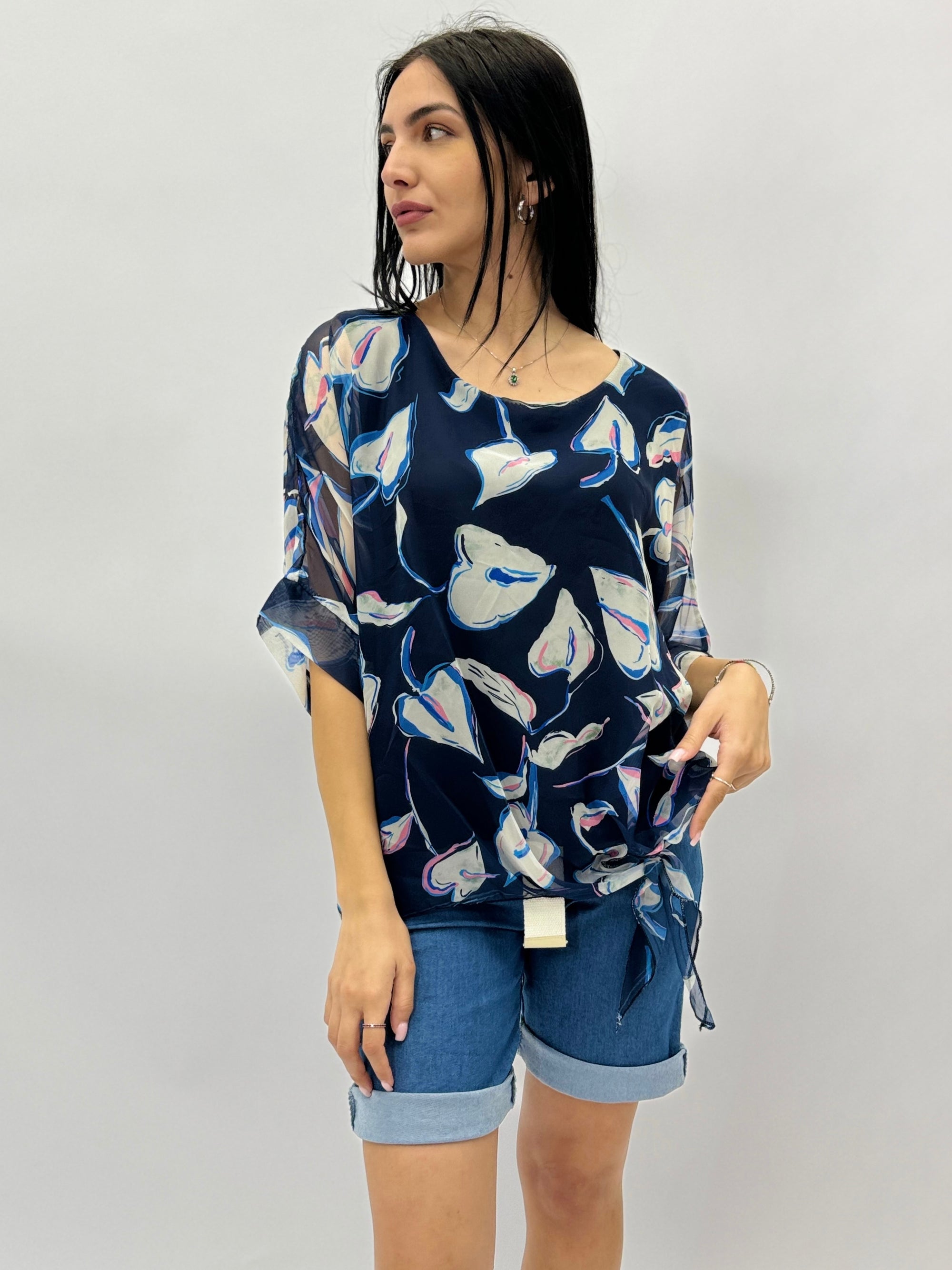 Blusa in raso con stampa
