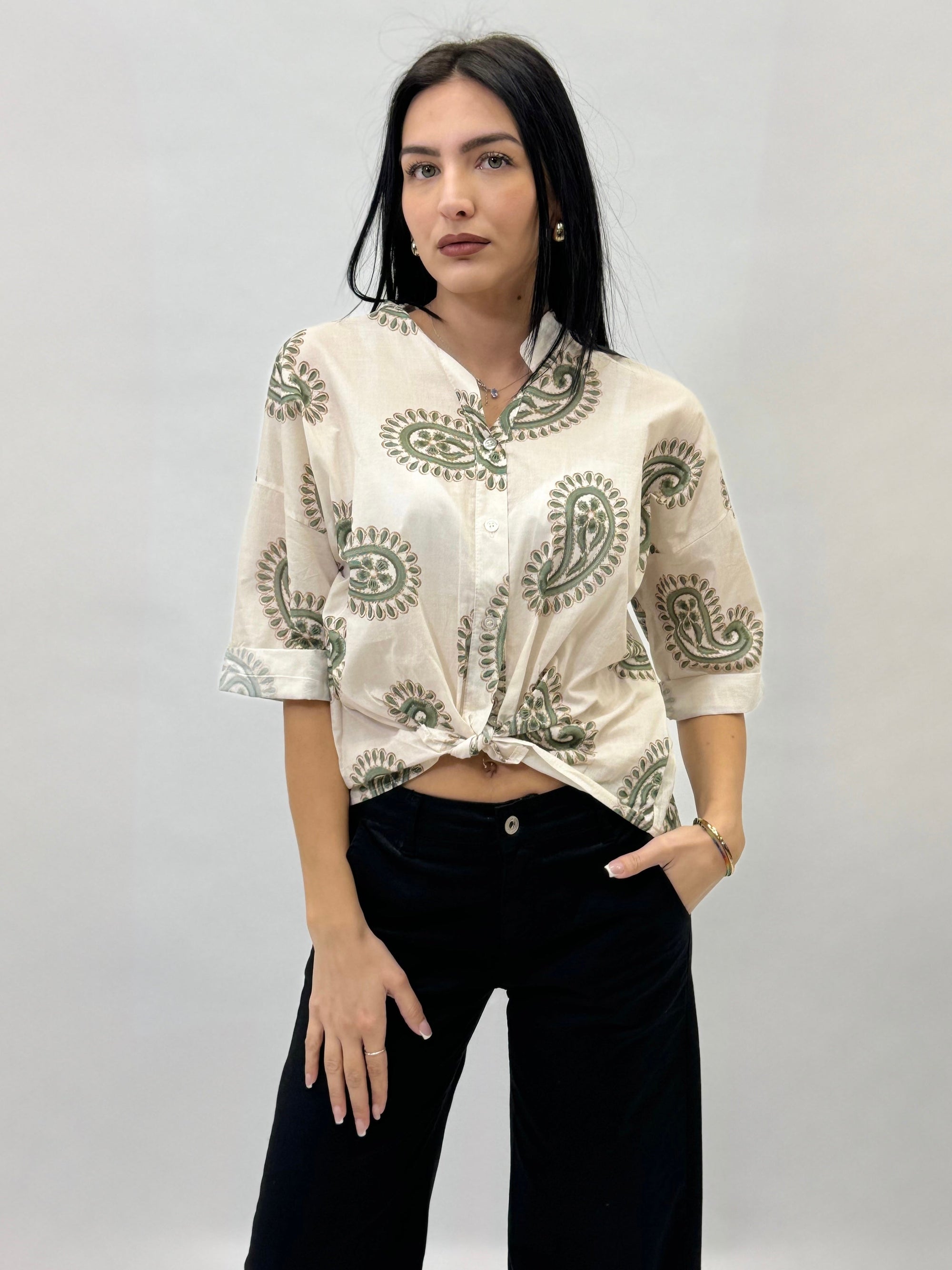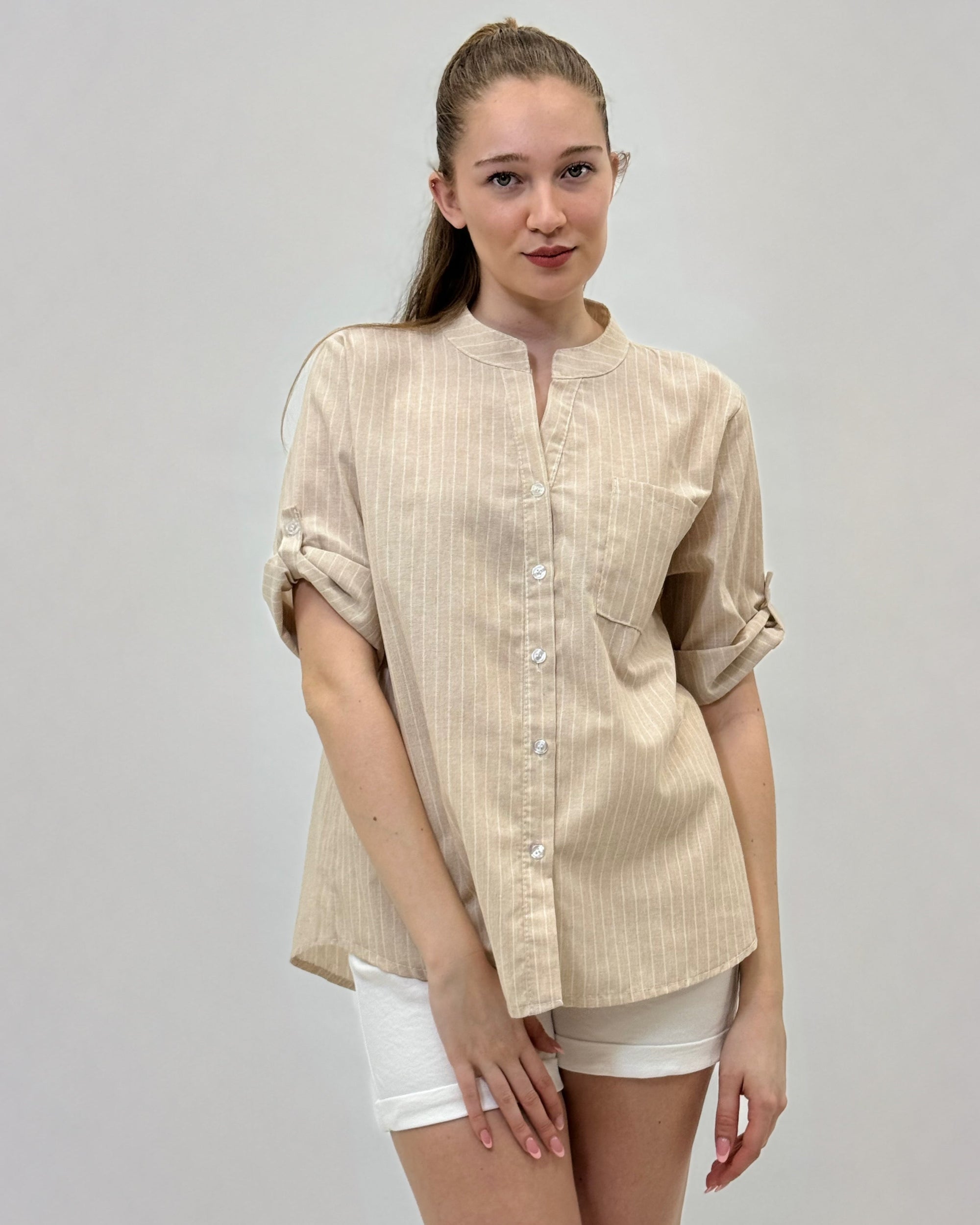 Camicia leggera con scollo alla coreana