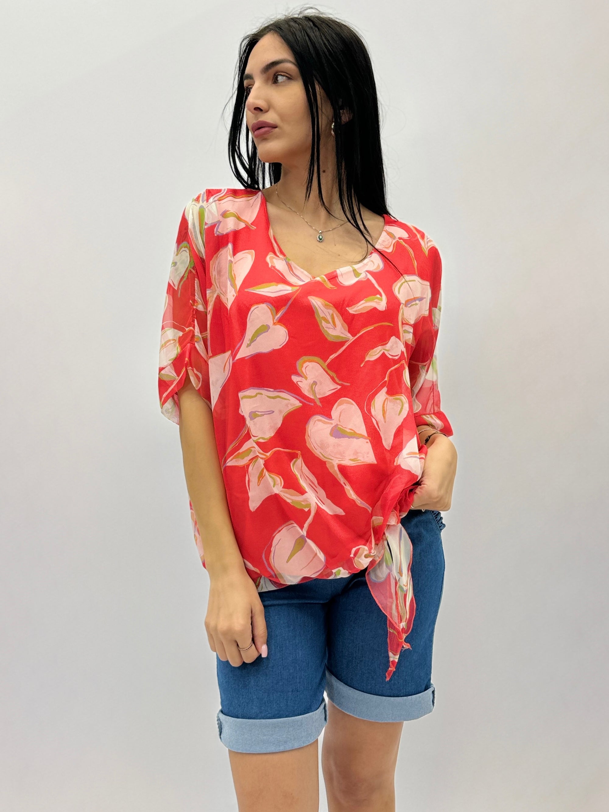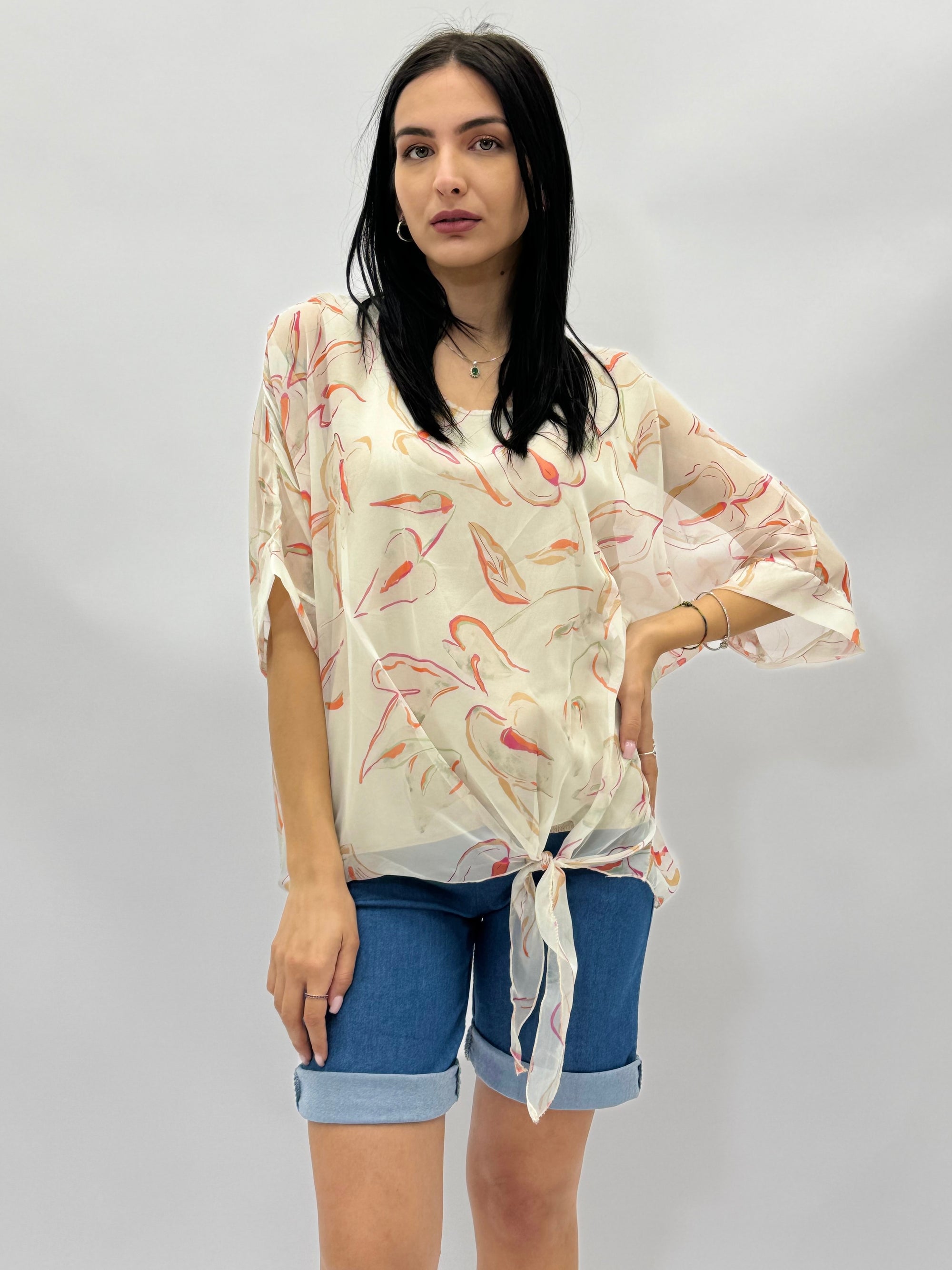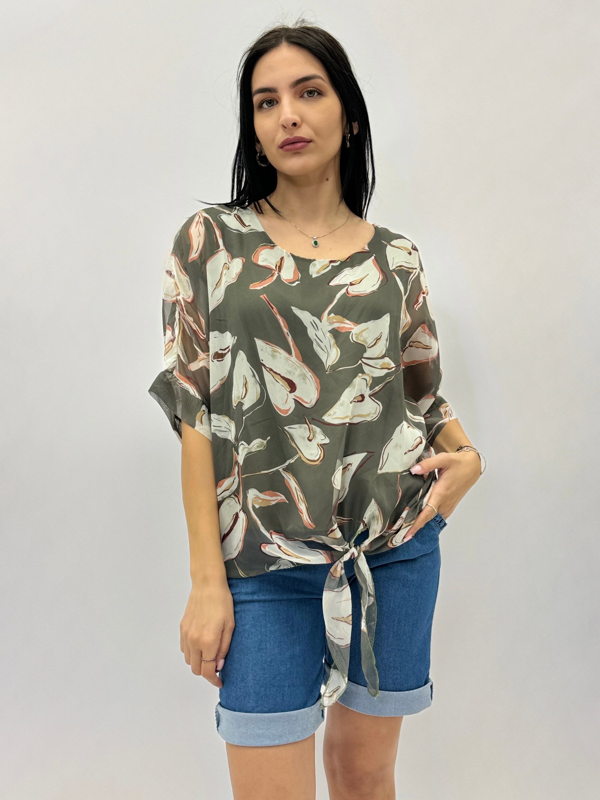 Camicia in seta con dettaglio fiori