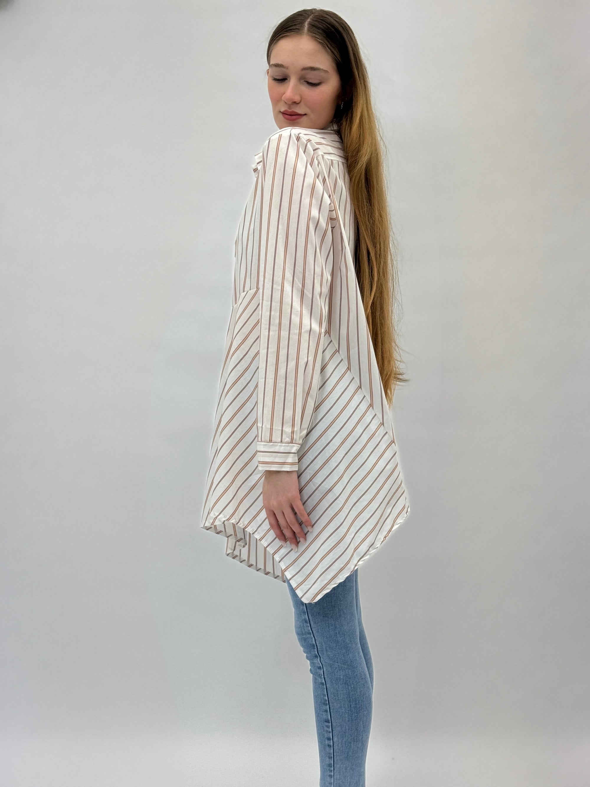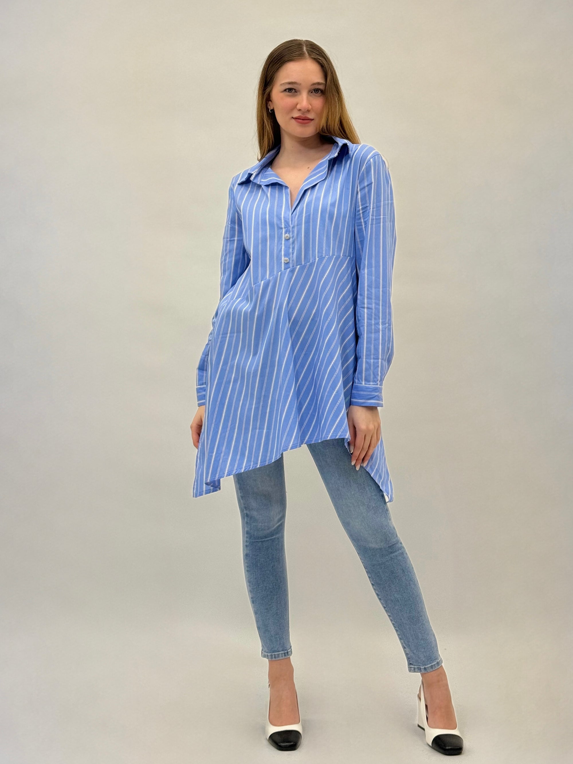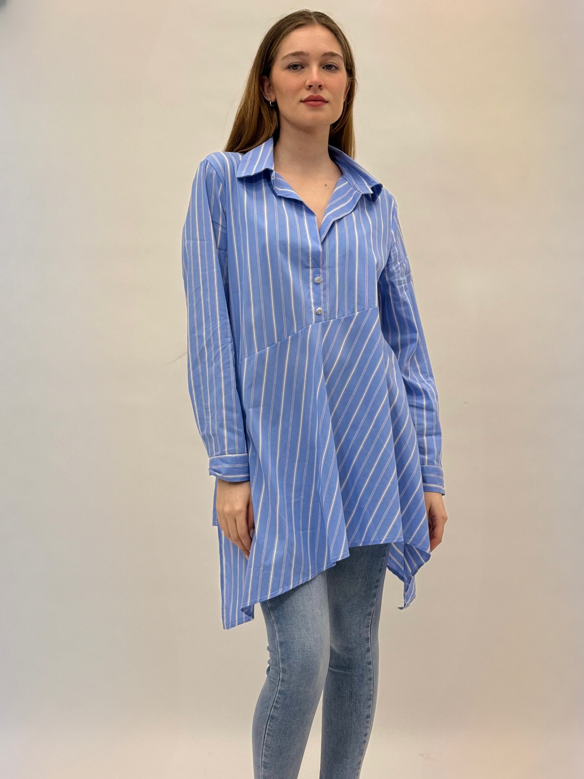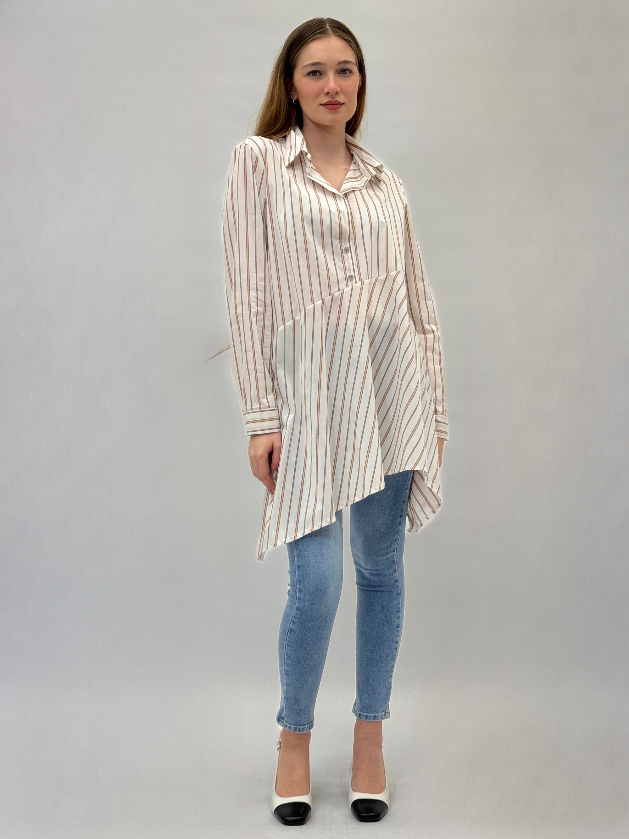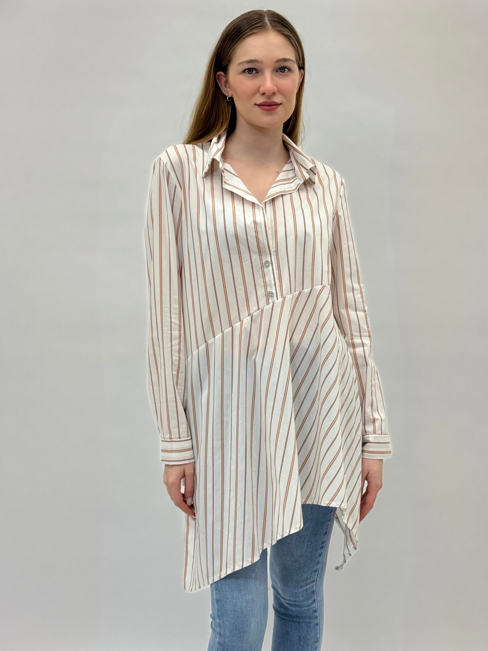 Camicia a righe con fondo asimmetrico
