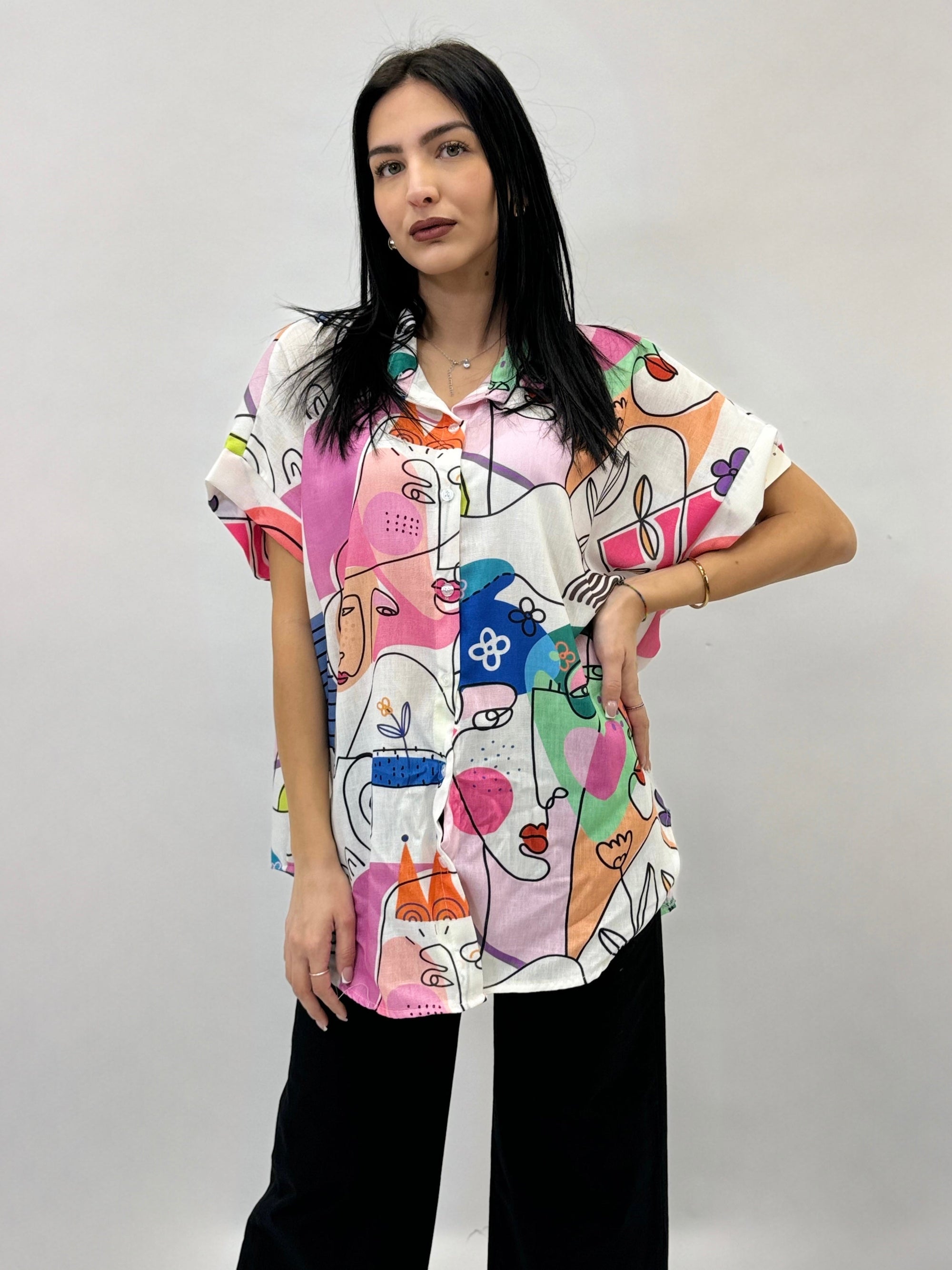 Camicia mezze maniche con fantasia