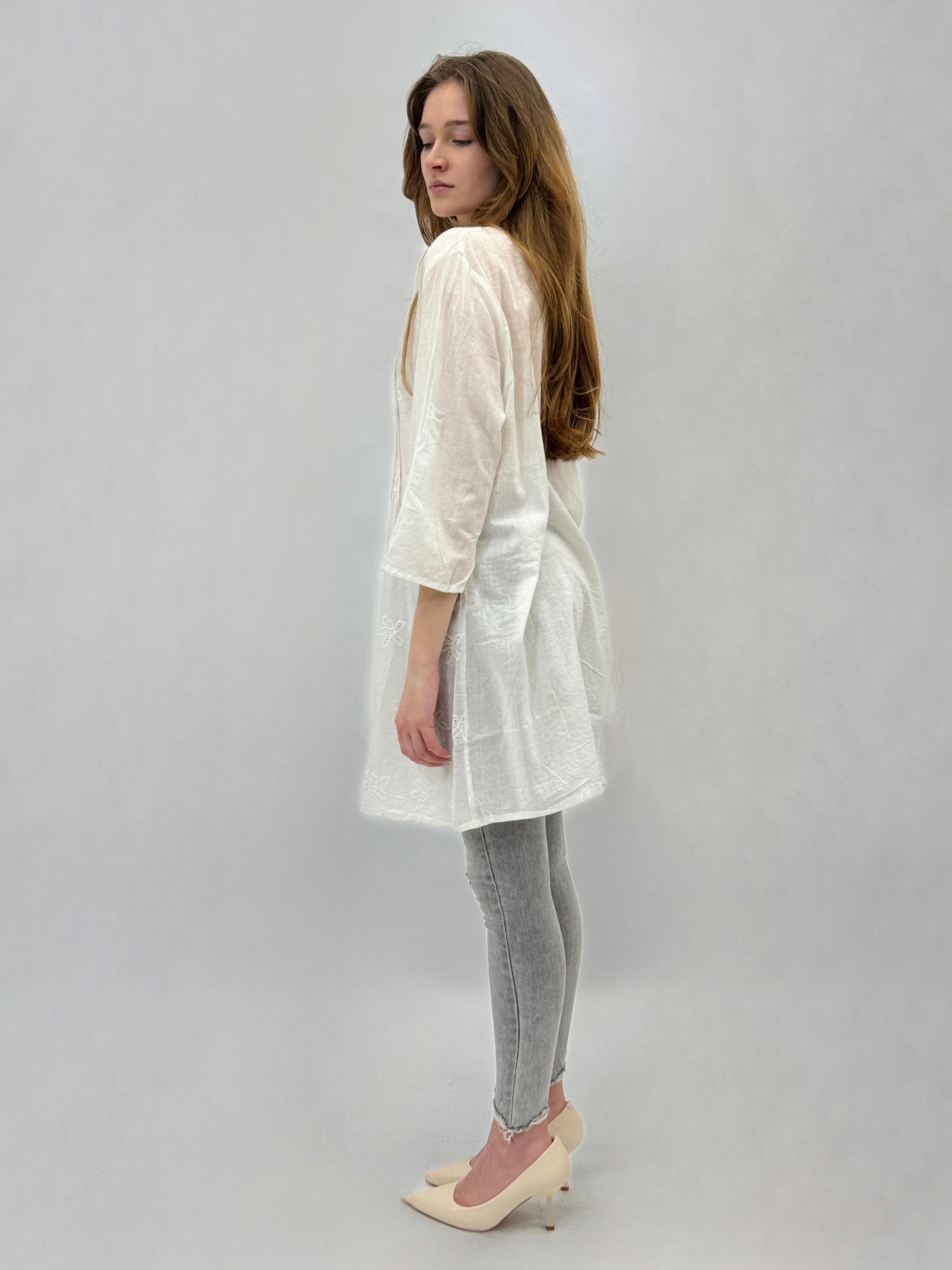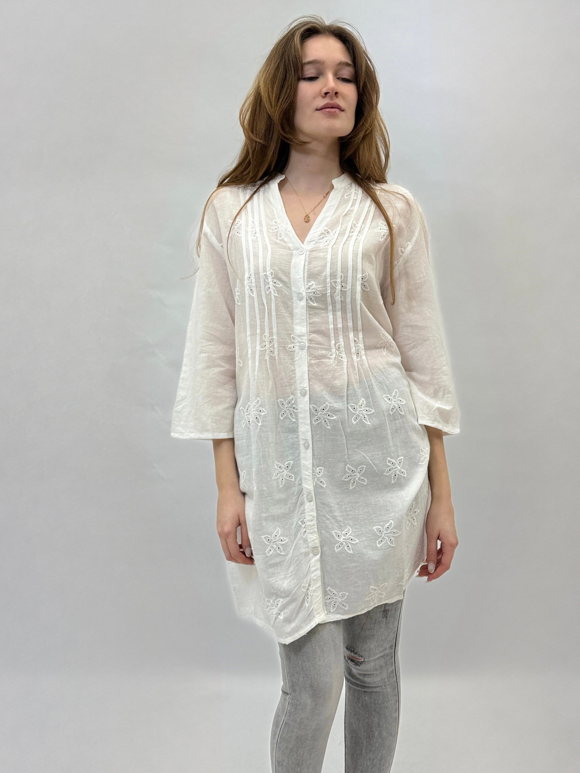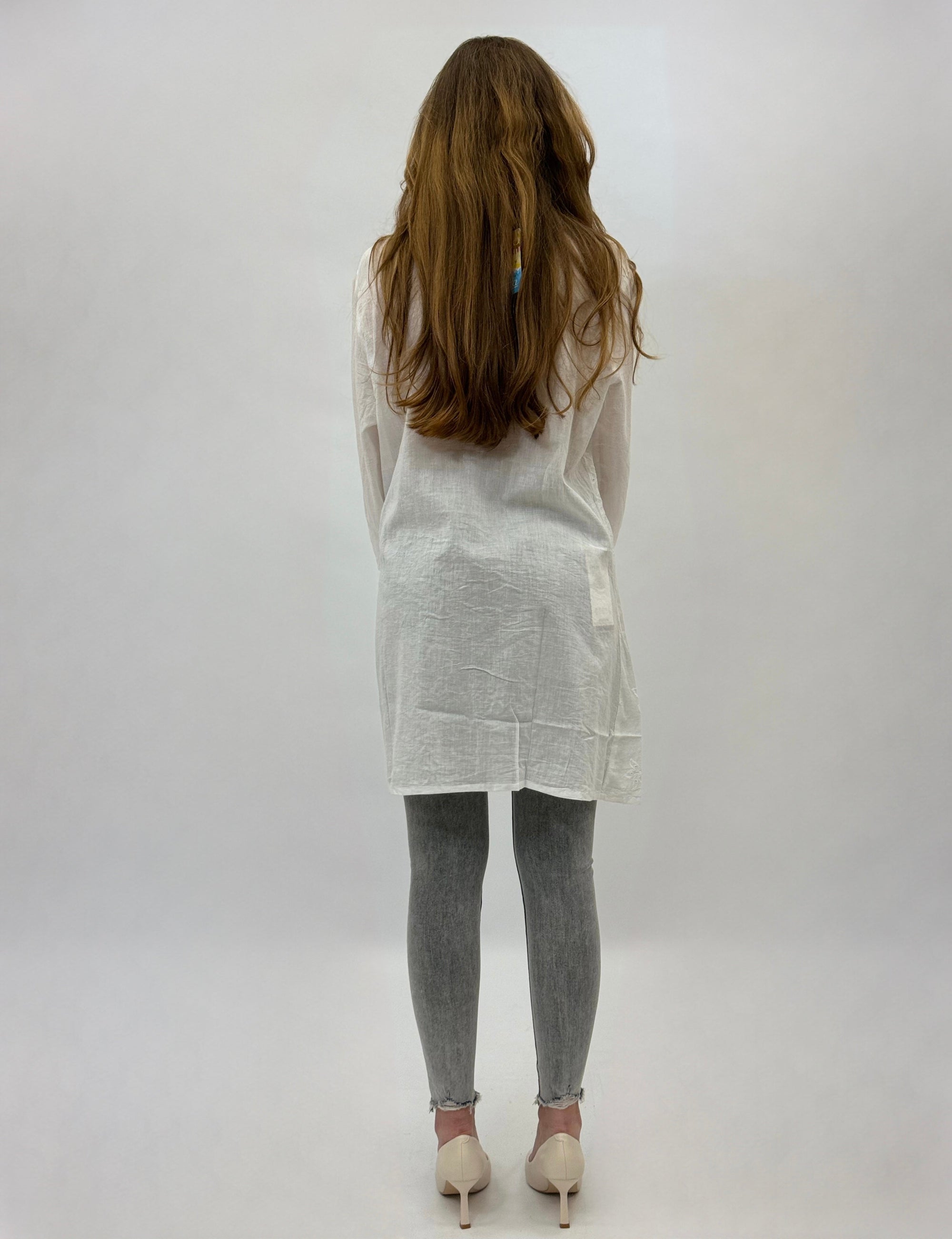 Camicia lunga in cotone con scollo coreana