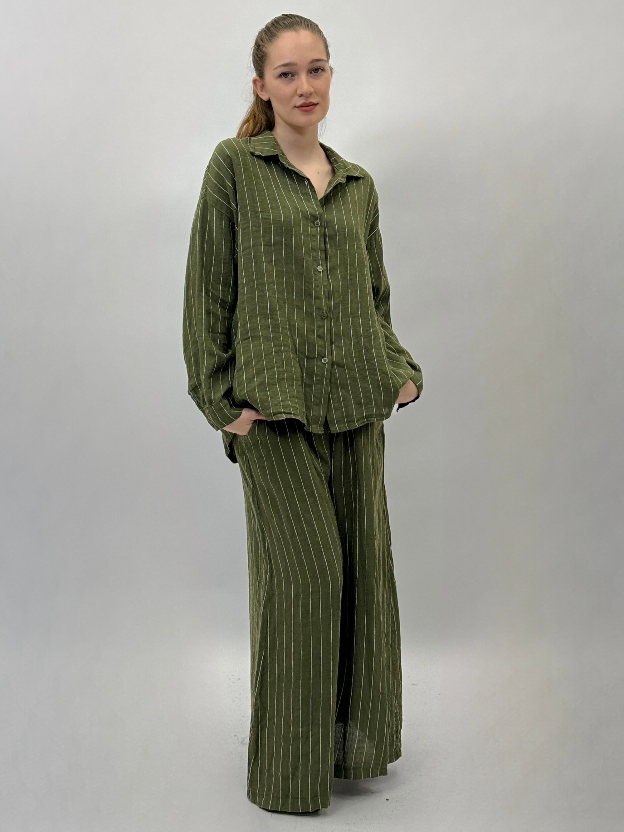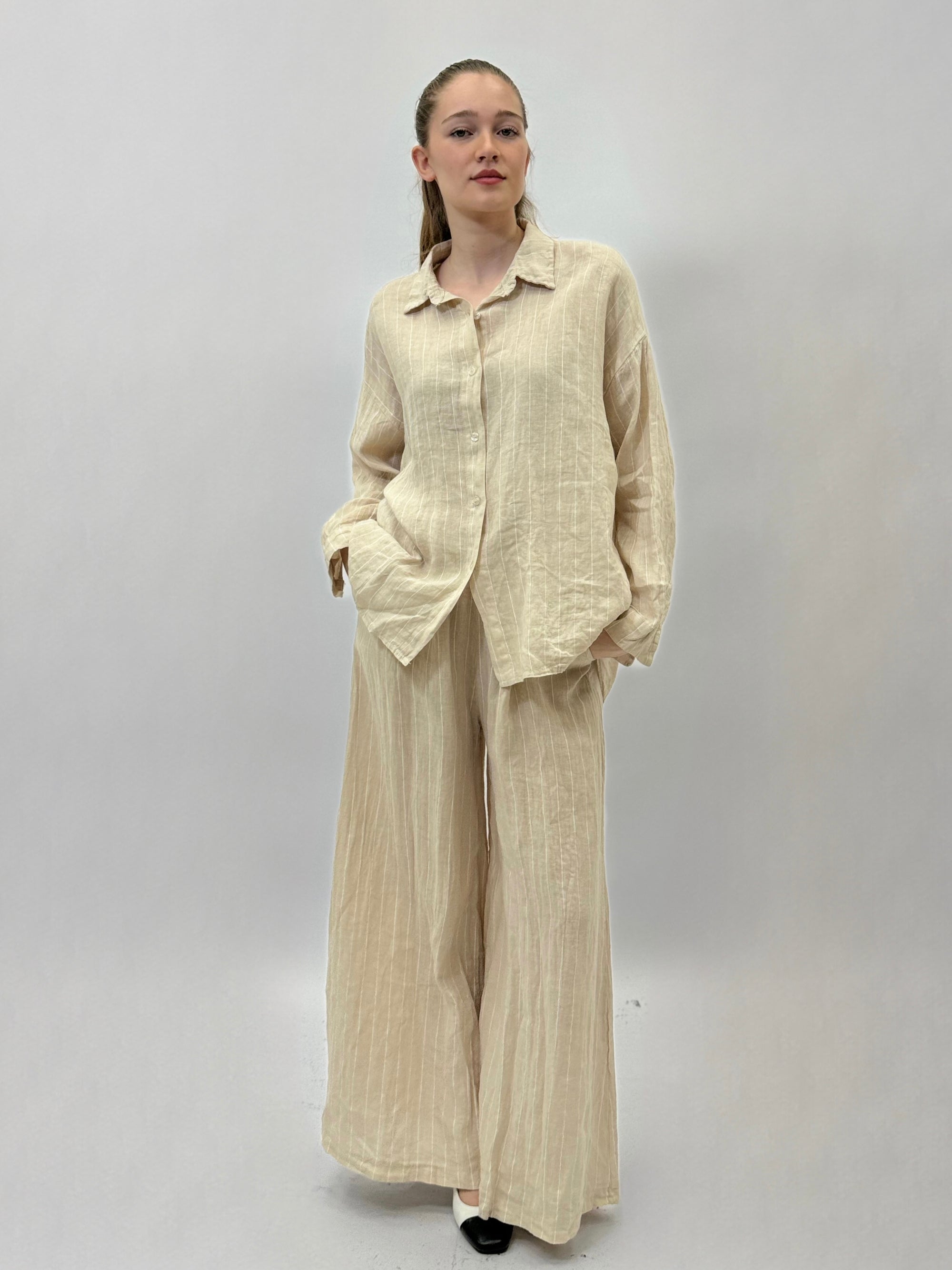 Camicia a righe in lino lunga premium