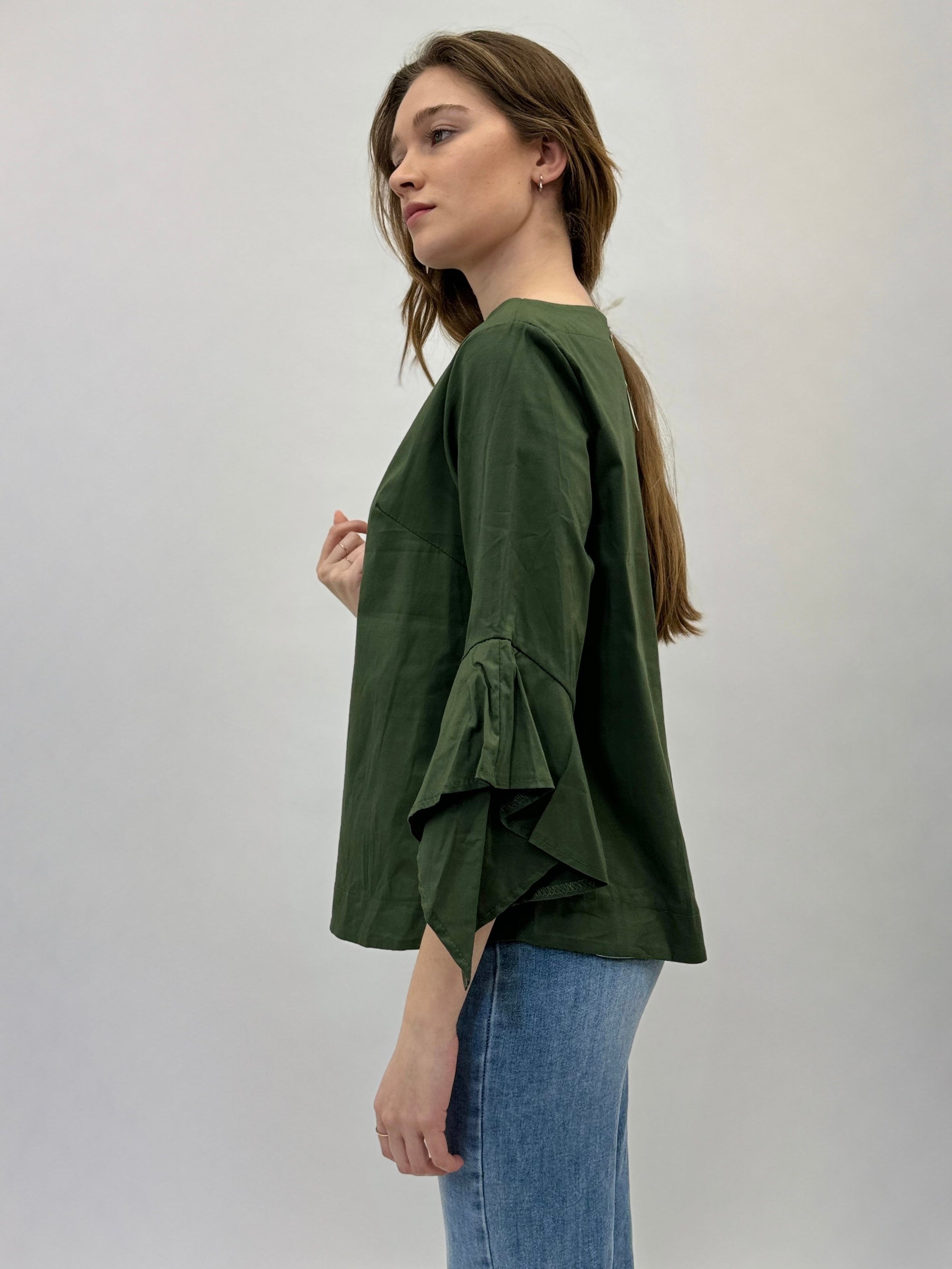 Maglia in lino maniche volant