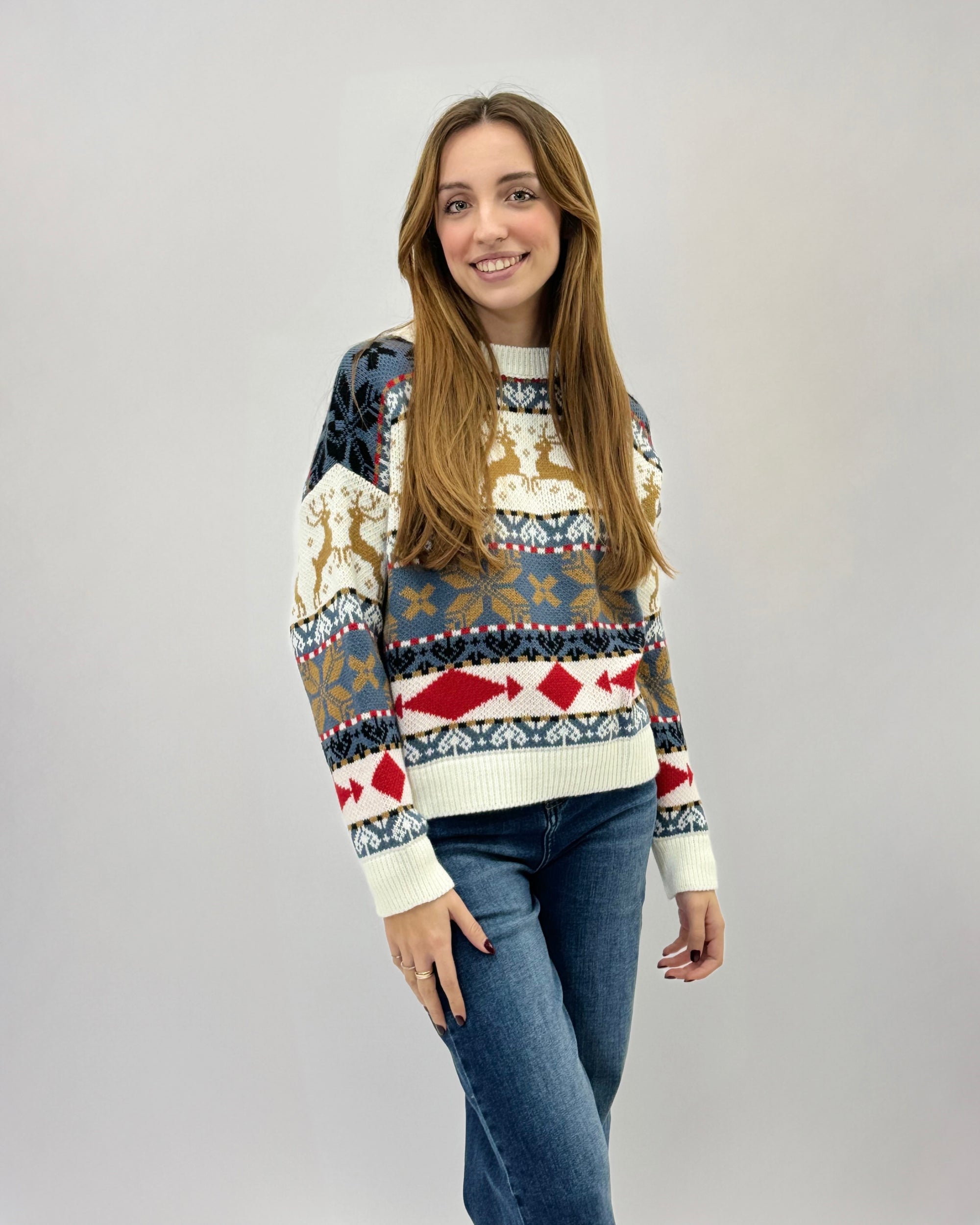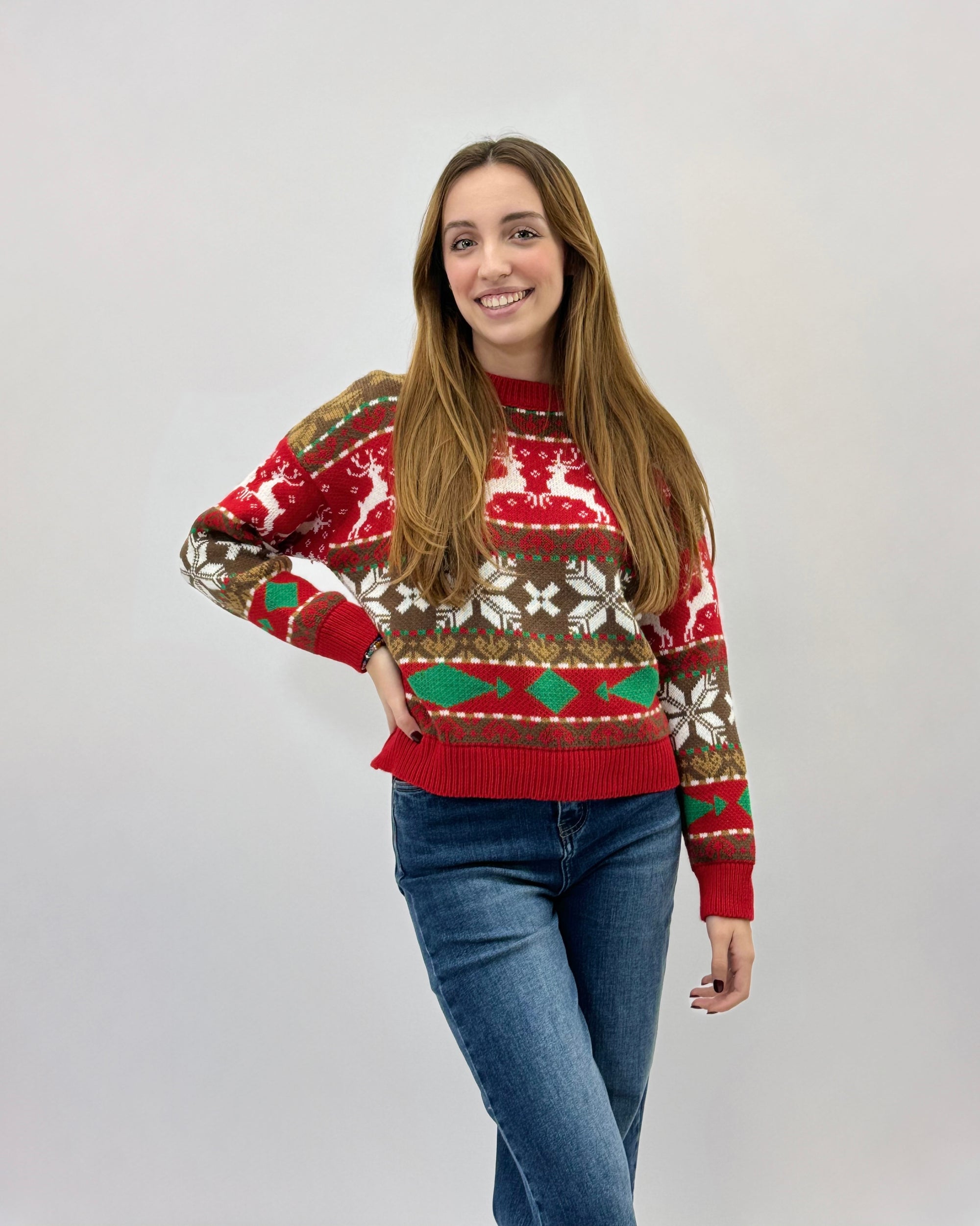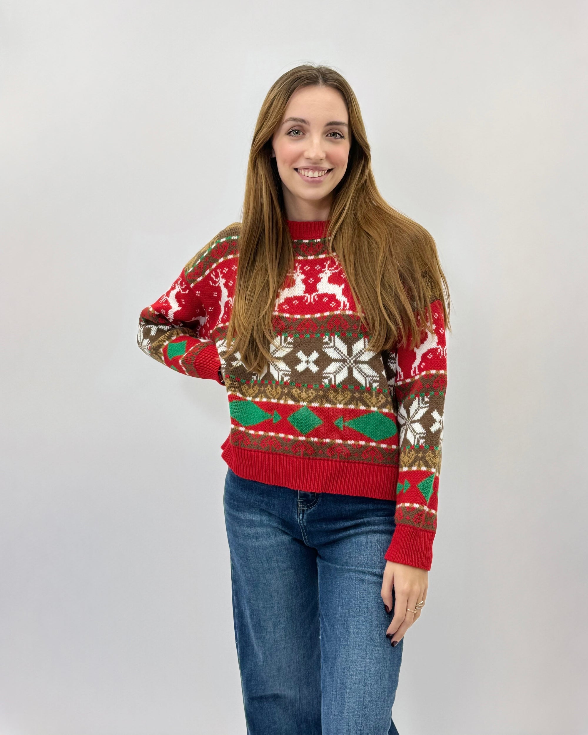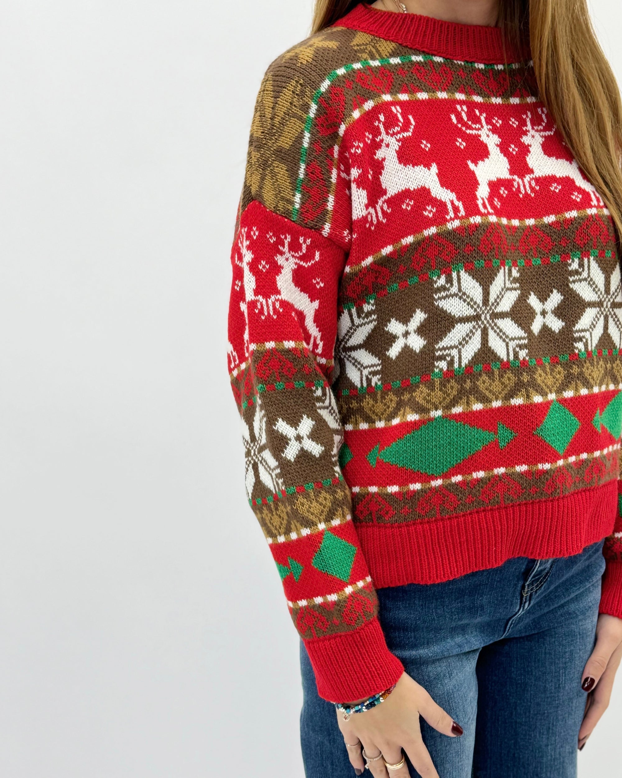 Maglione natalizio con renne e fiocchi di neve