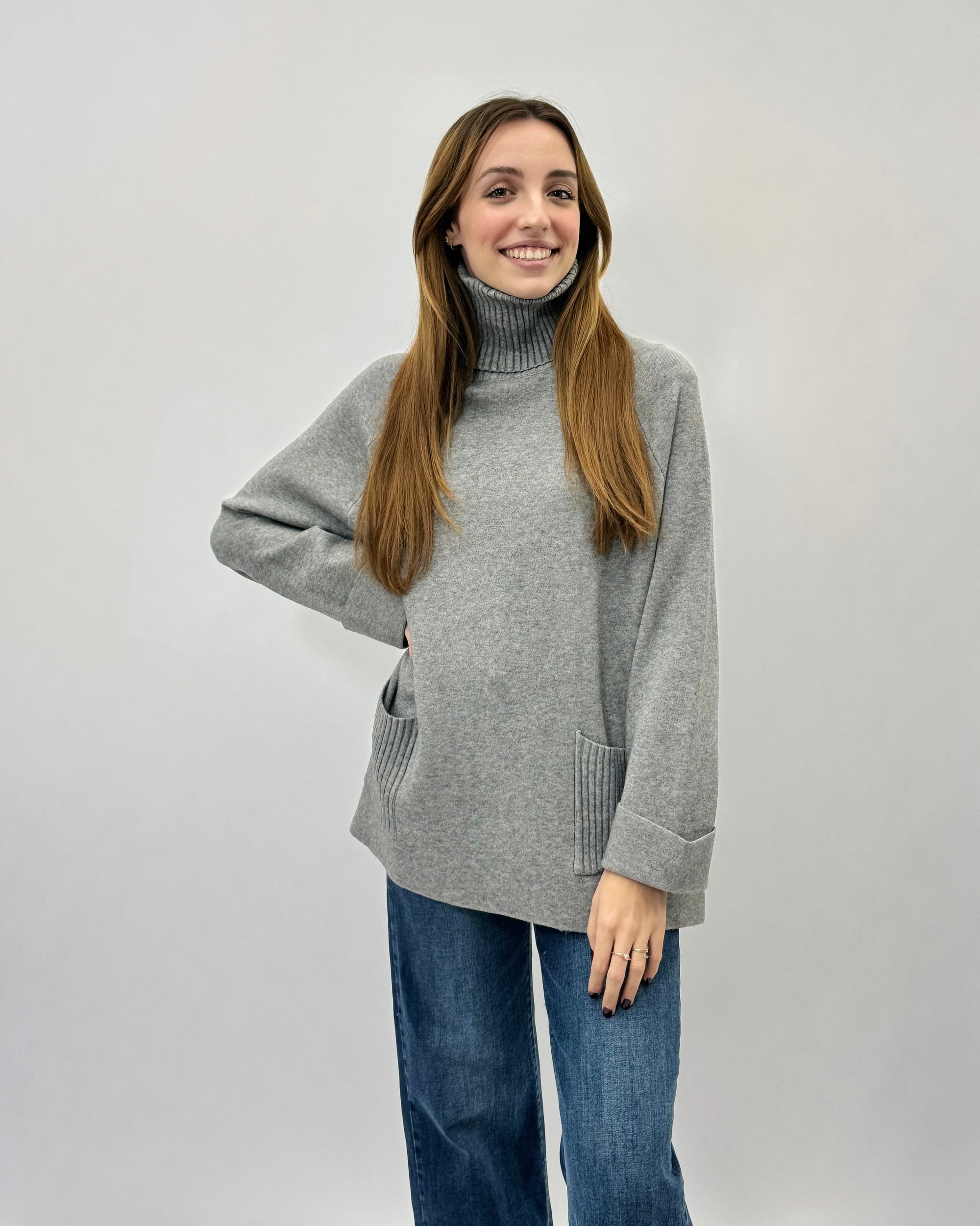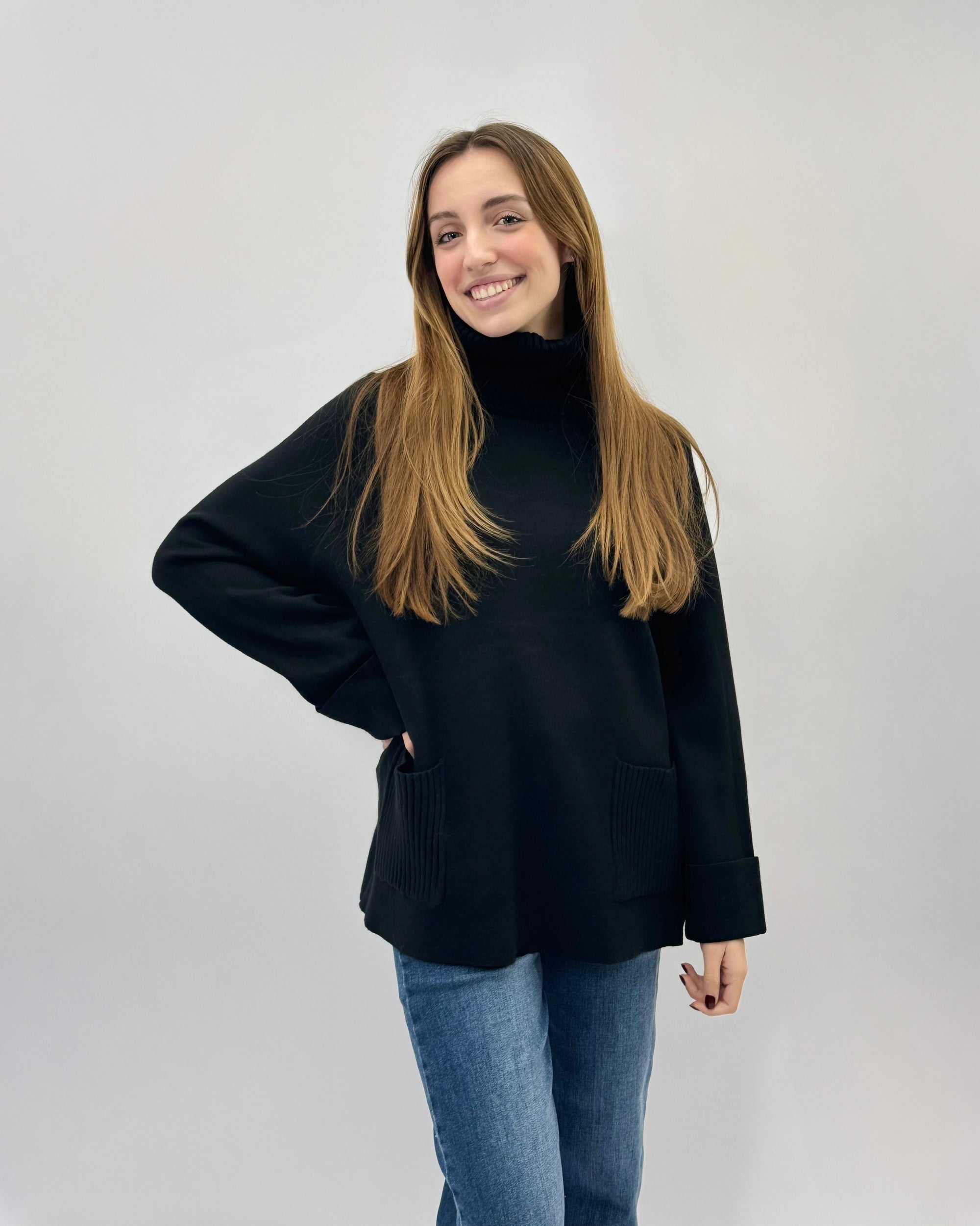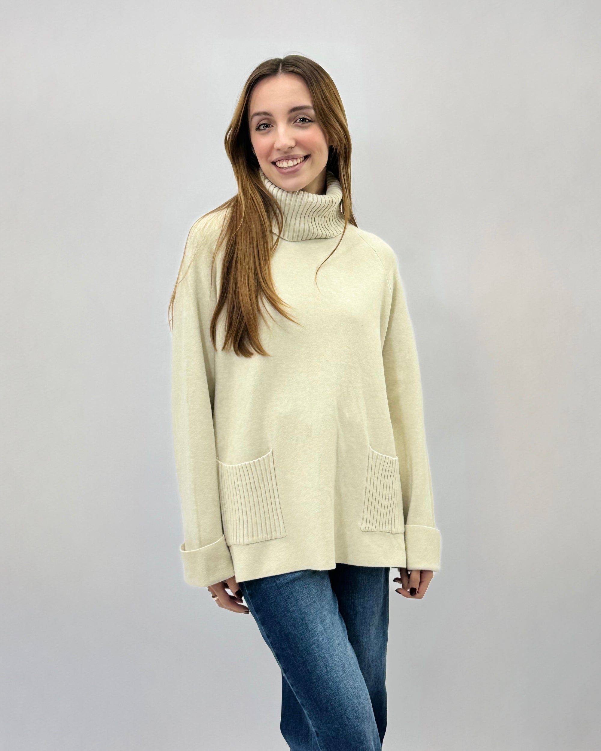 Maglione dolcevita ampio con tasche