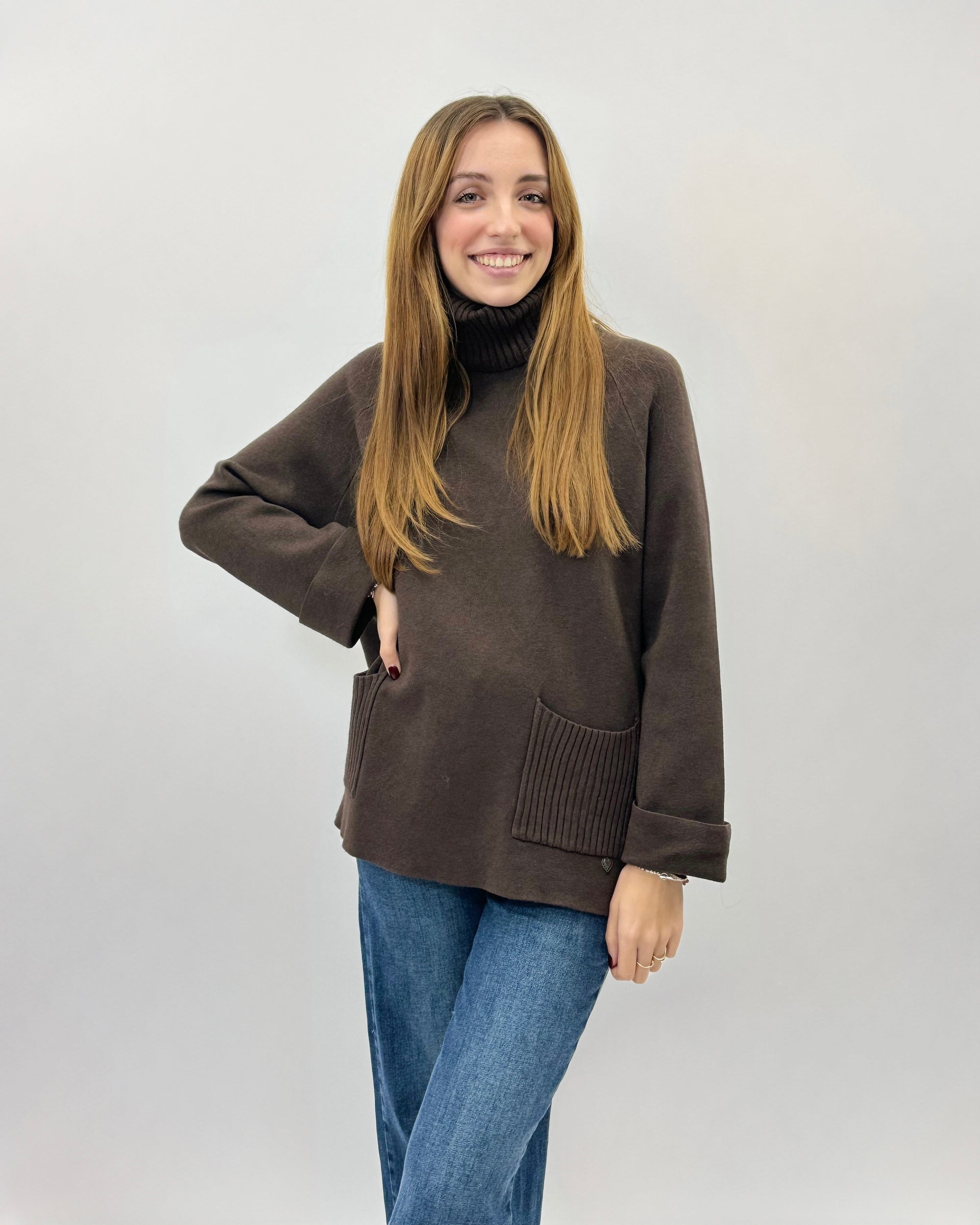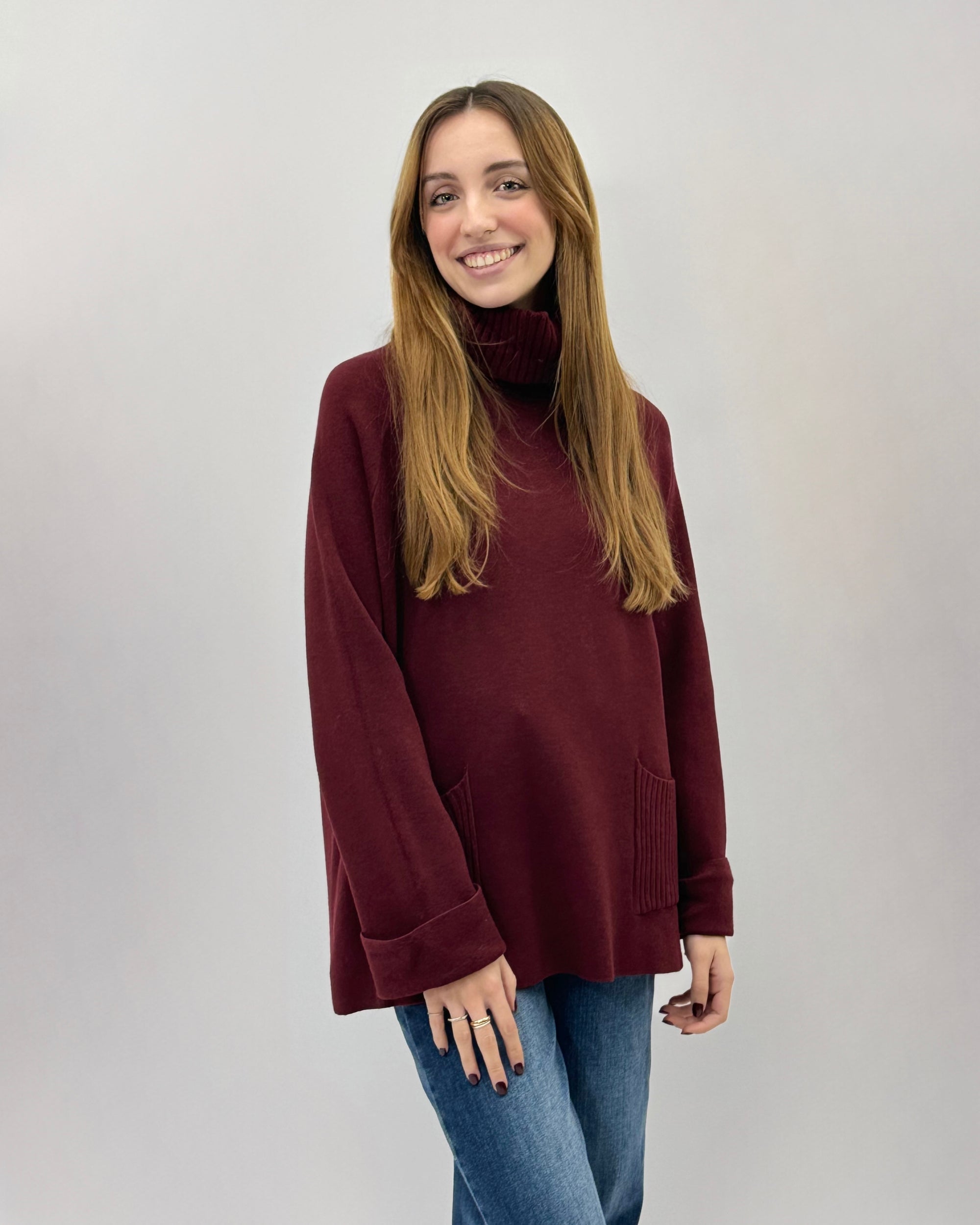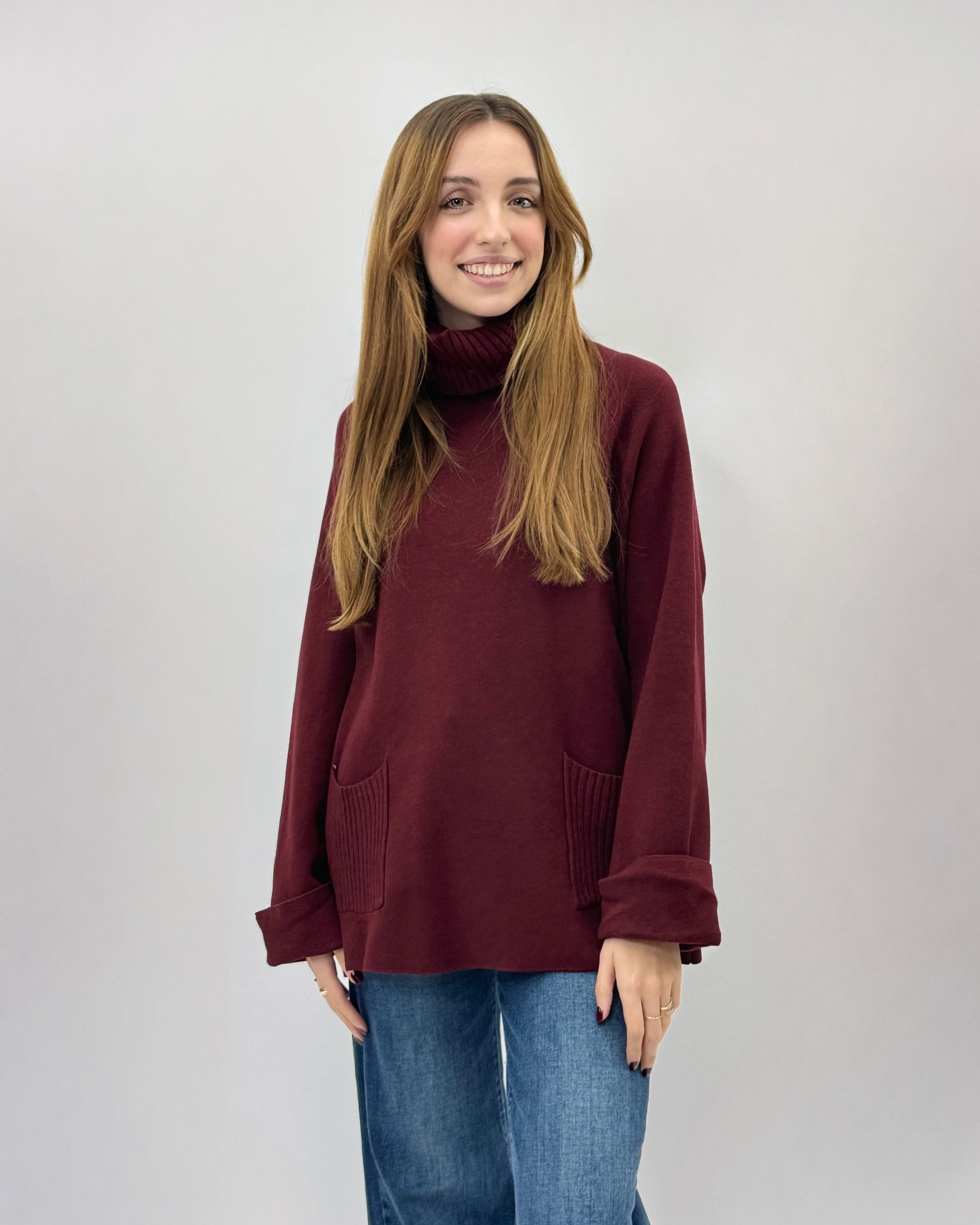 Maglione dolcevita ampio con tasche