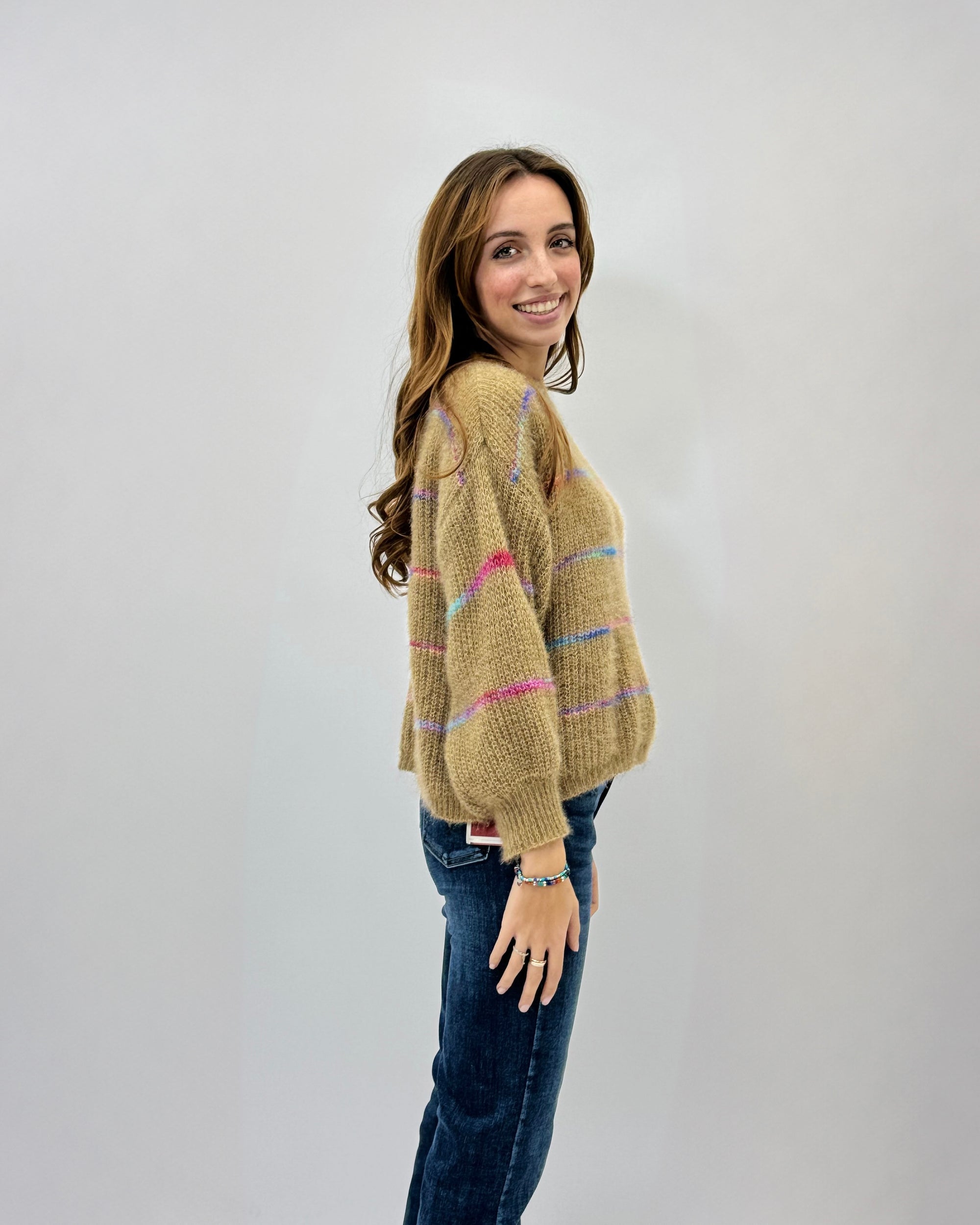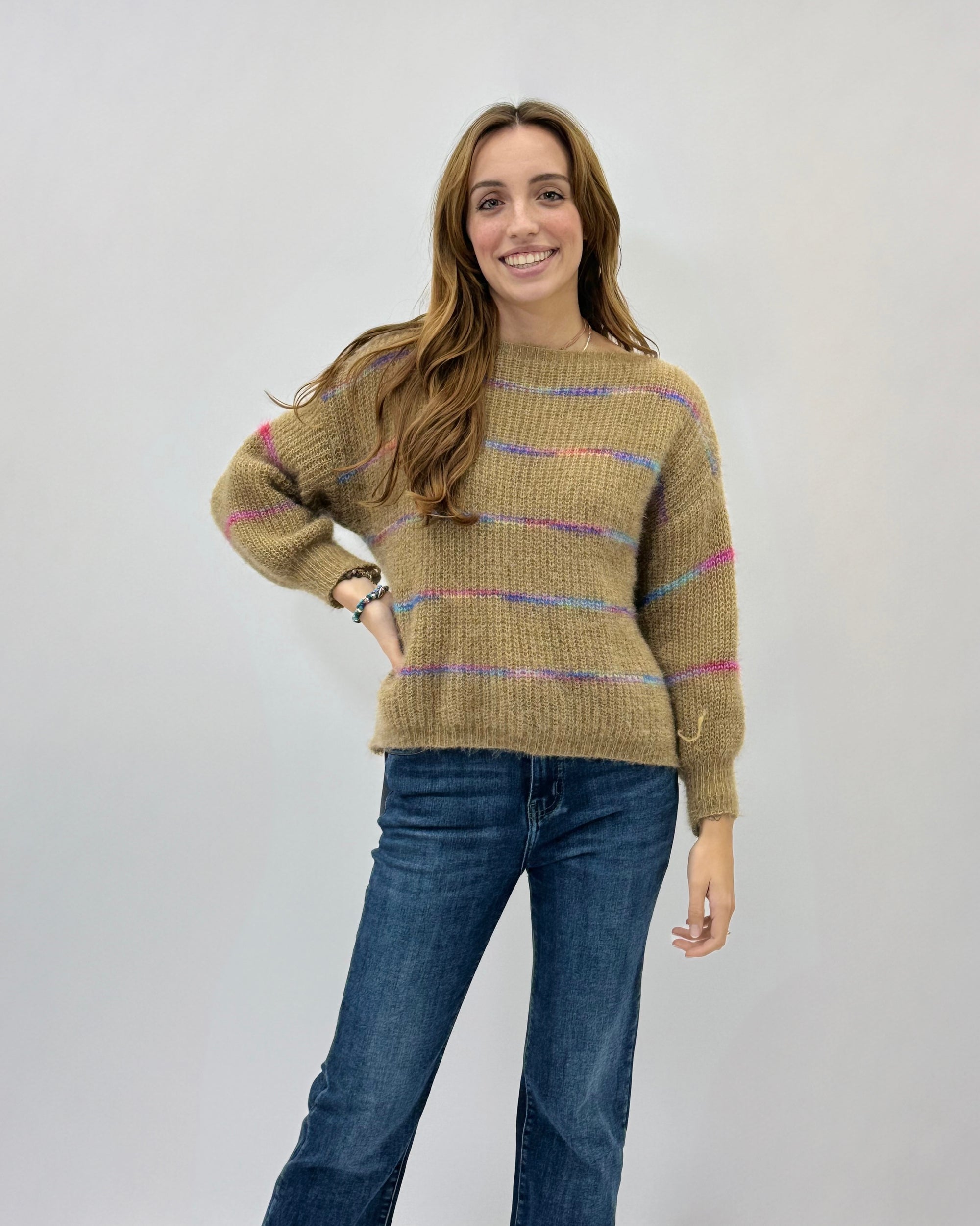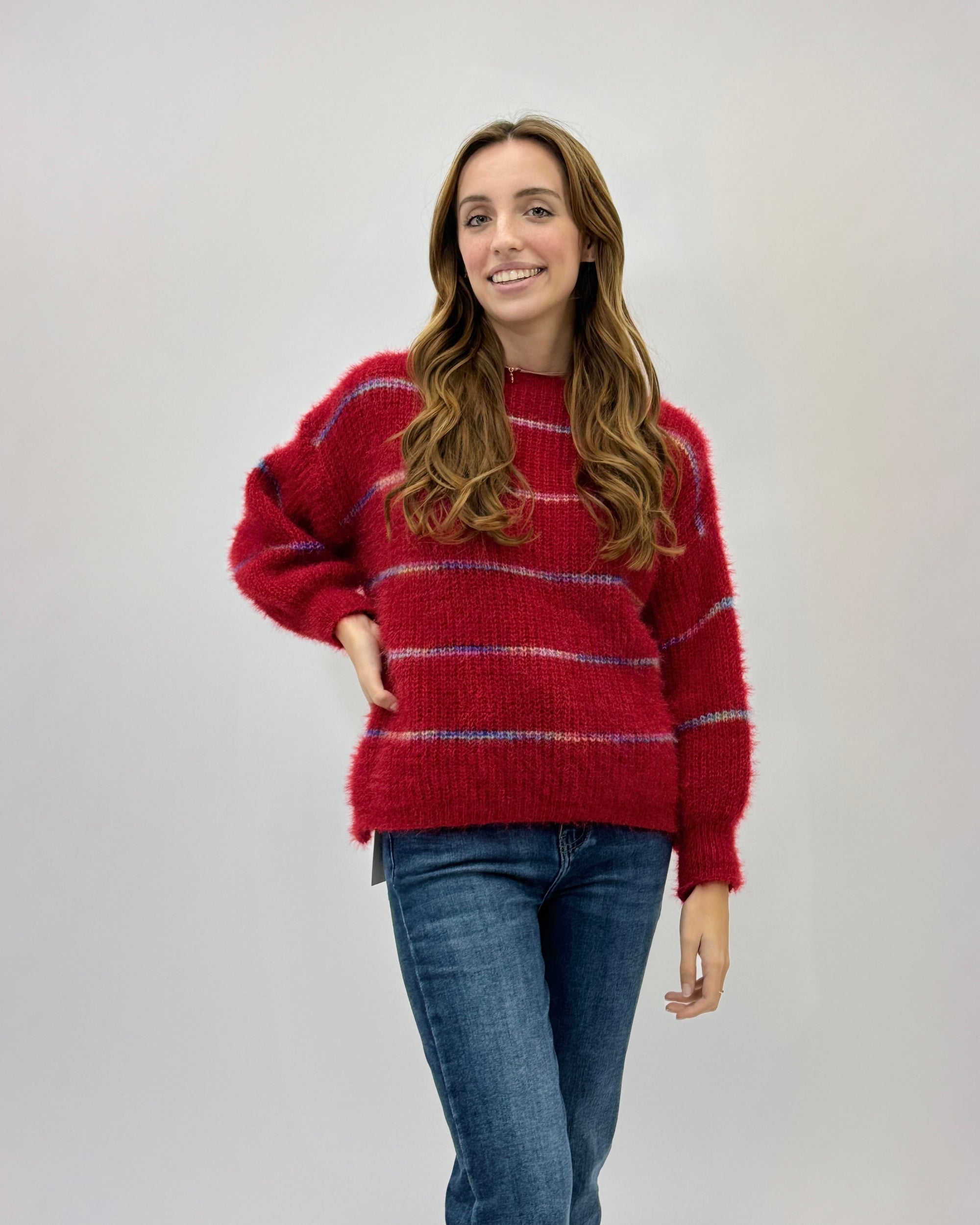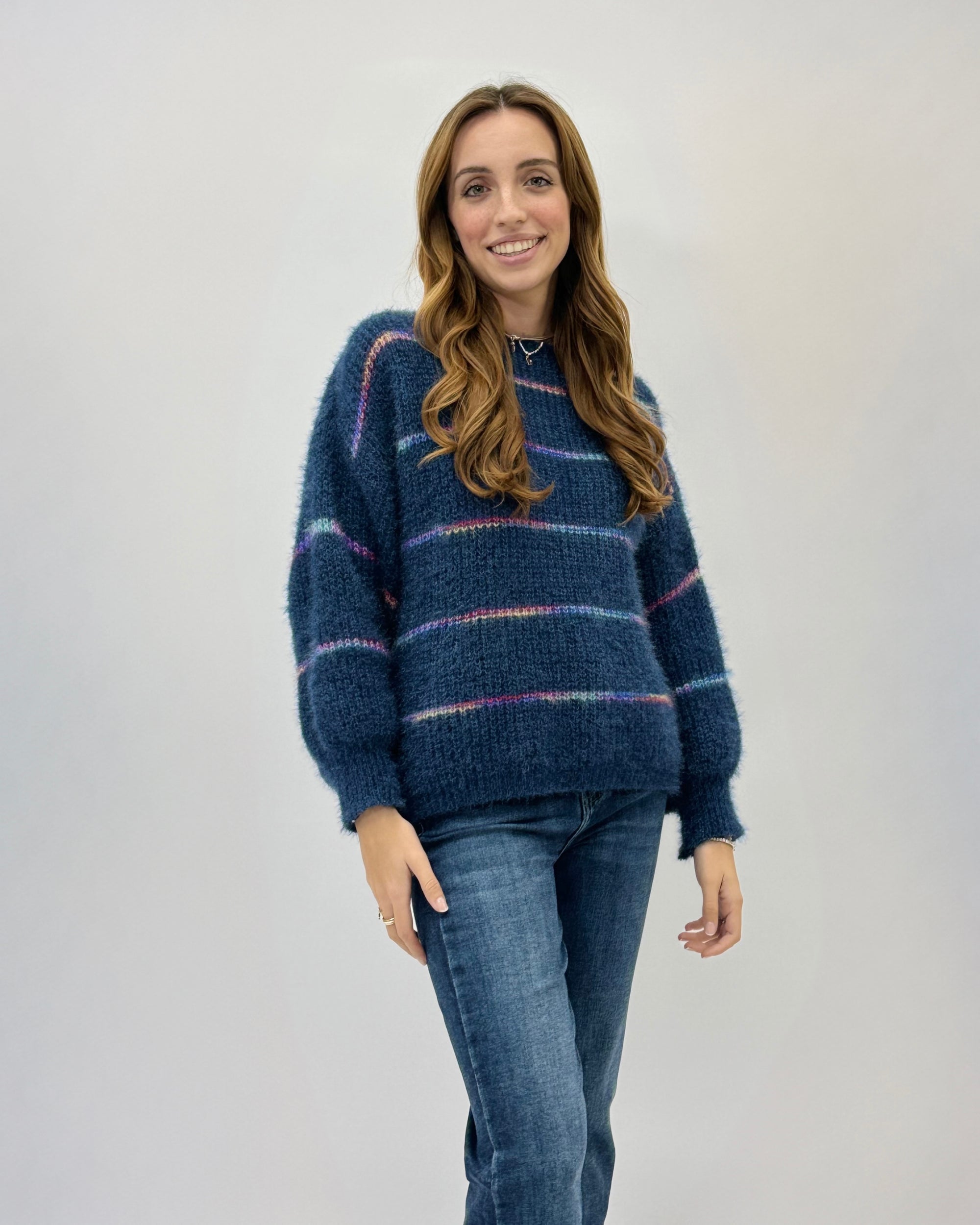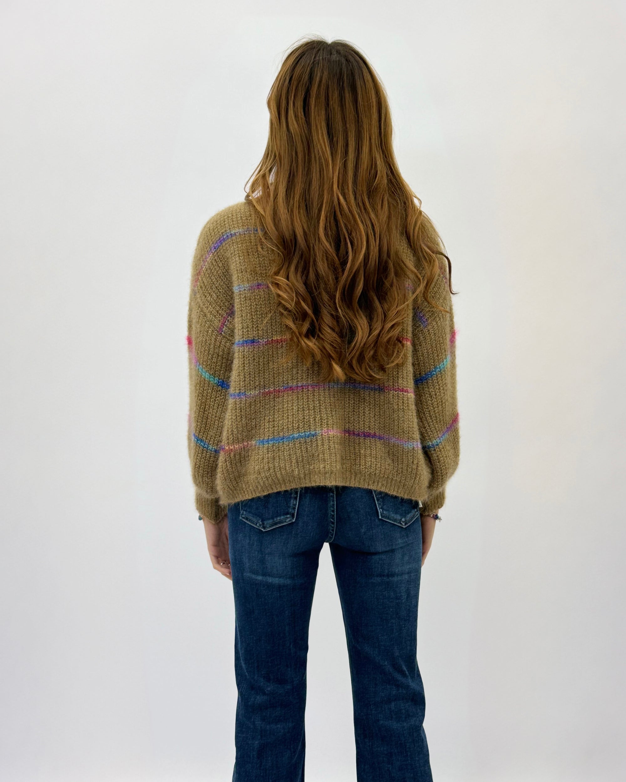 Maglione misto lana con dettaglio righe