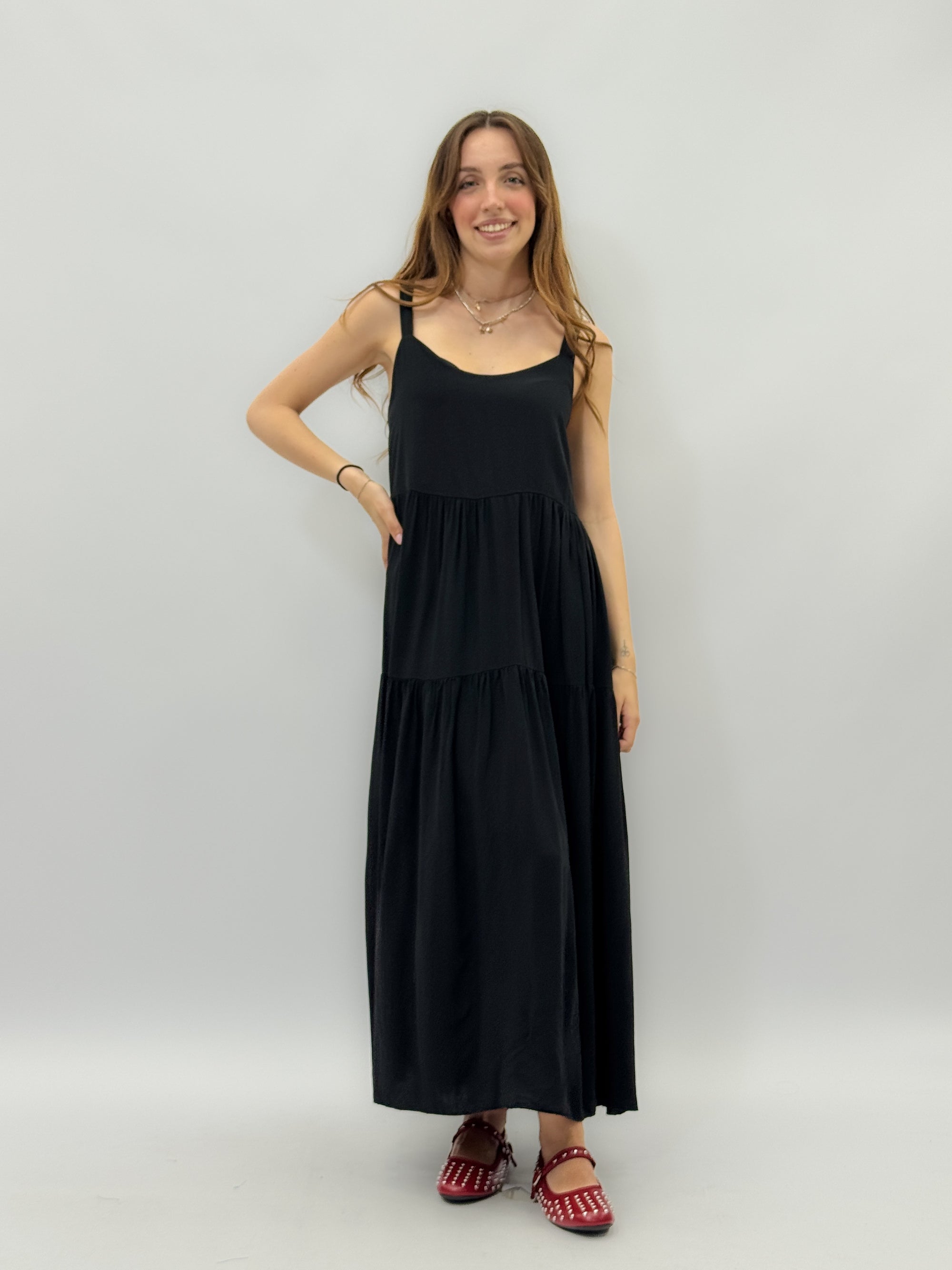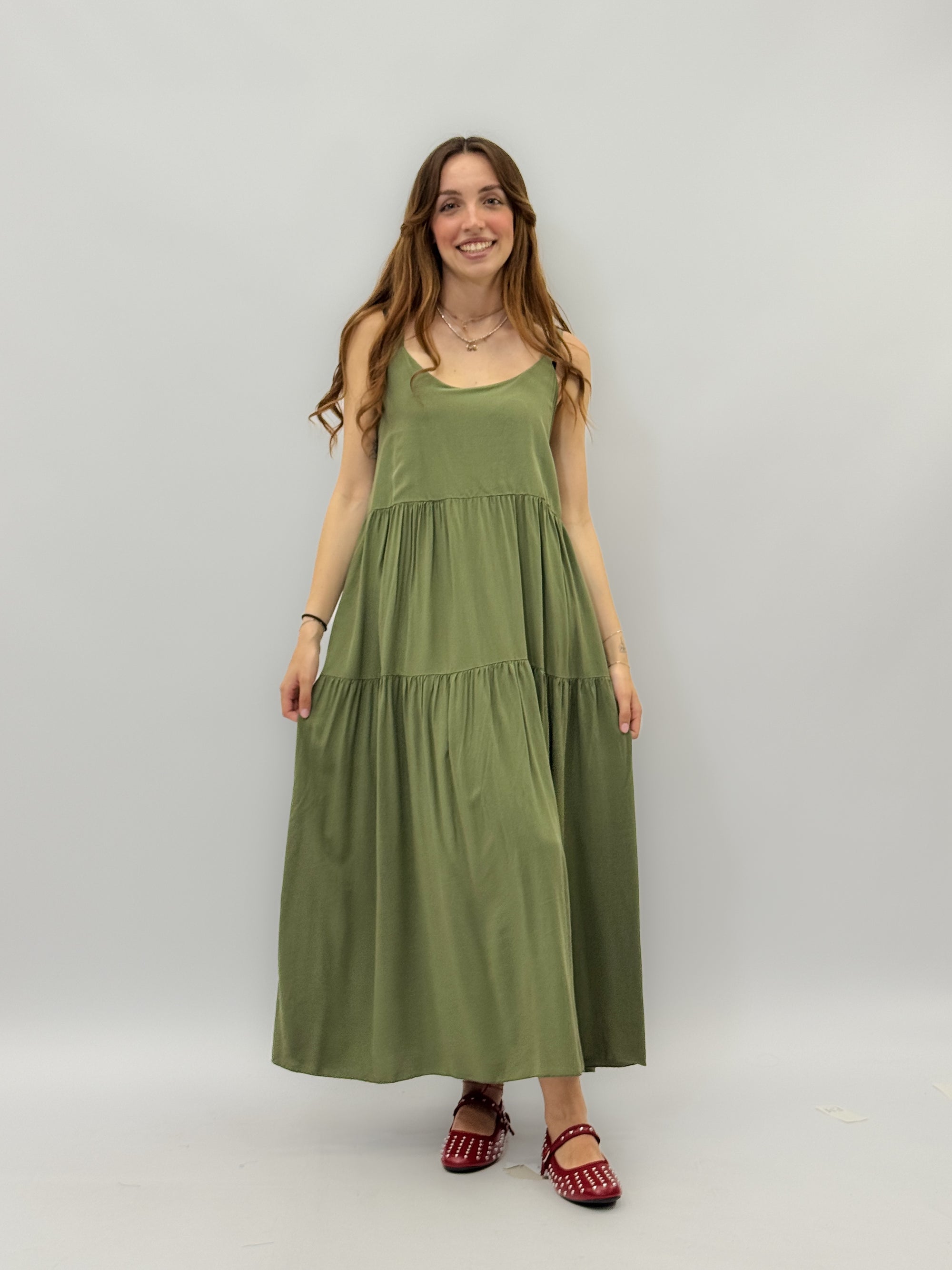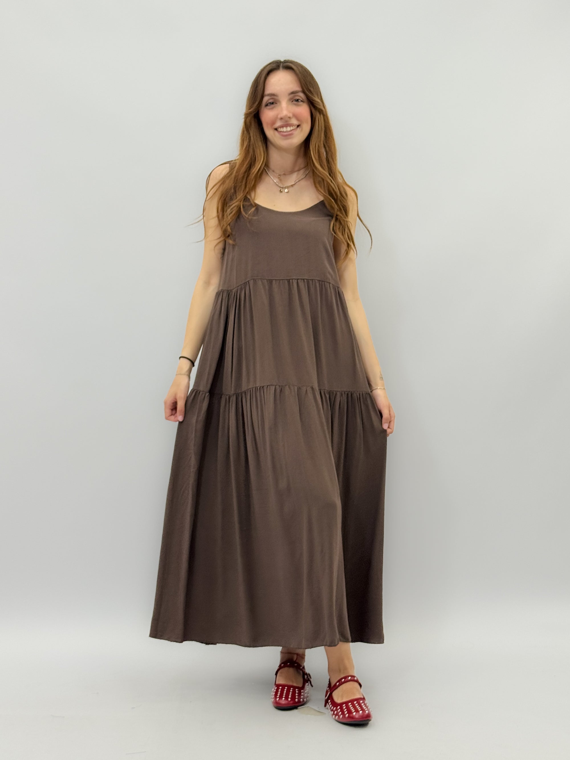 Abito lungo leggero con balze