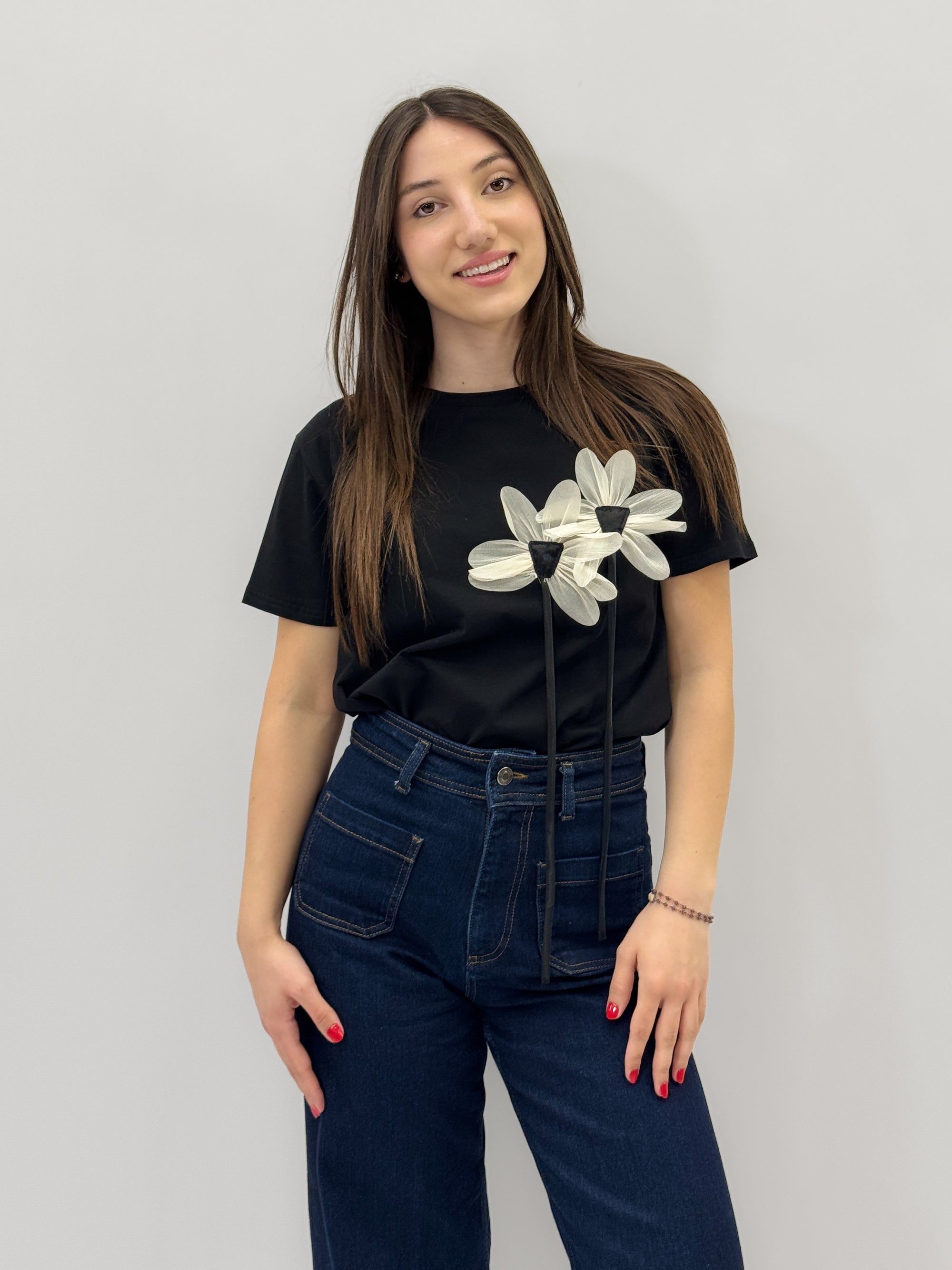 T-shirt in cotone con fiore