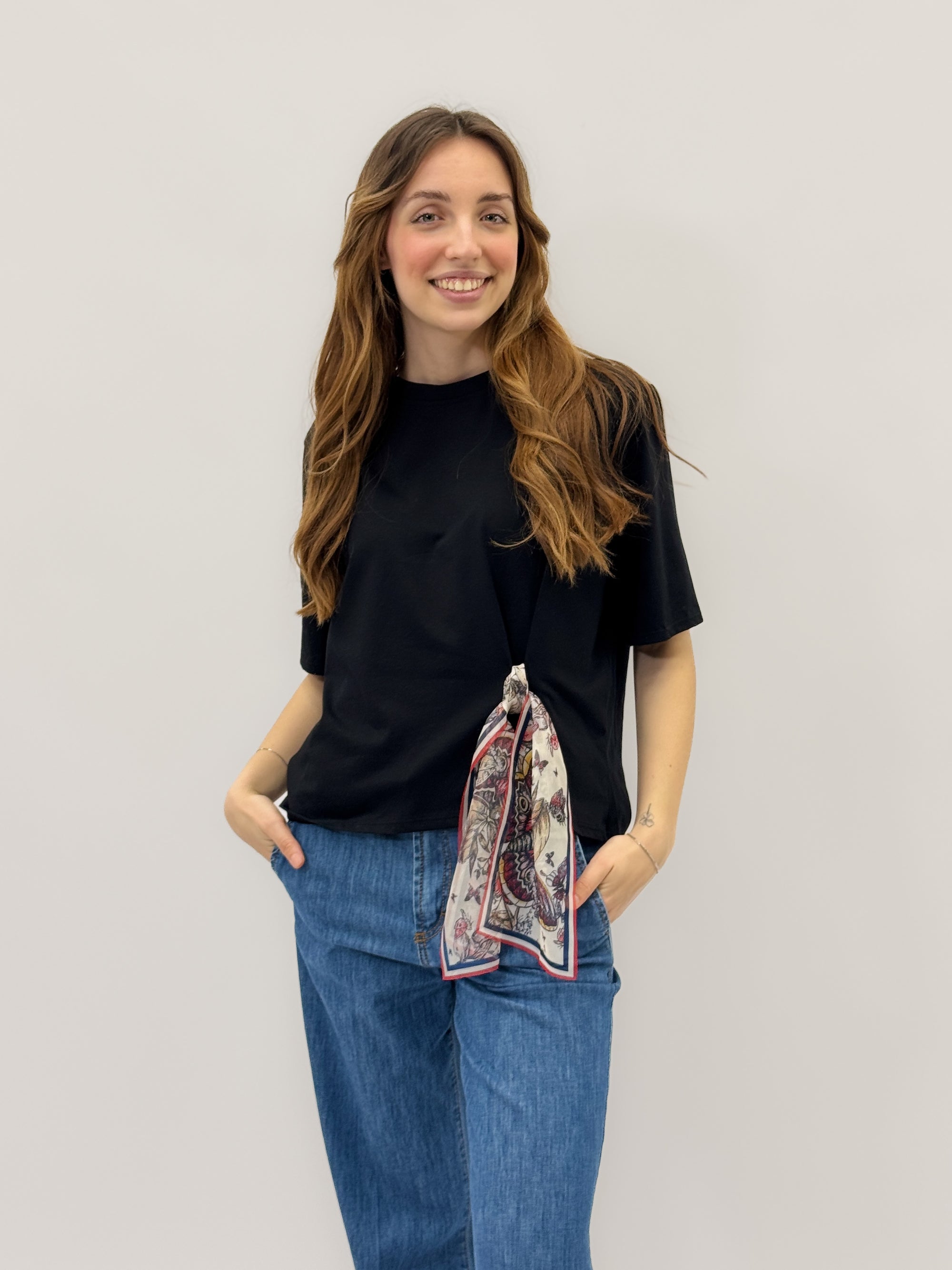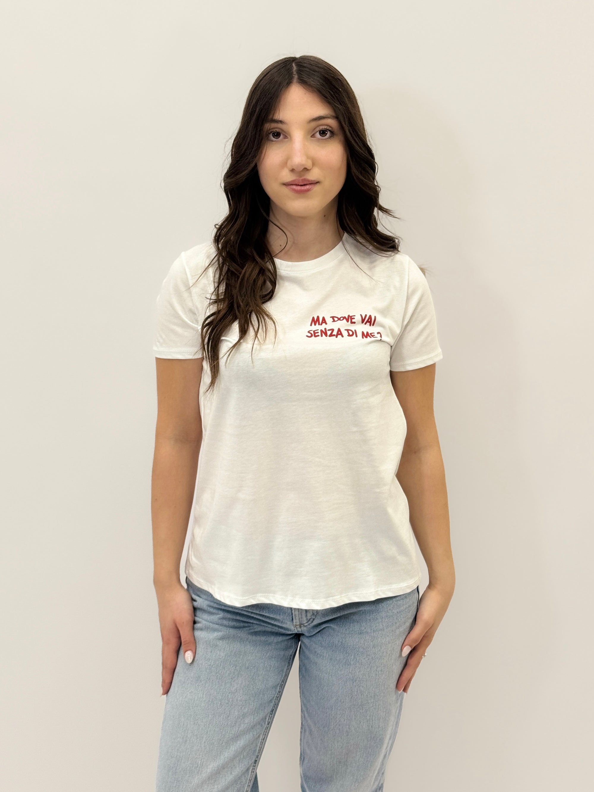 T-shirt petite con scritta "Ma dove vai senza di me?"