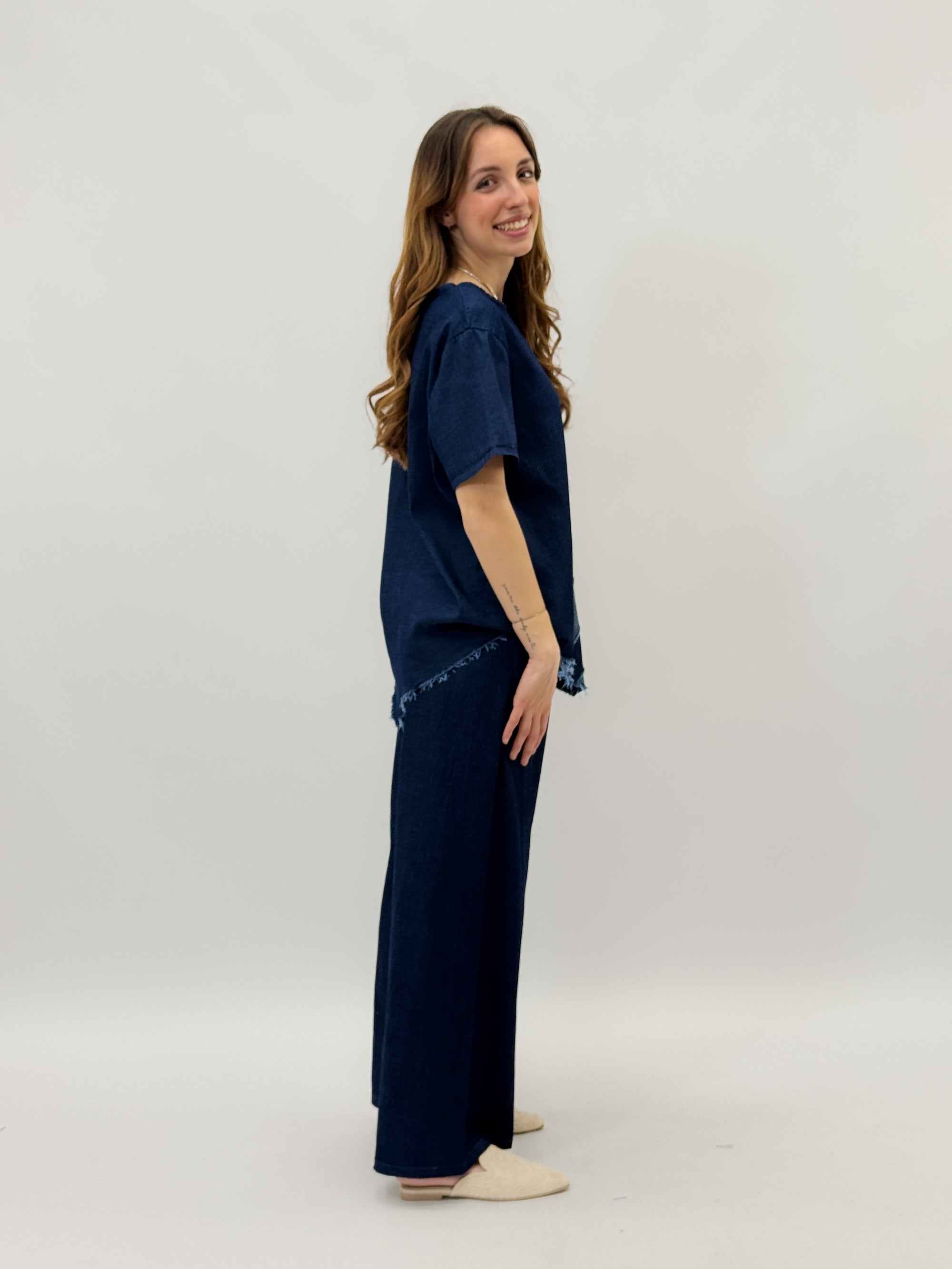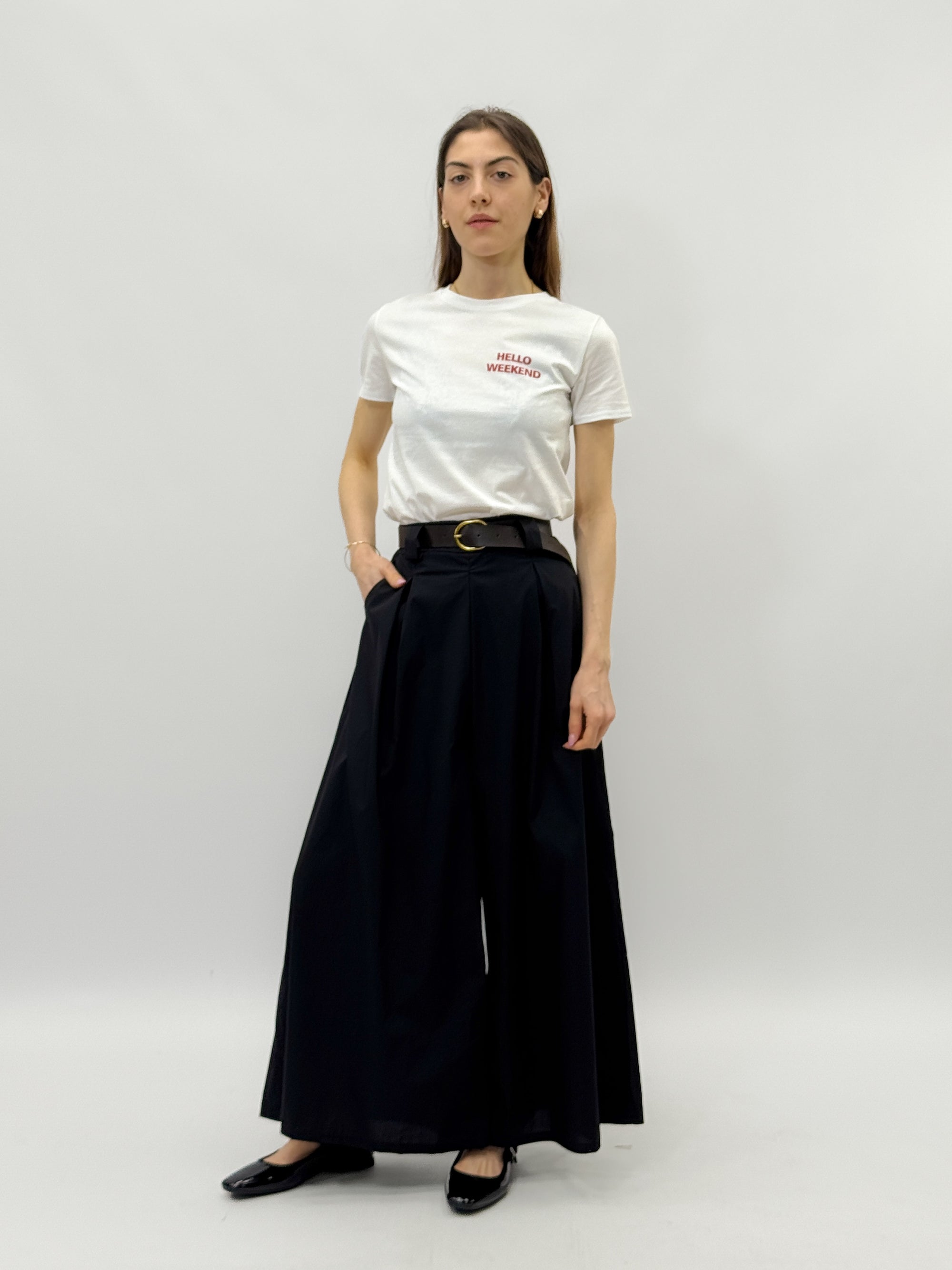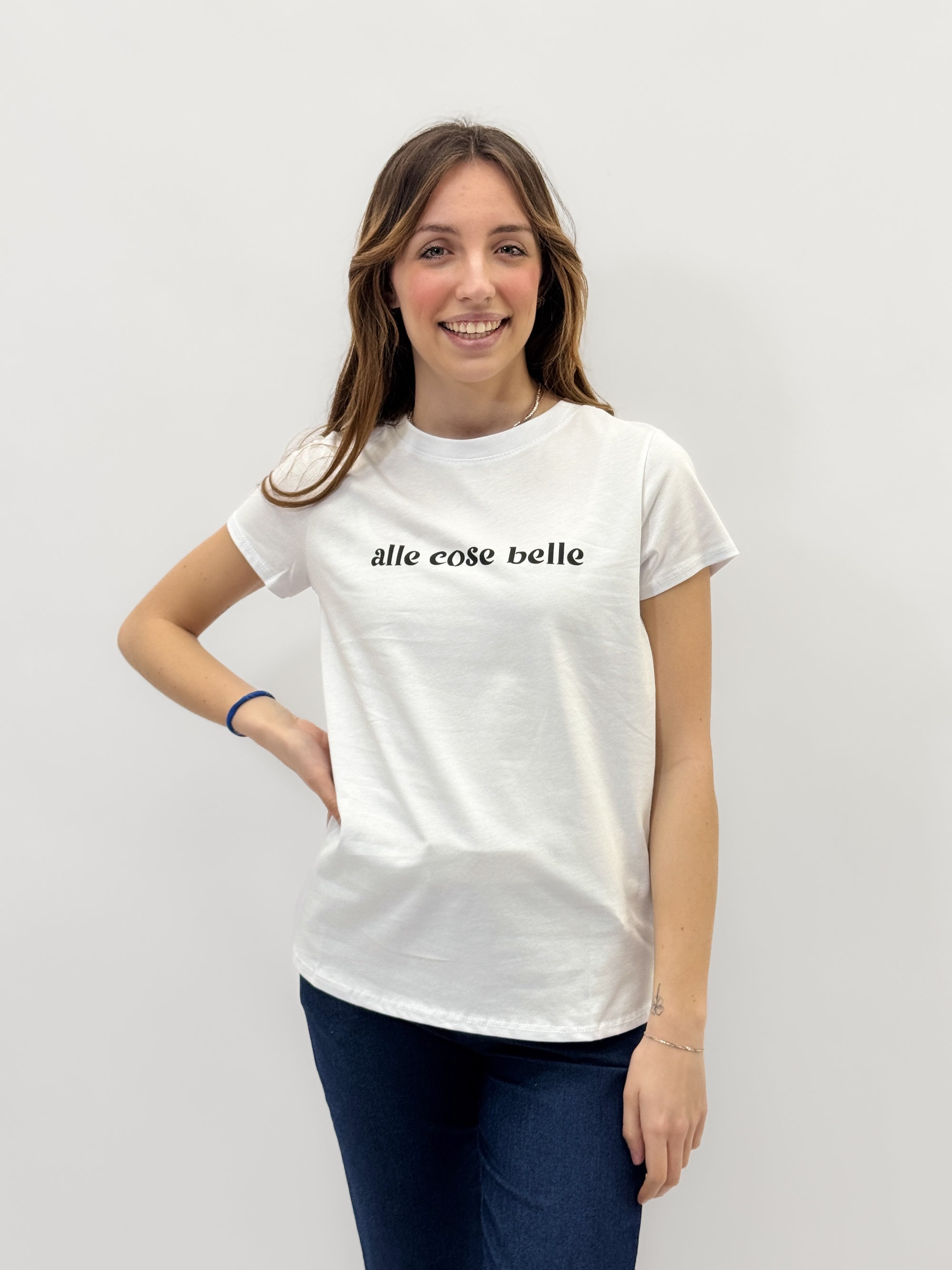 T-shirt in cotone con scritta "Oggi no domani nemmeno"
