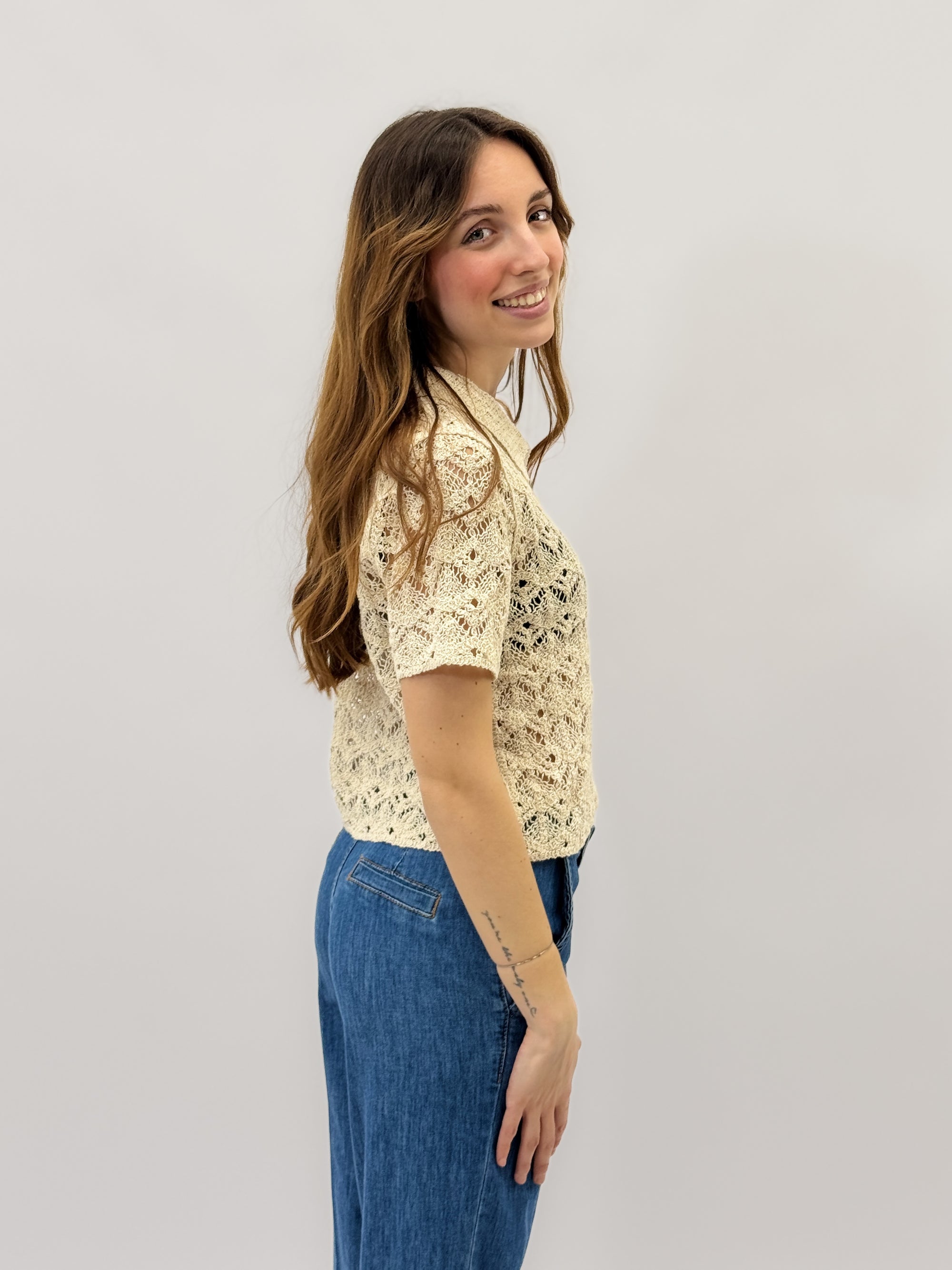 Camicia mezza maniche in pizzo