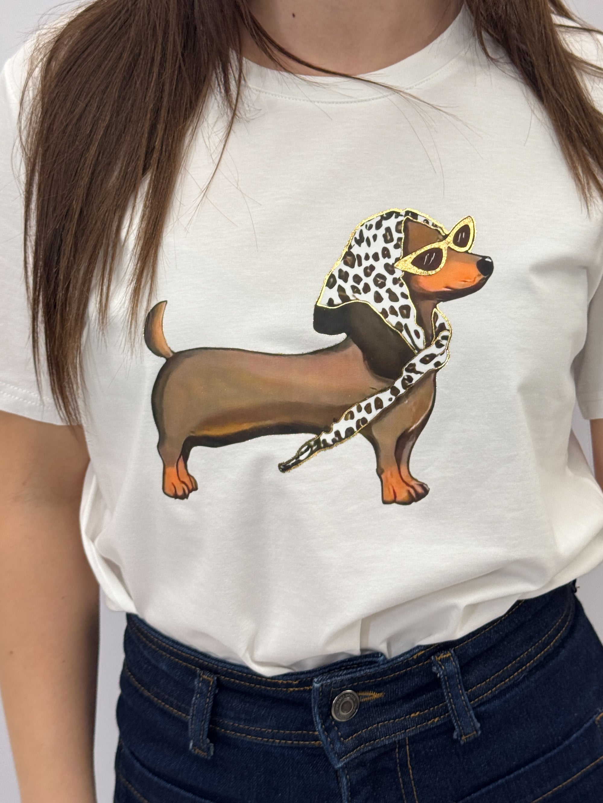 T-shirt in cotone stampa bassotto