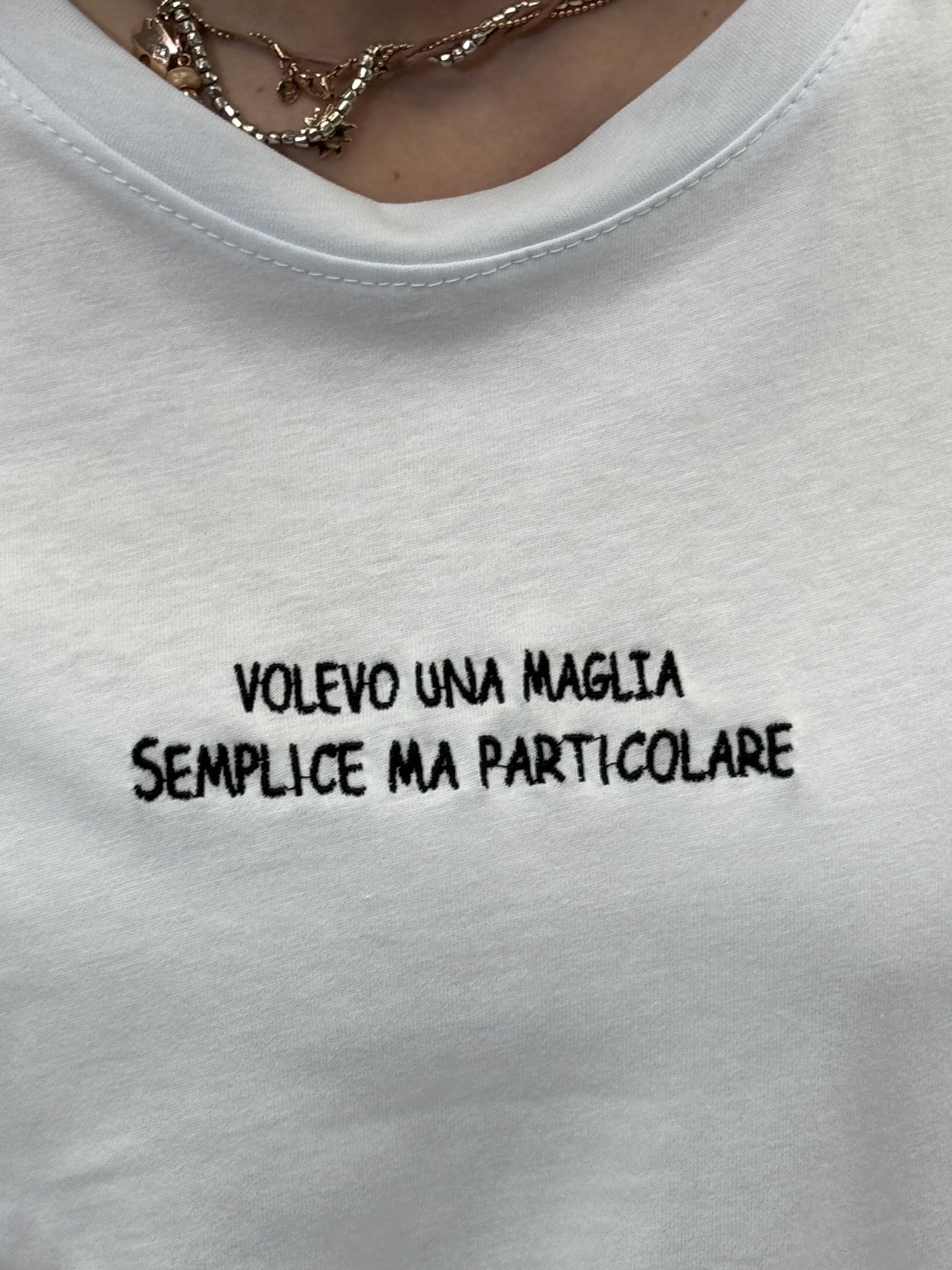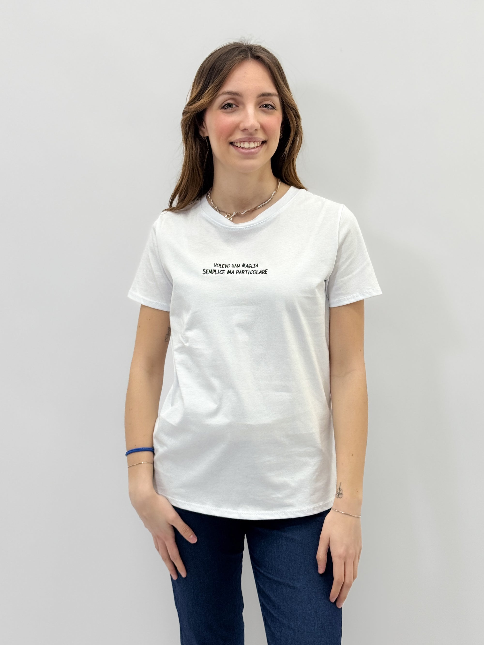 T-shirt in cotone con scritta "volevo una maglia semplice"