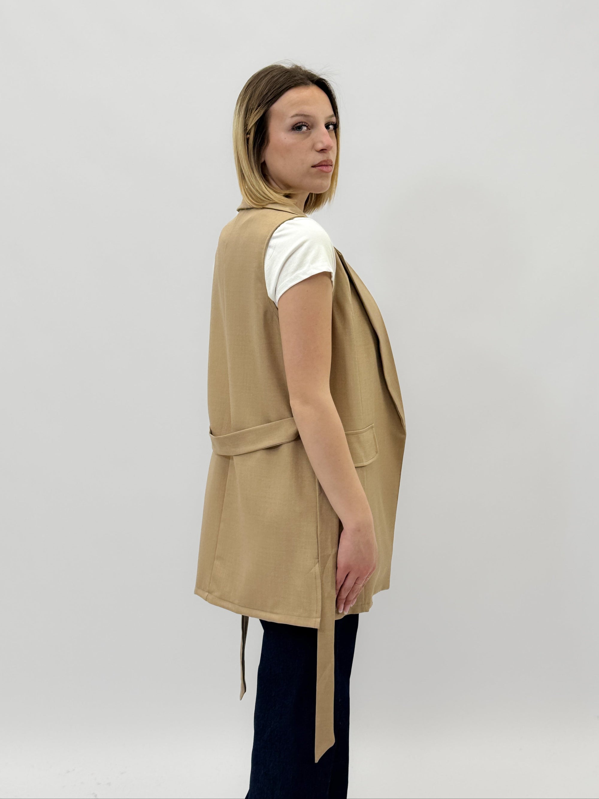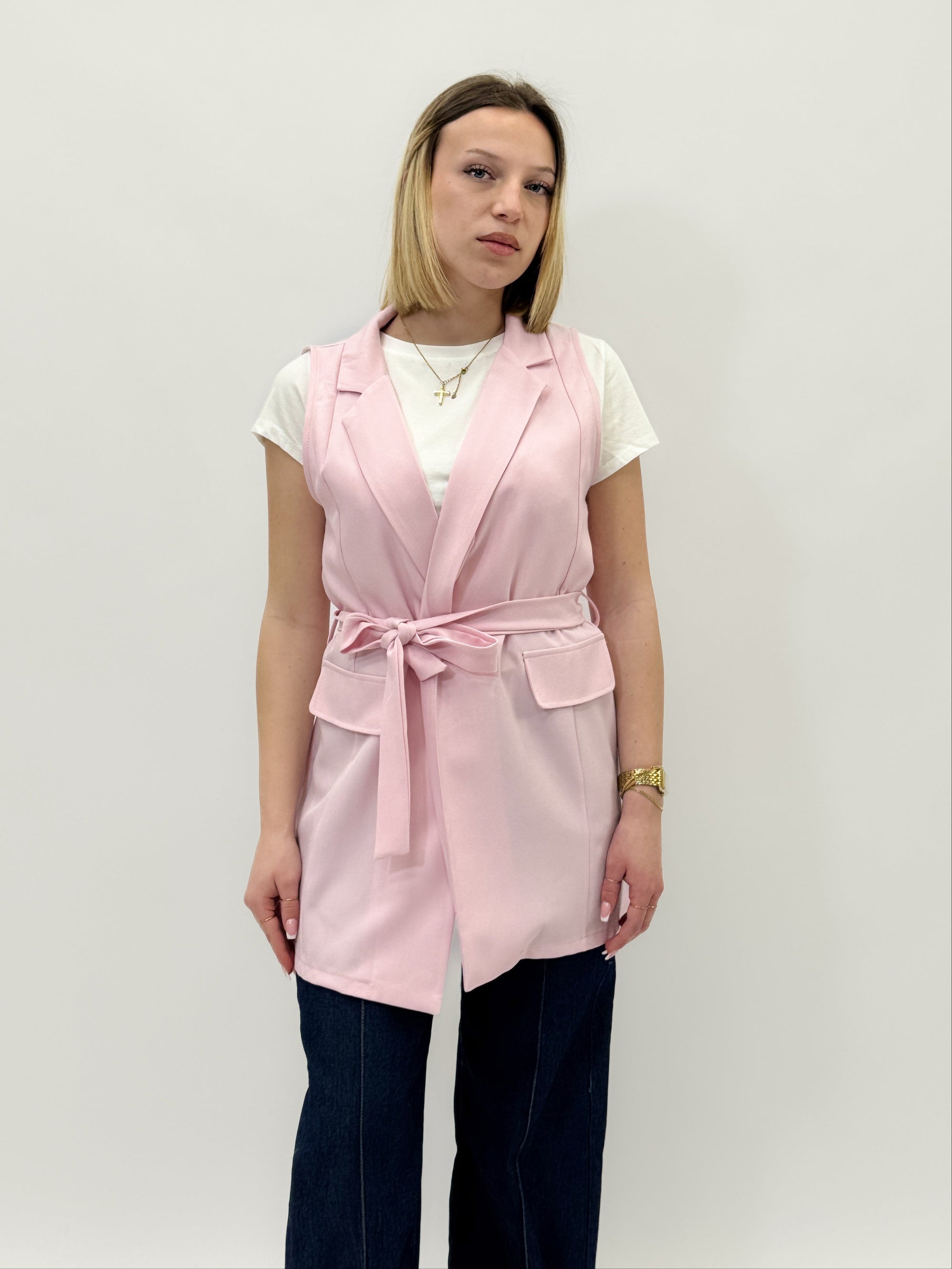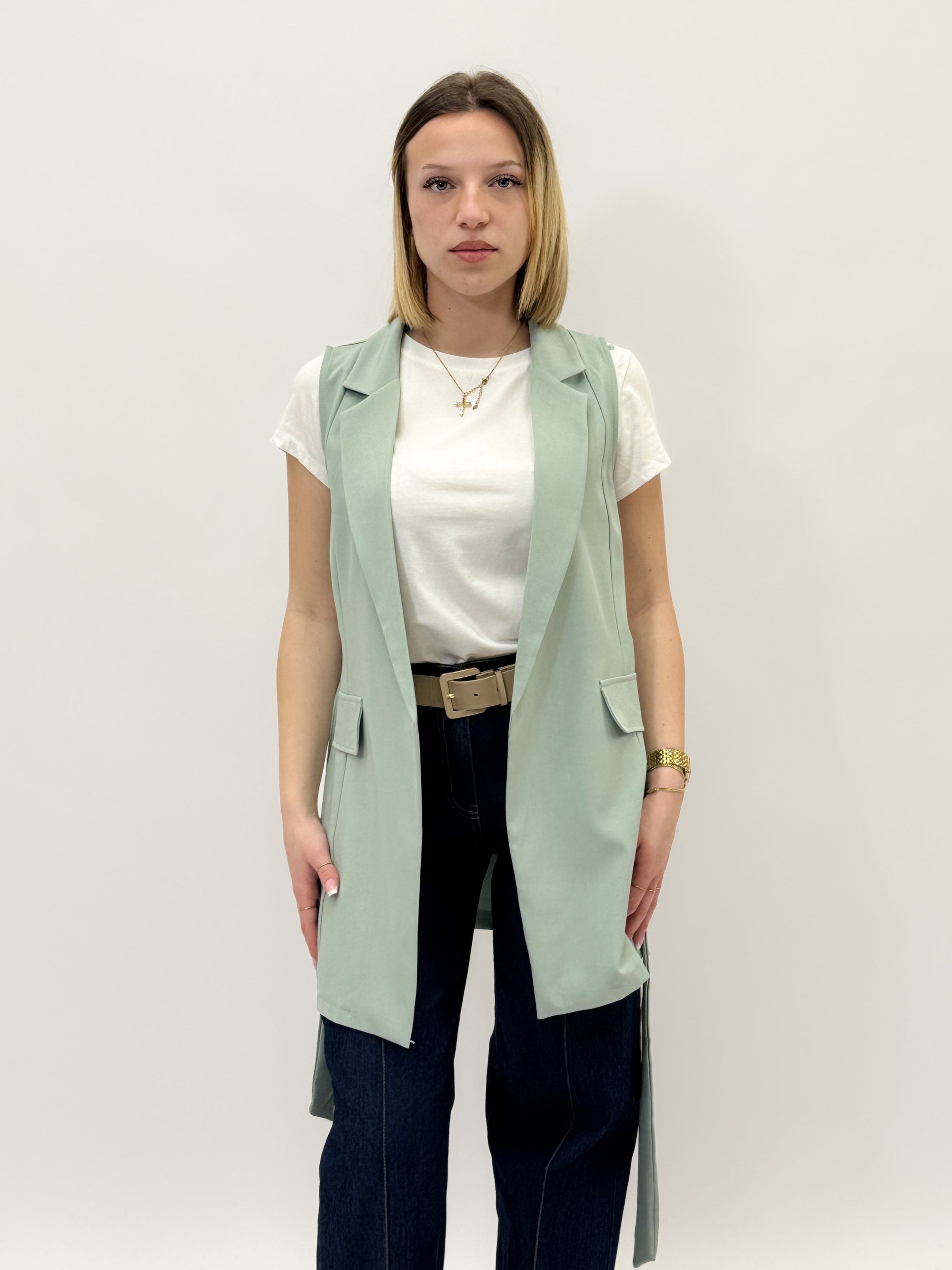 Gilet tinta unita con cintura