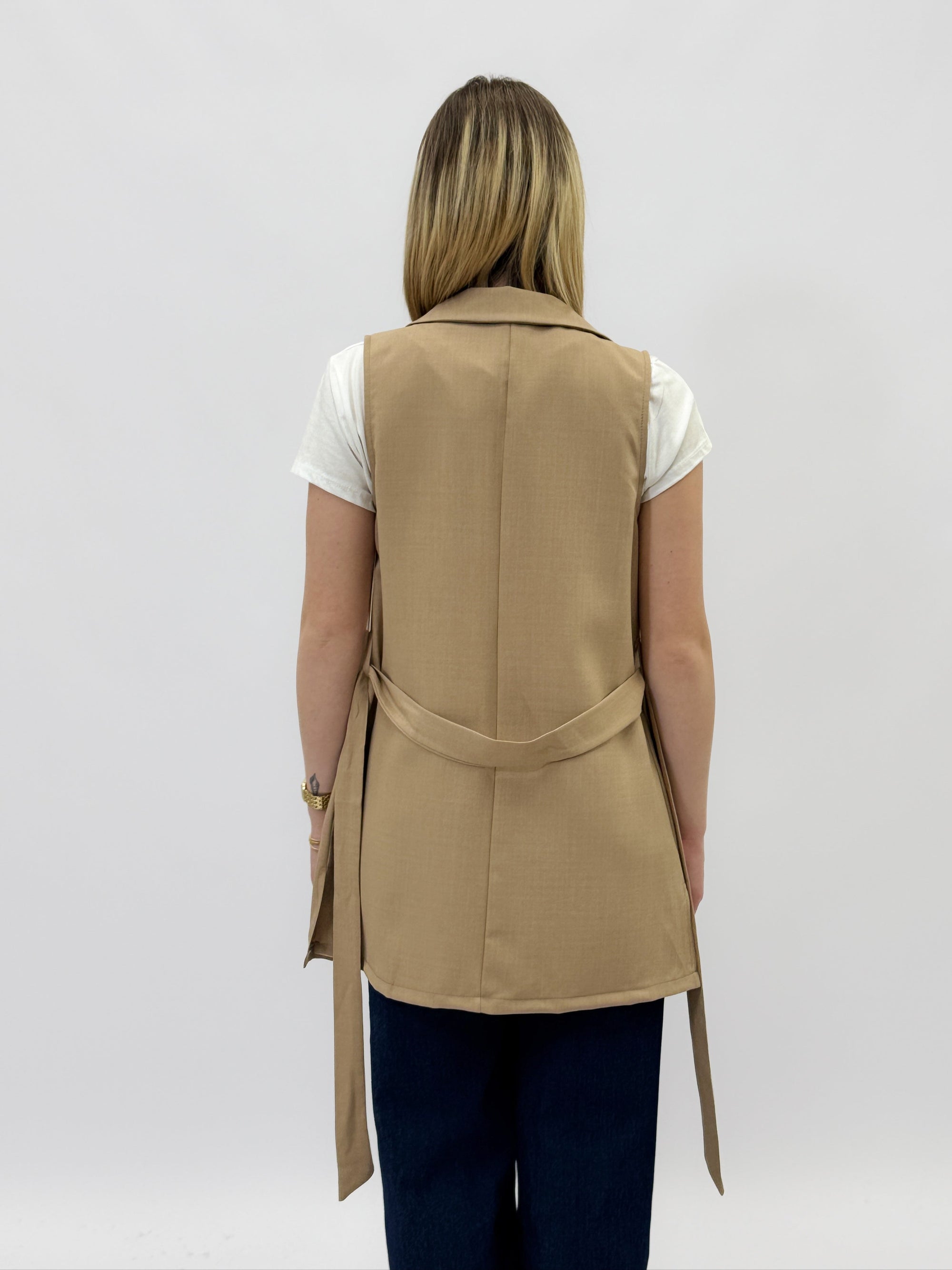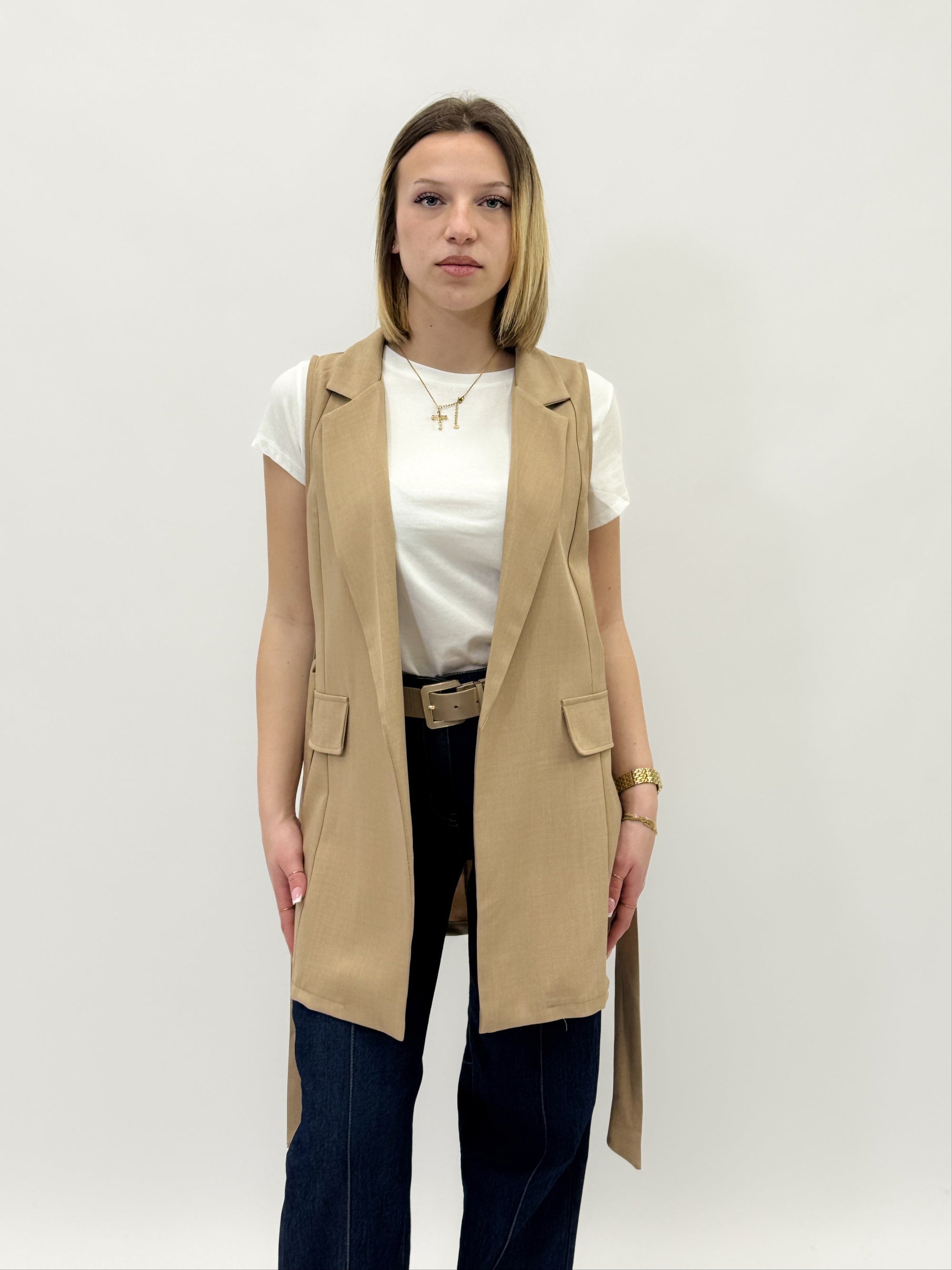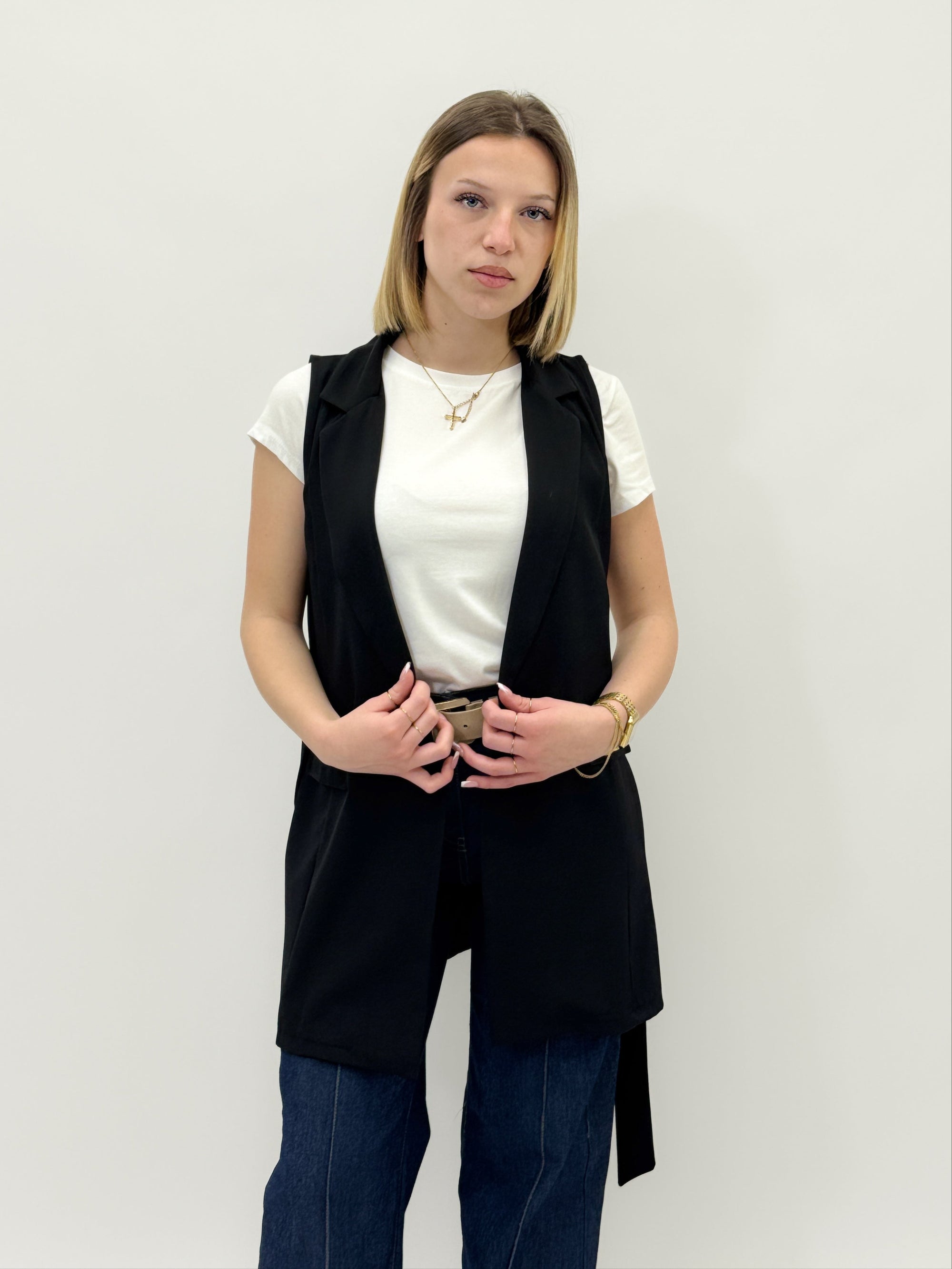 Gilet tinta unita con cintura