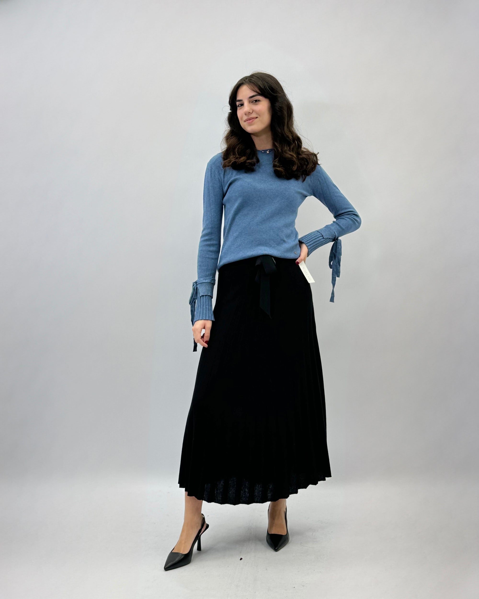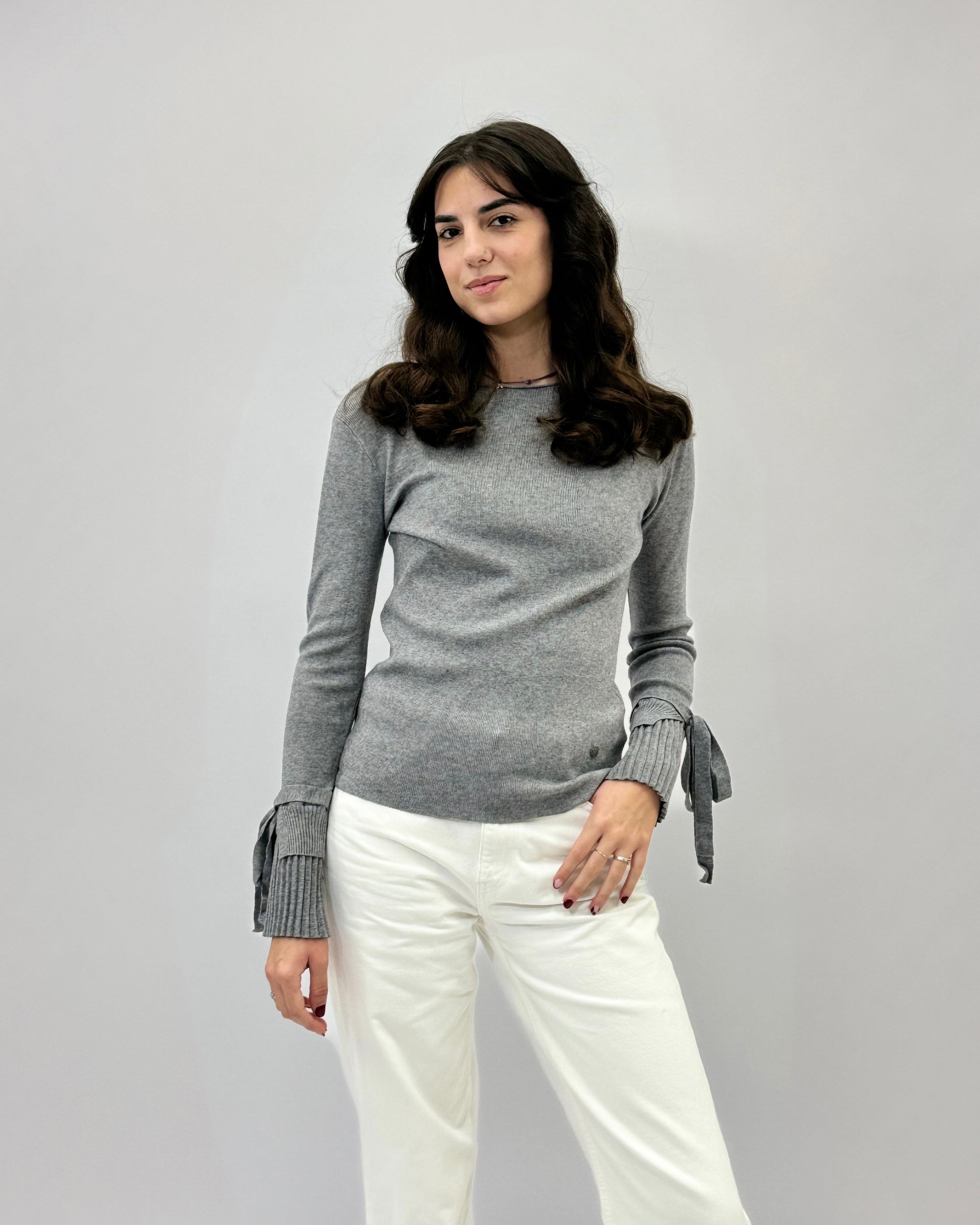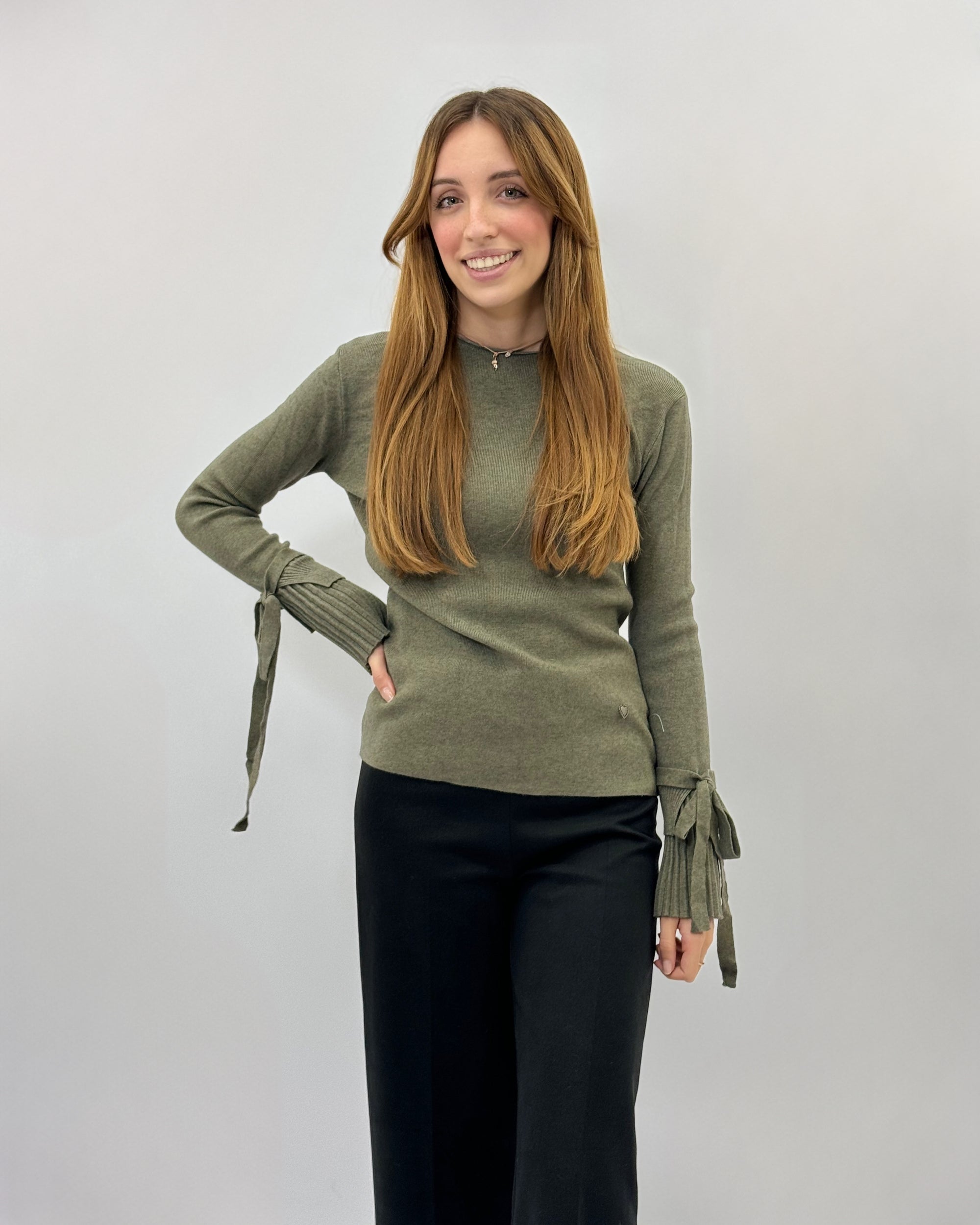 Pullover tinta unita con dettaglio maniche plissè