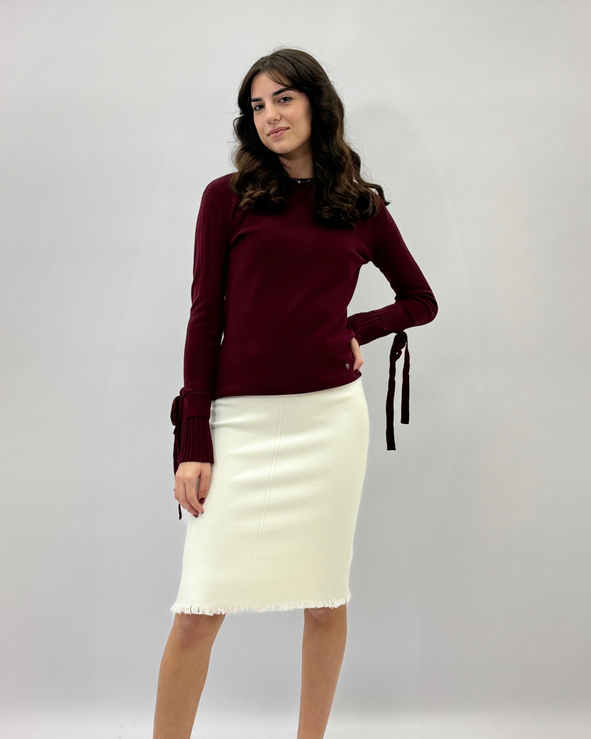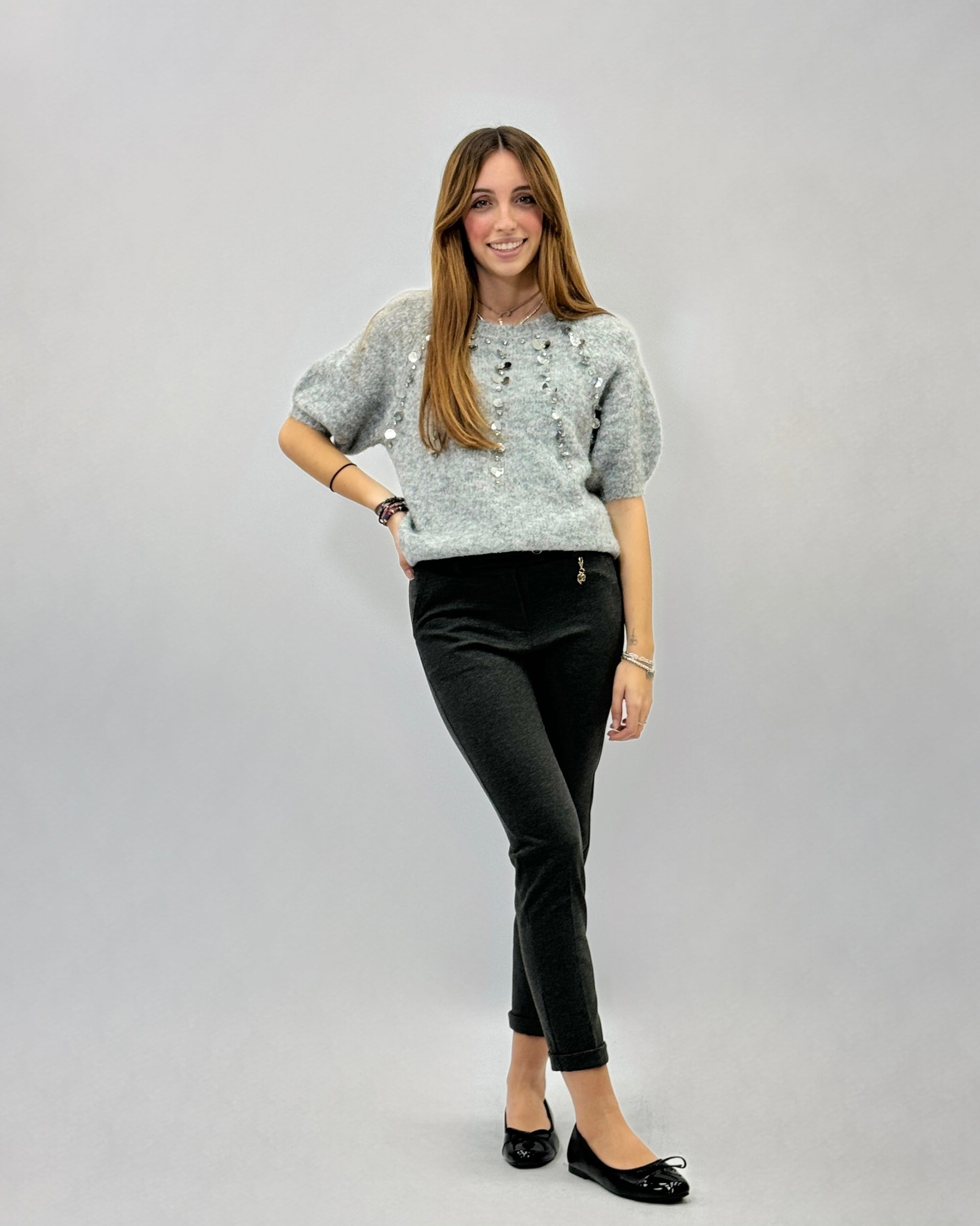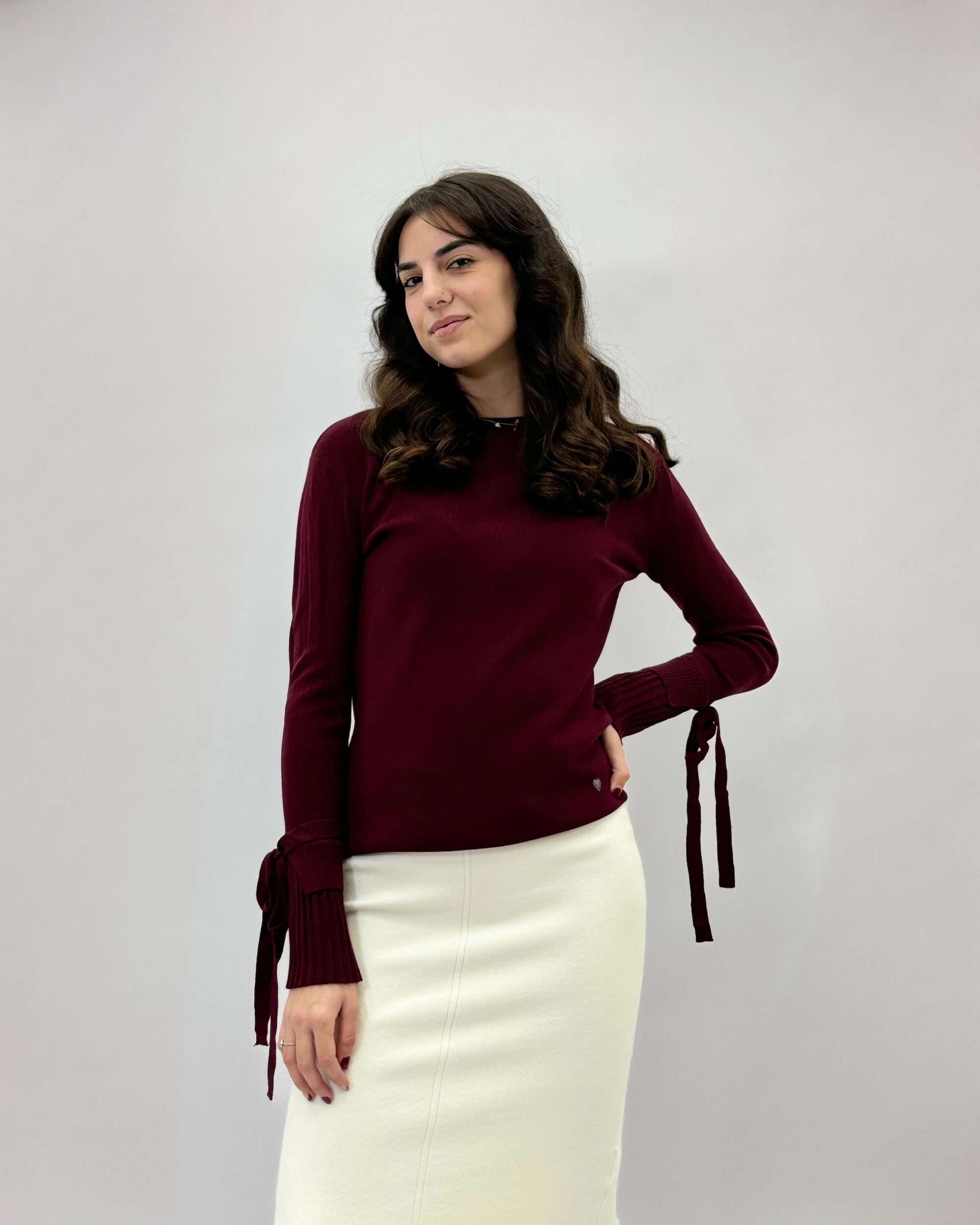 Pullover tinta unita con dettaglio maniche plissè