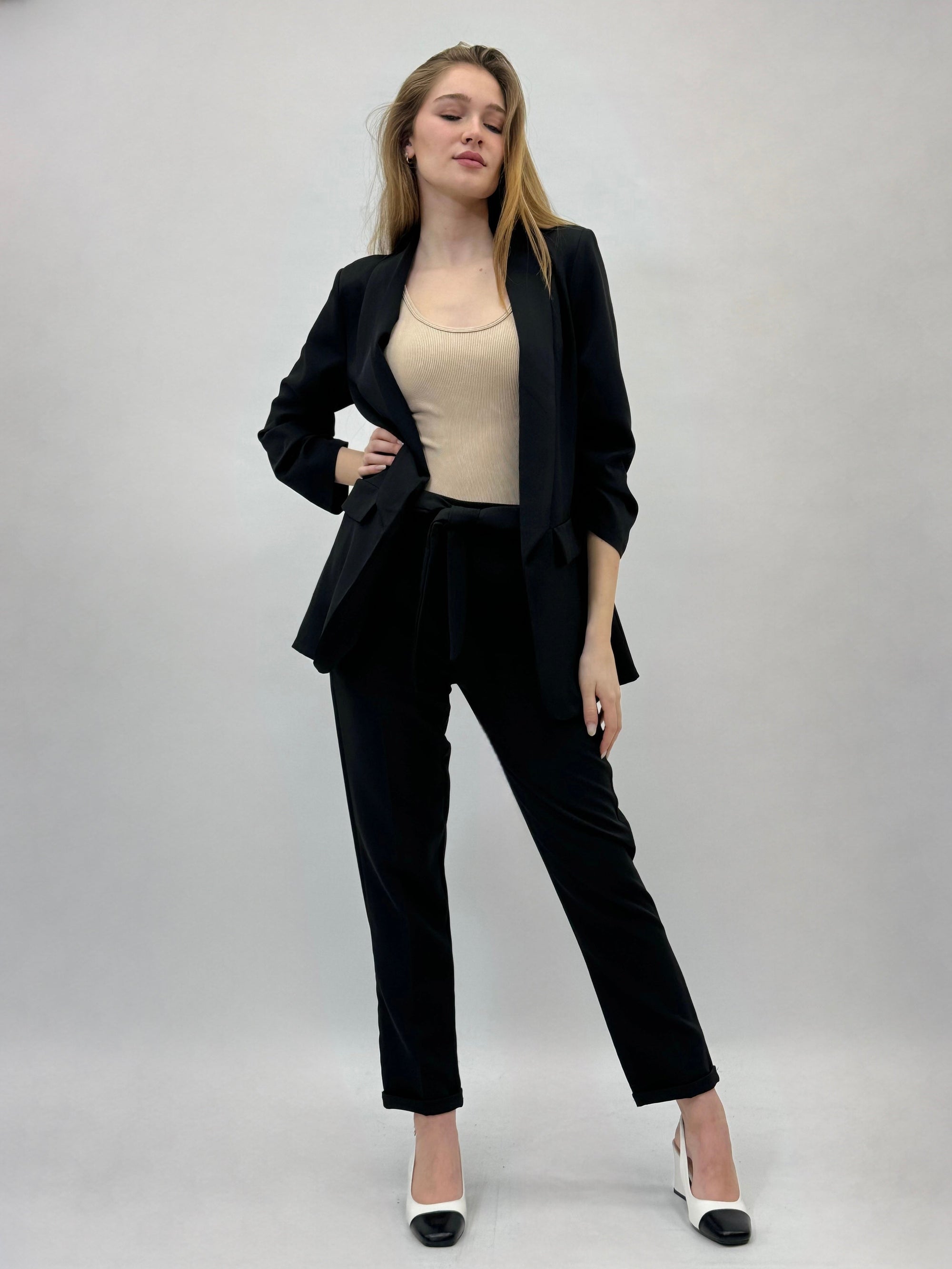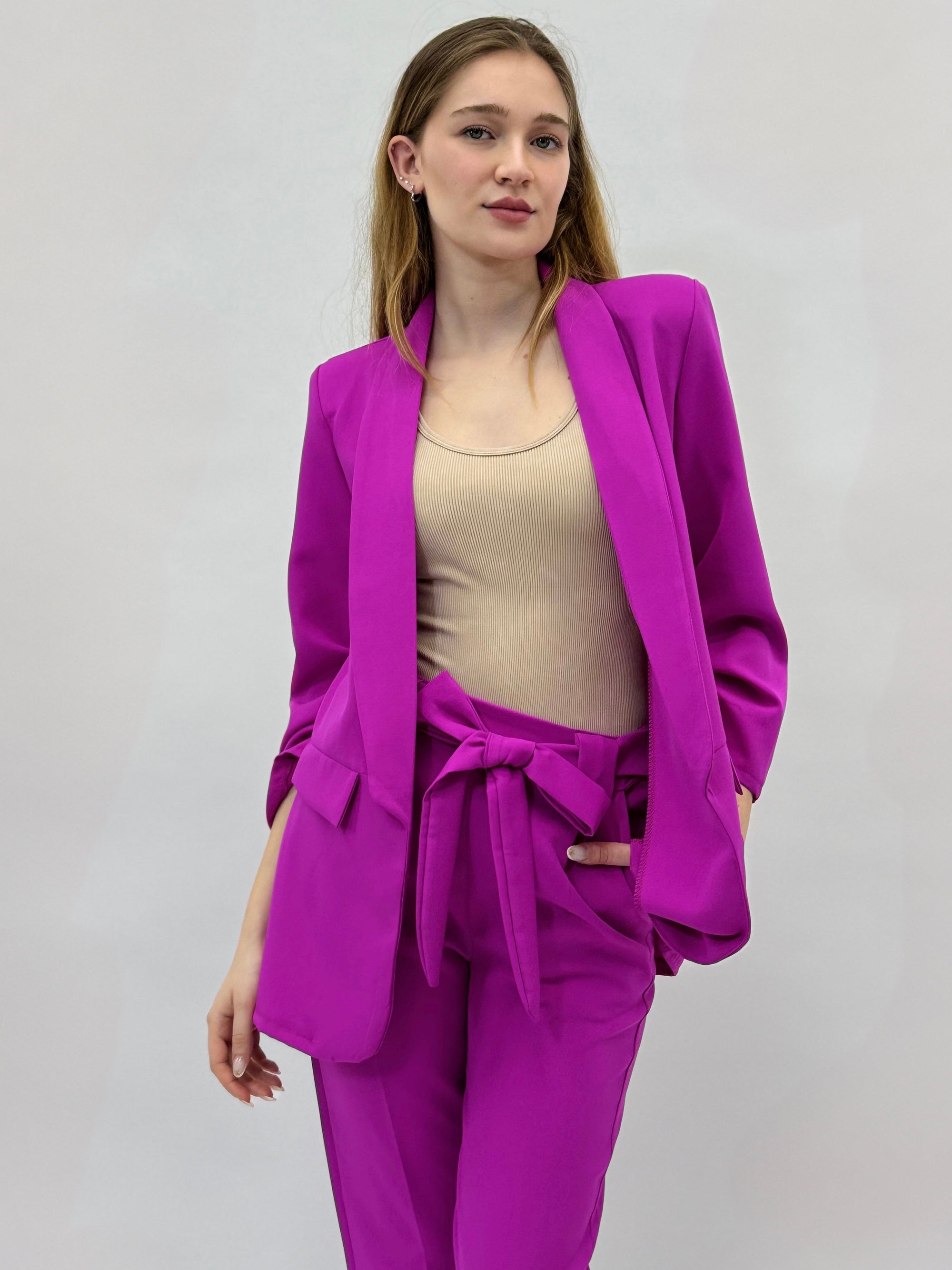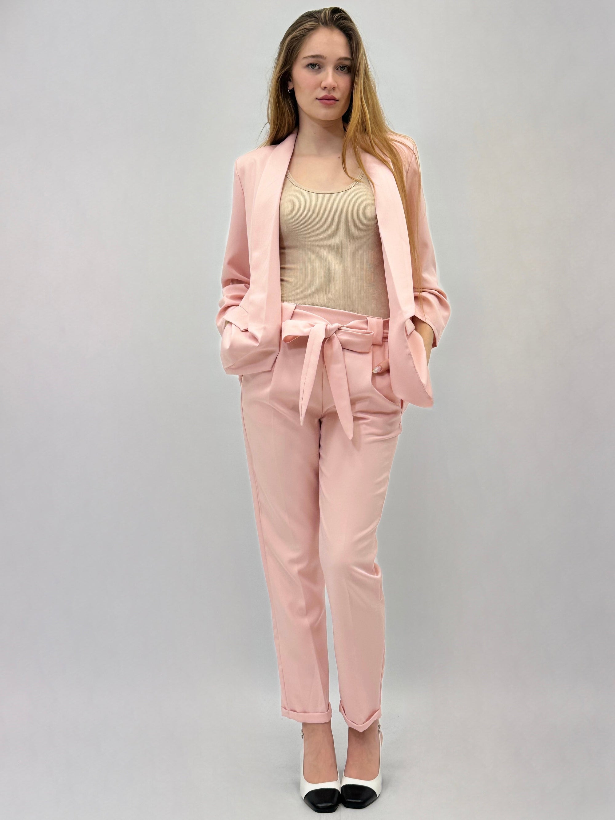 Completo giacca e pantaloni dettaglio fiocco