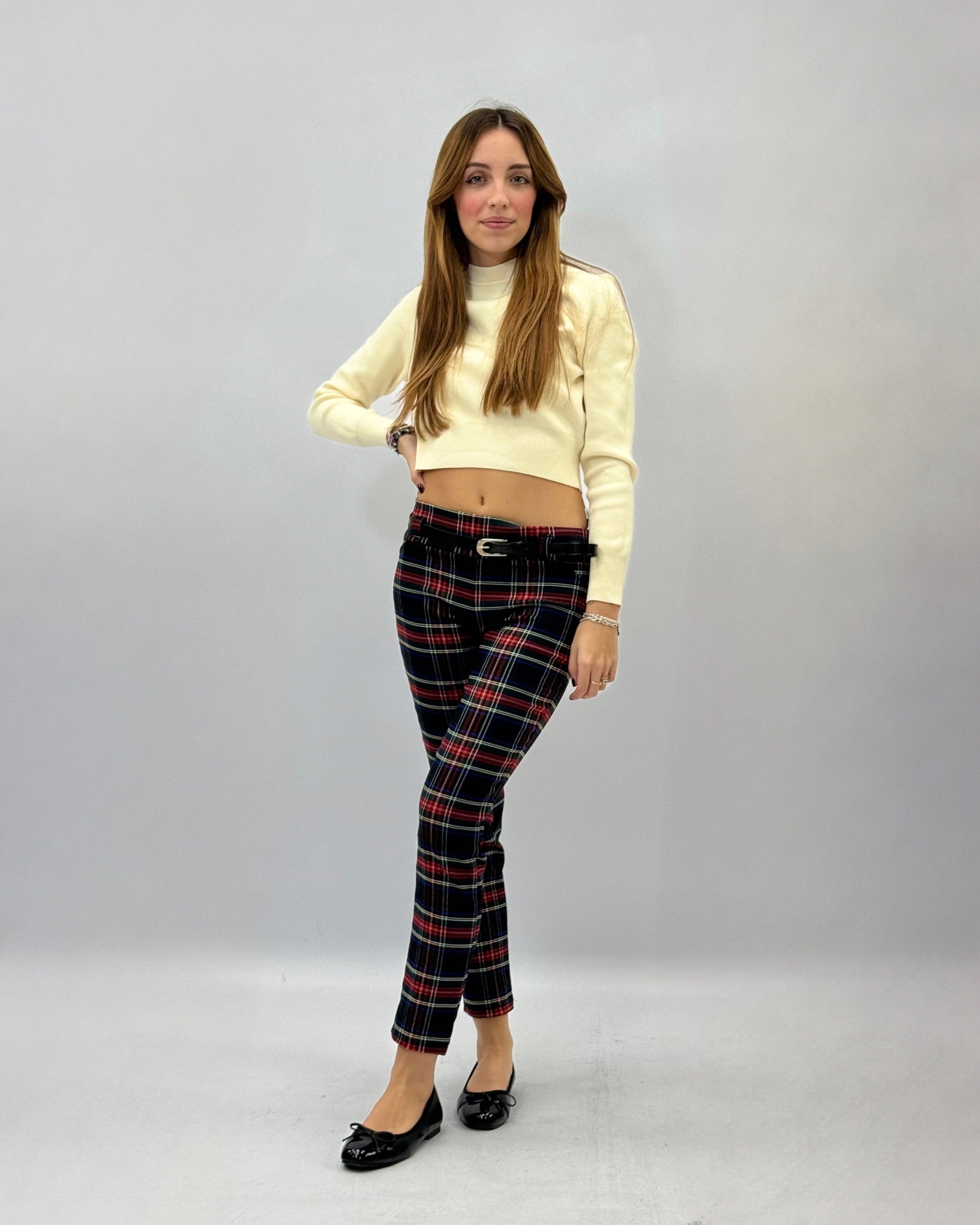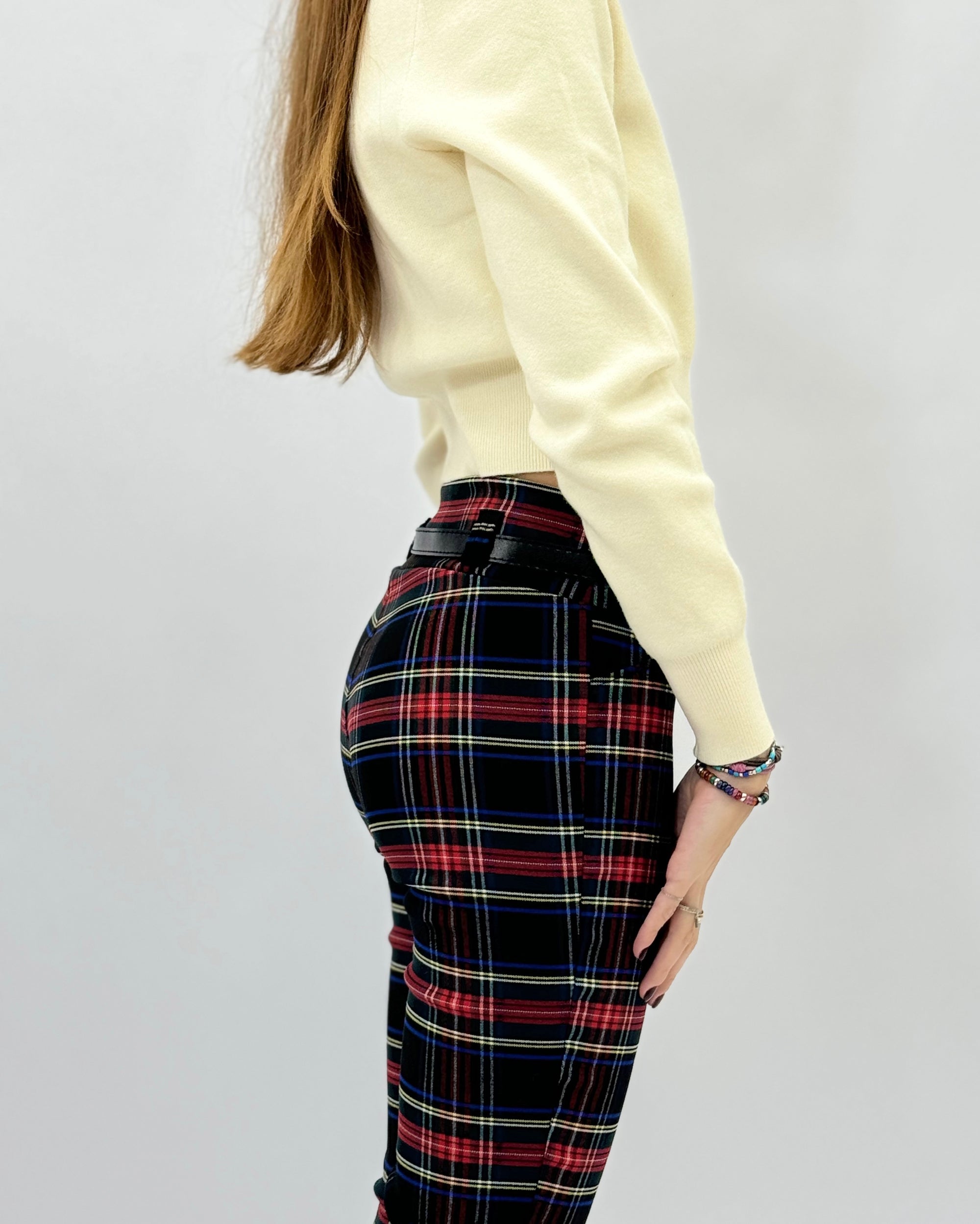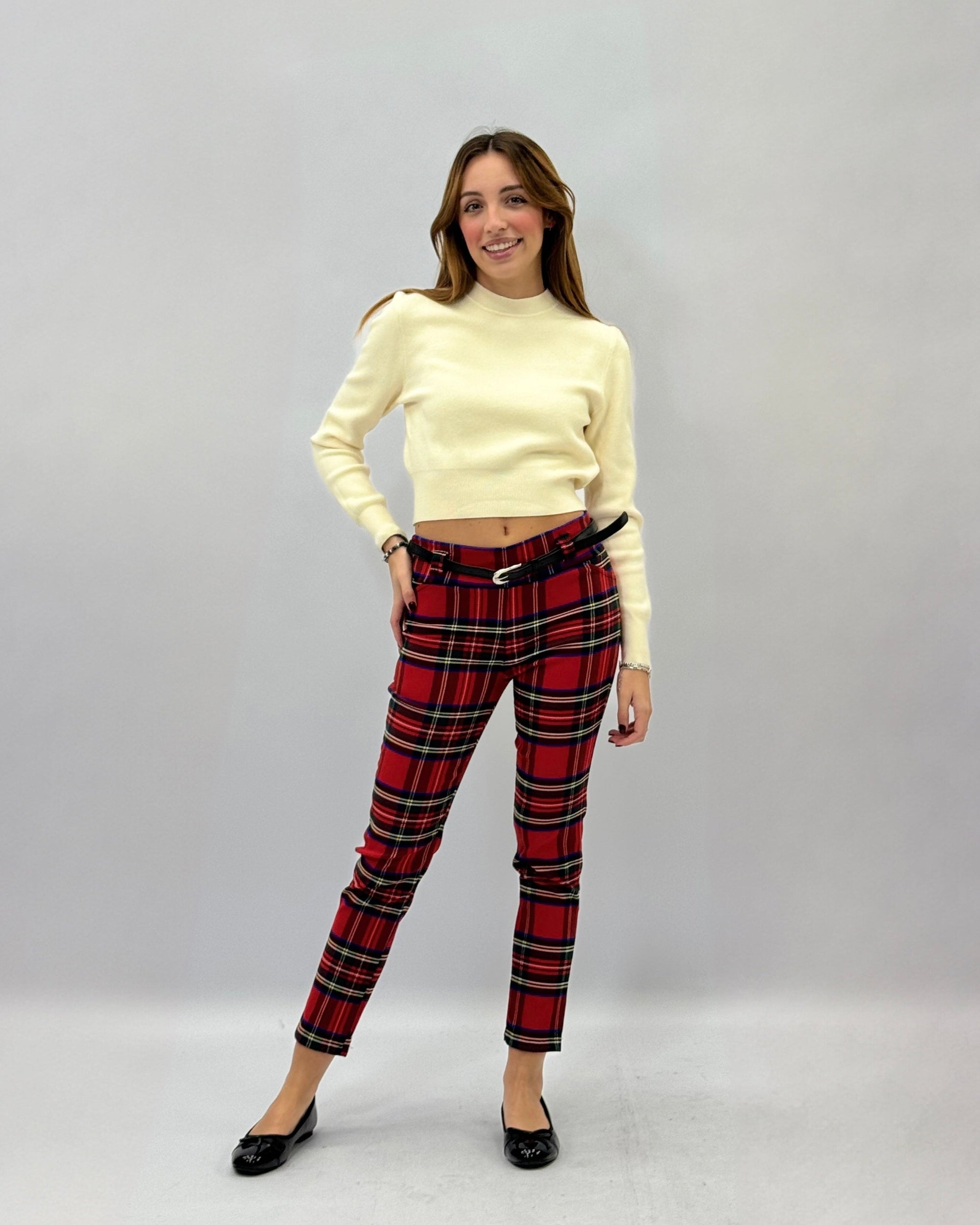 Pantaloni a sigaretta tartan con cintura