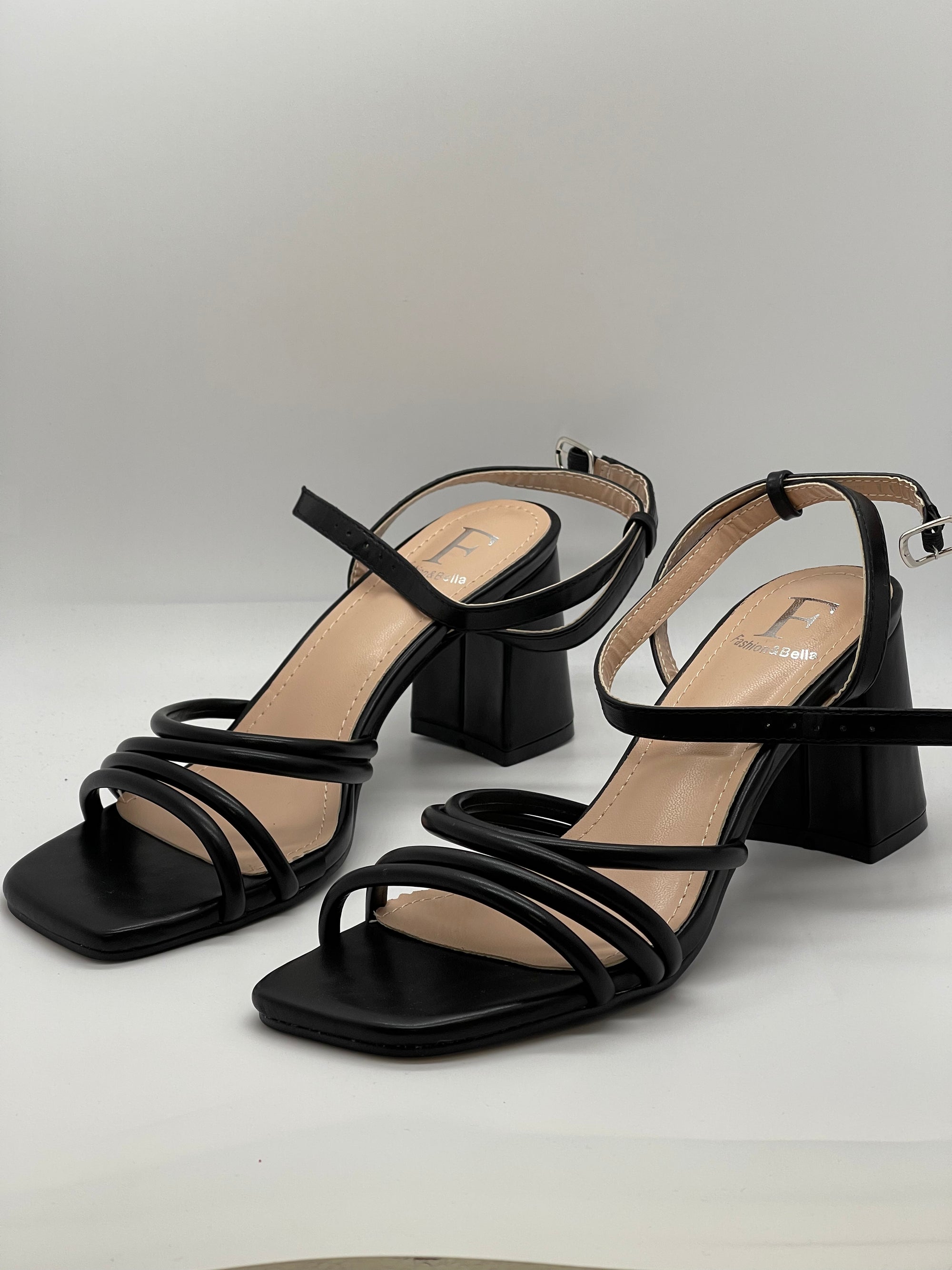 Sandali con tacco largo con fasce