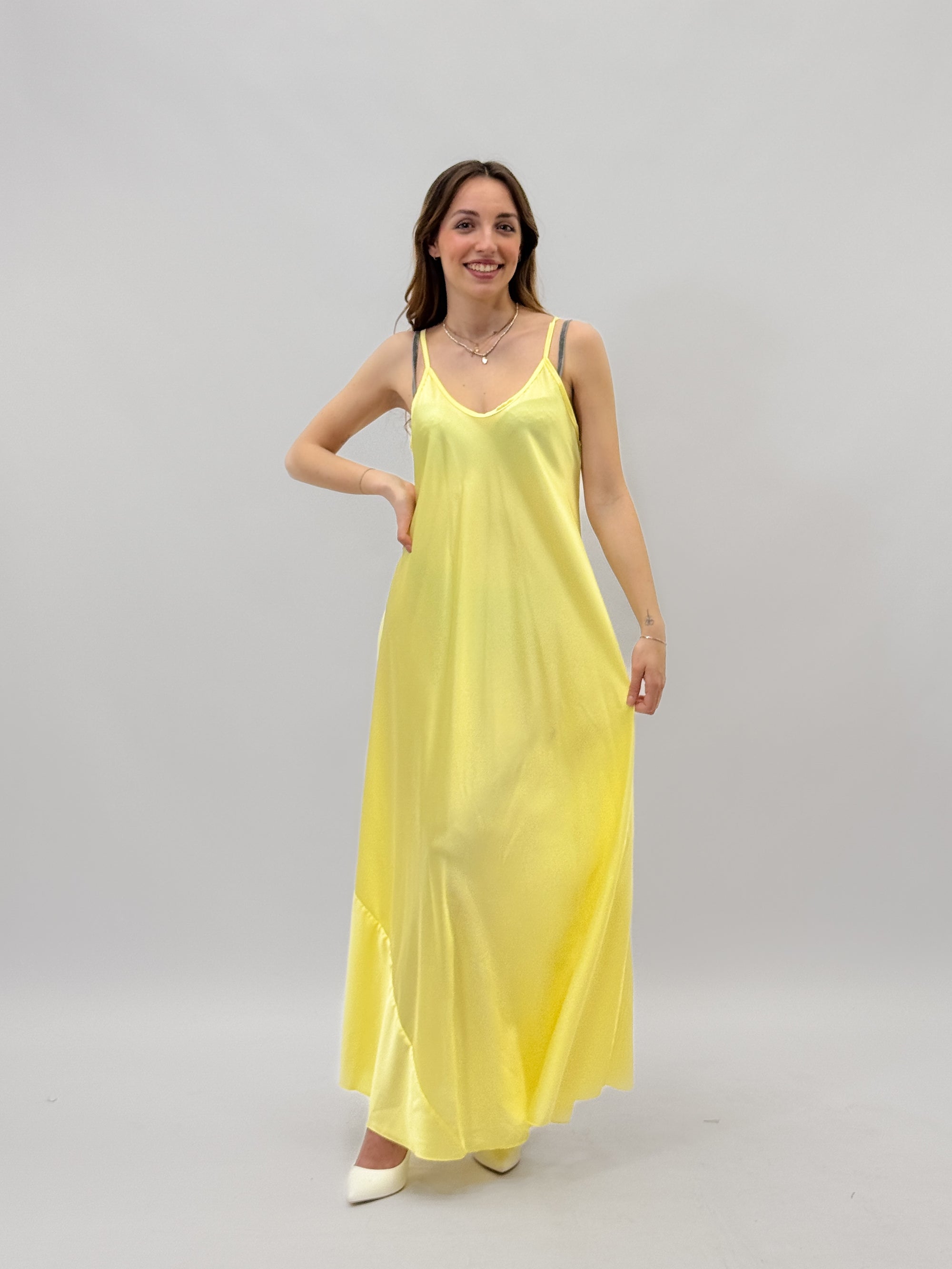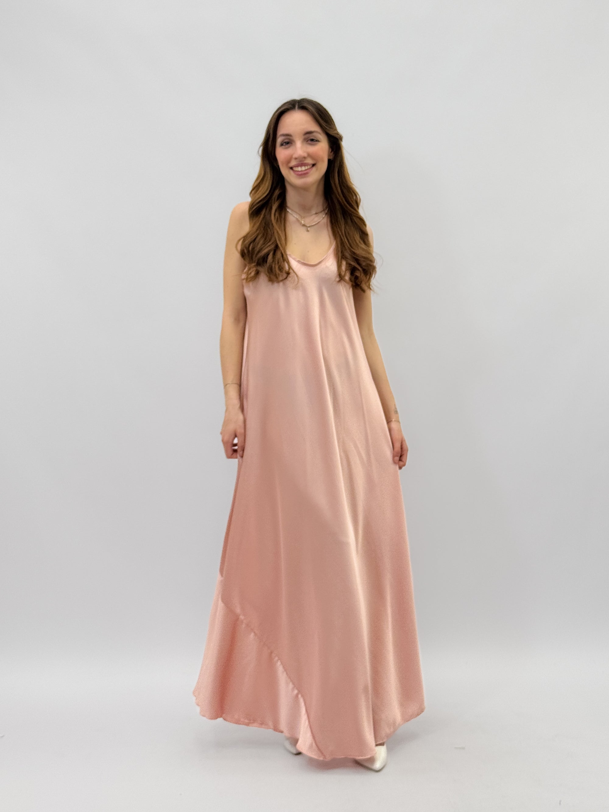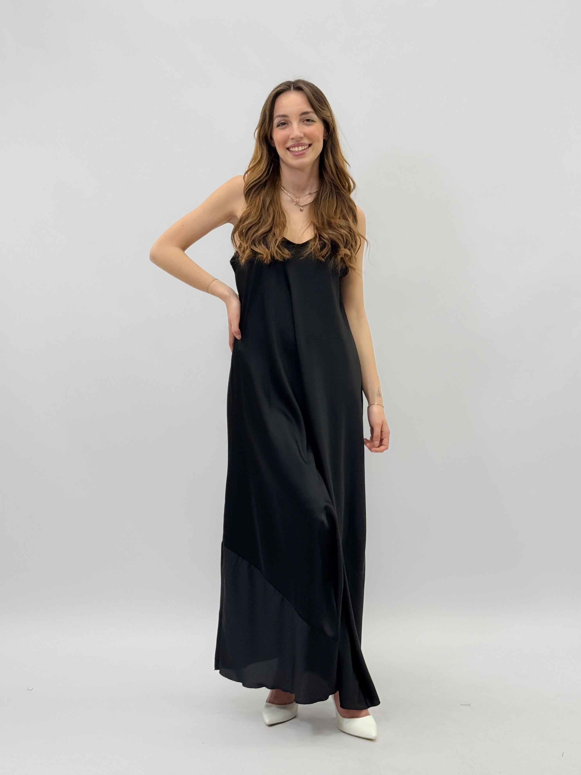 Abito lungo satin con spalline