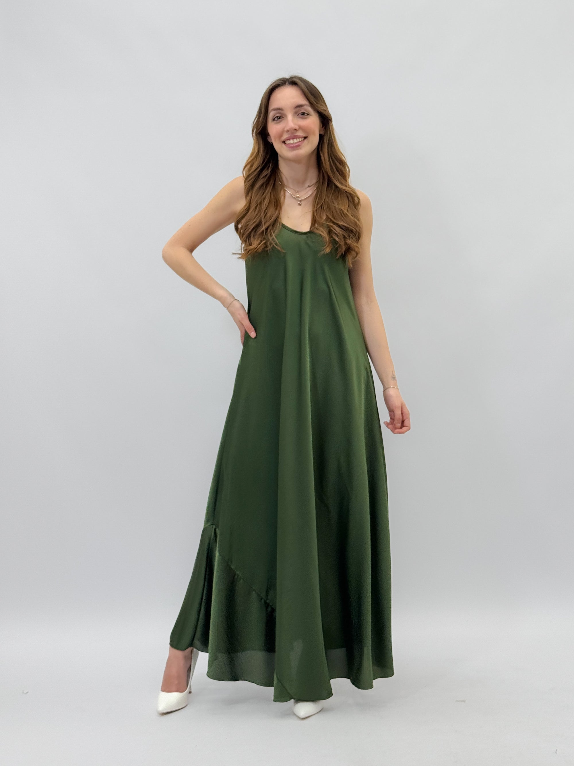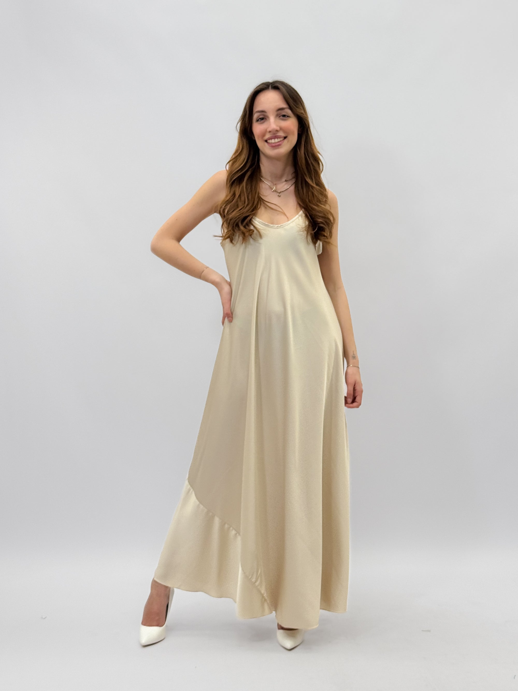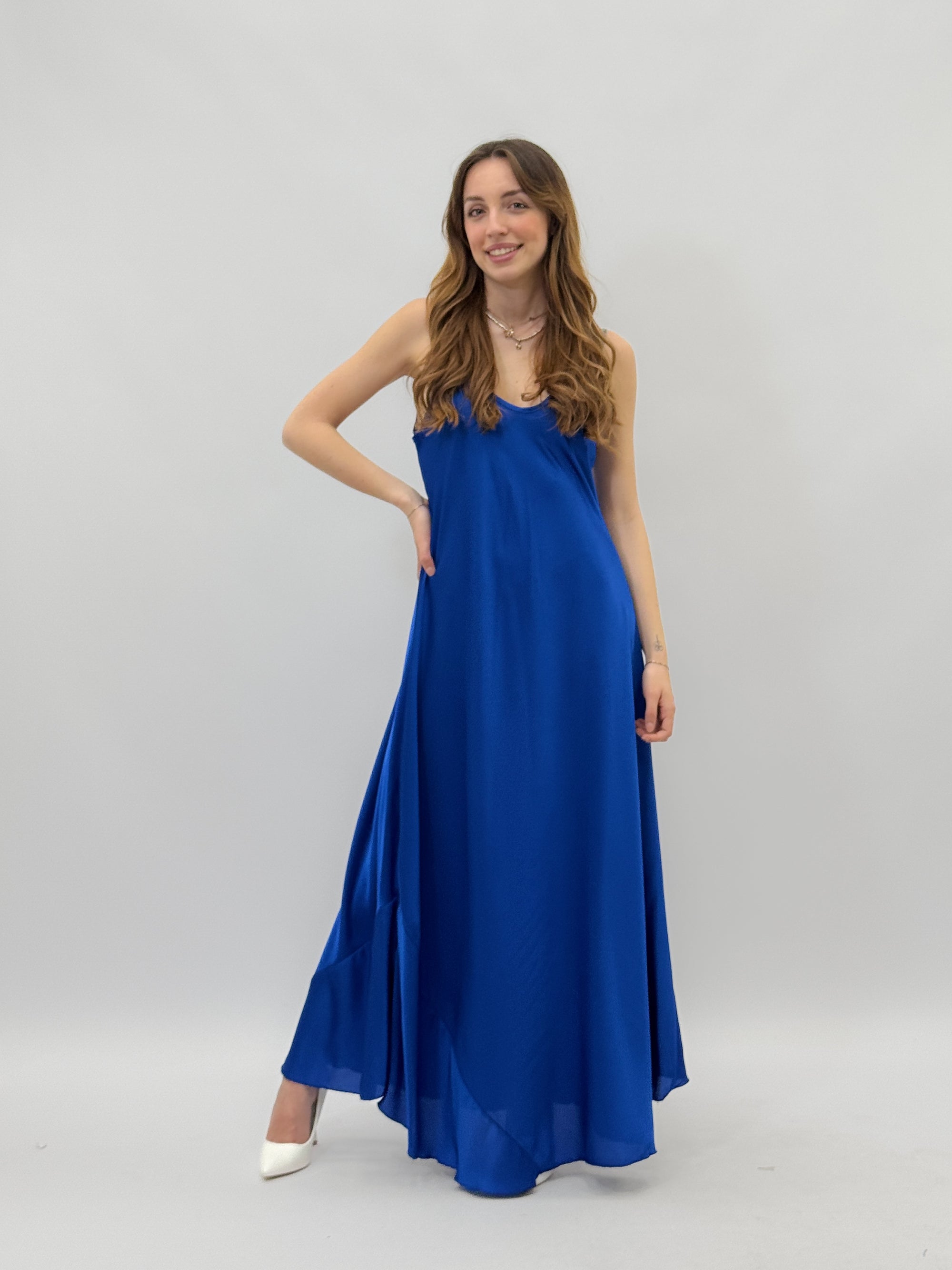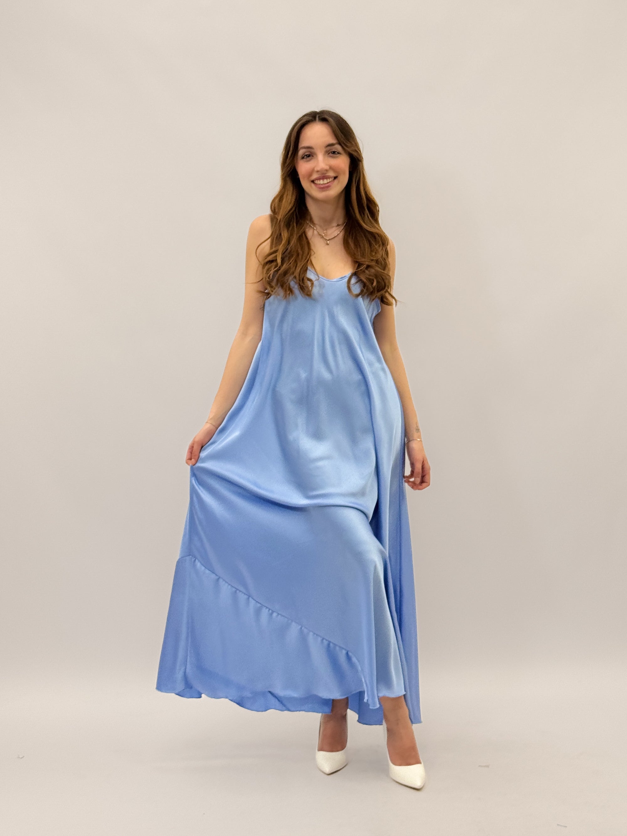 Abito lungo satin con spalline