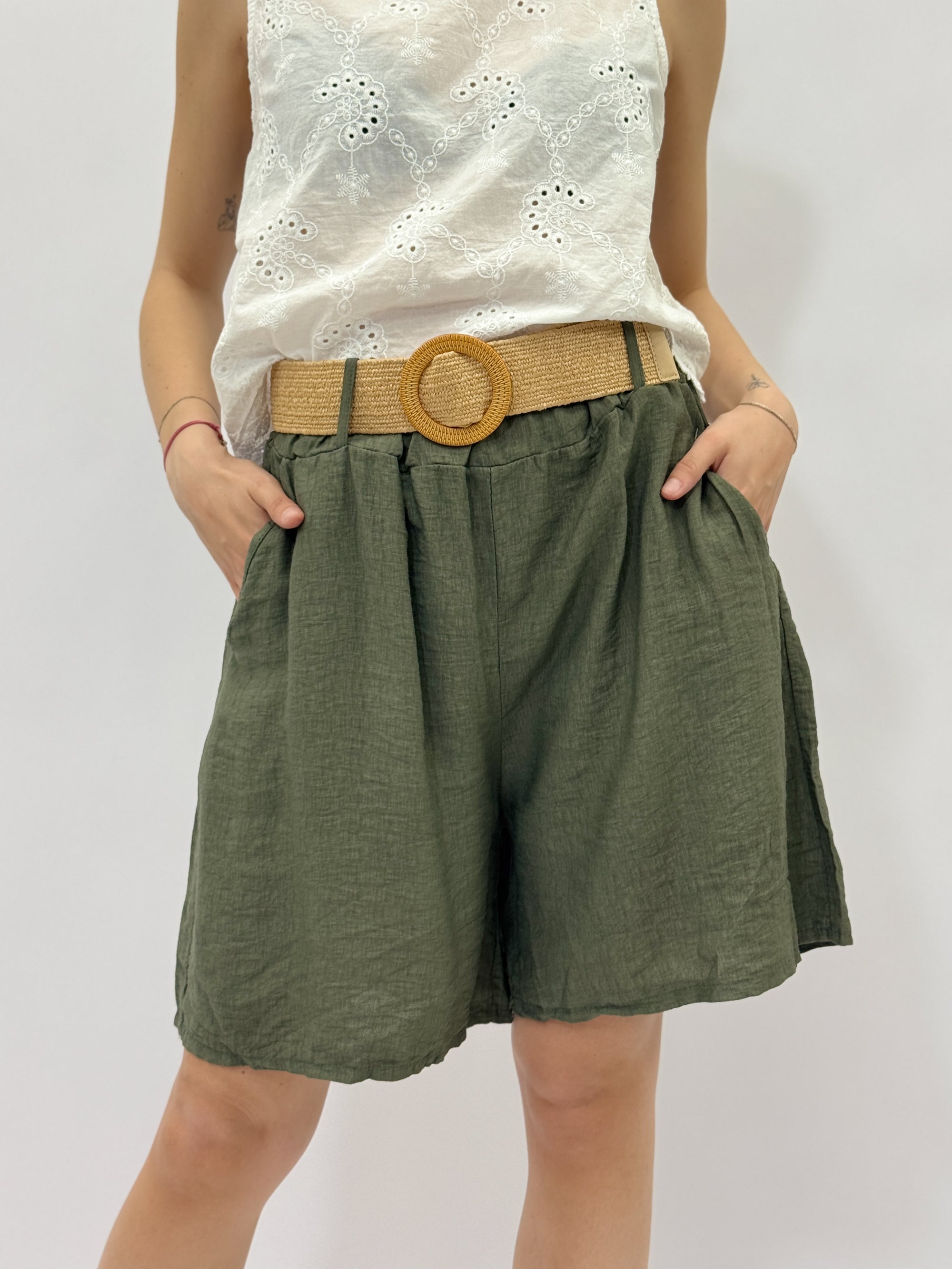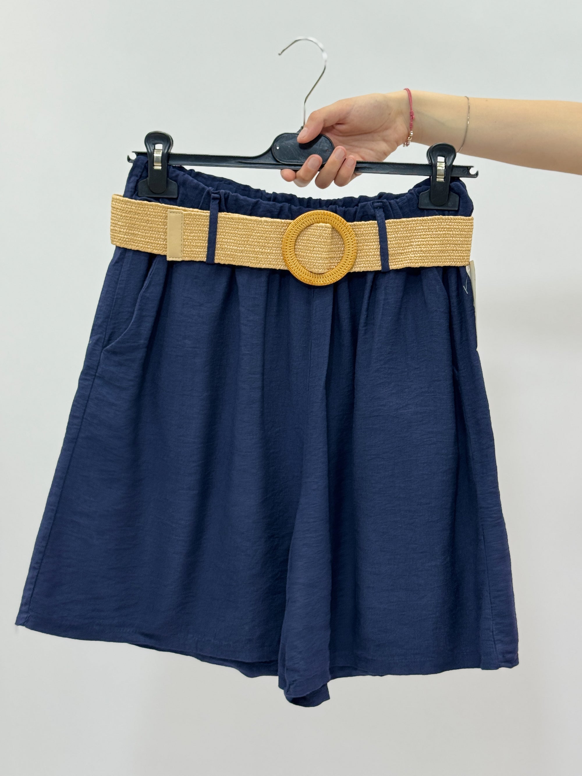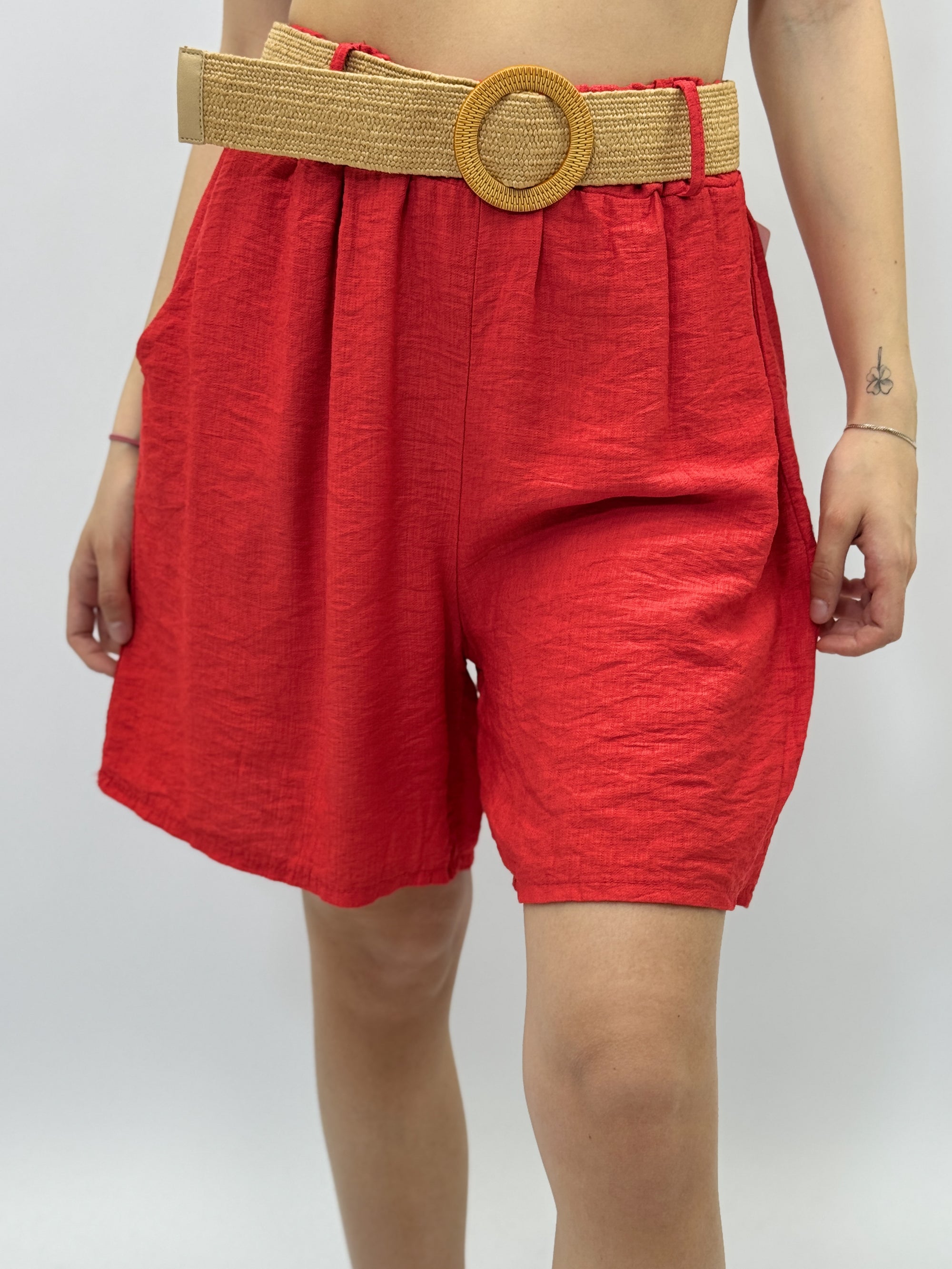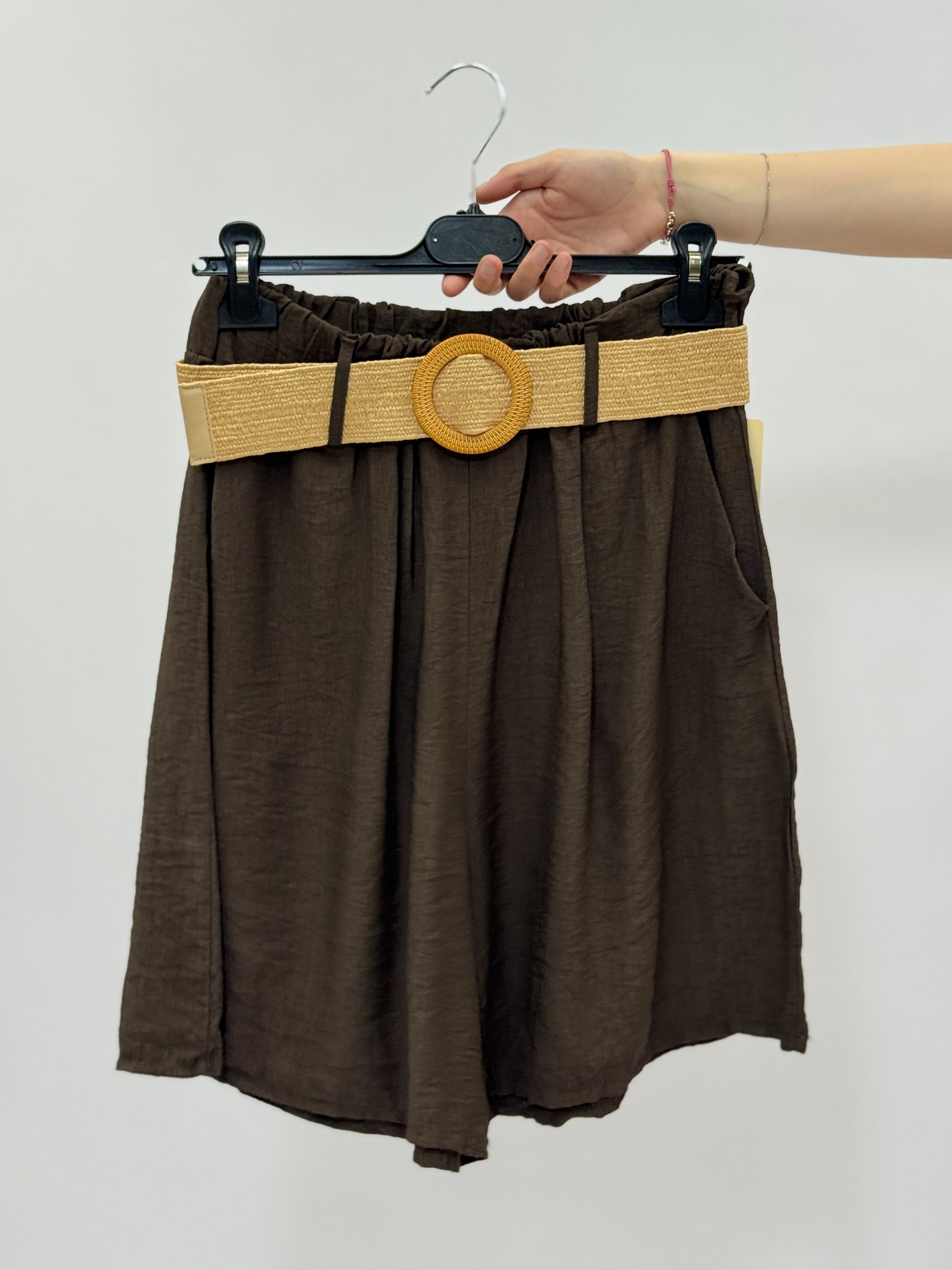 Pantaloncini con cintura in paglia